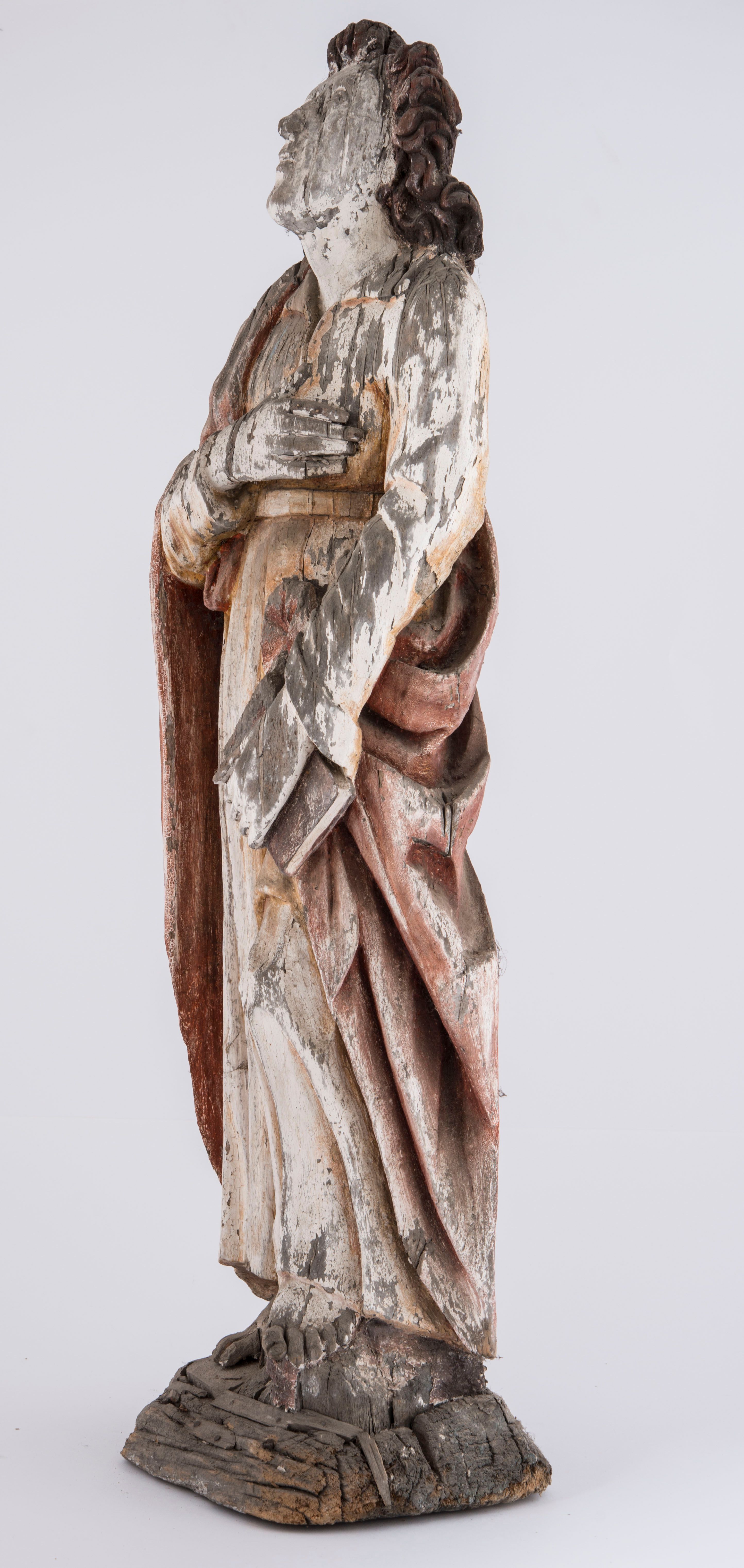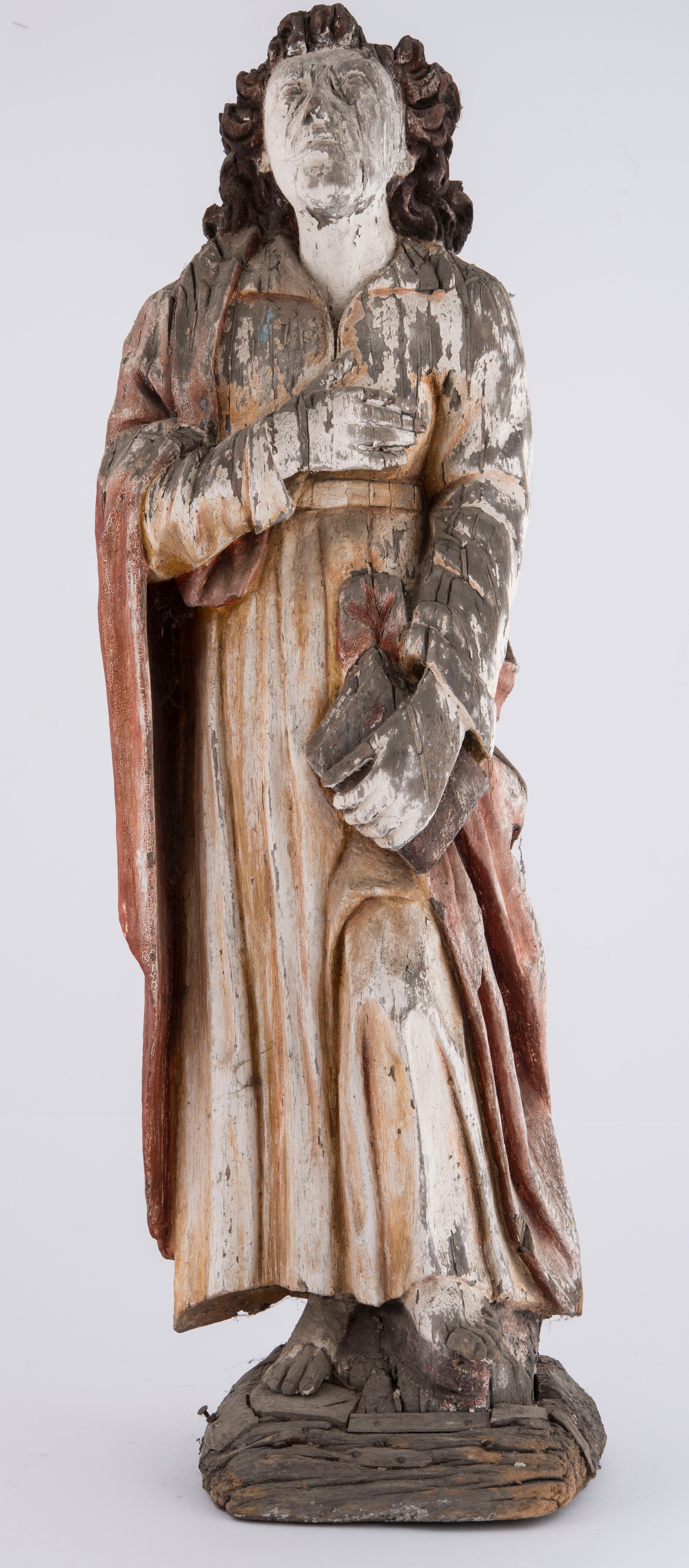 We do not know the authorship and origin of the sculpture of Saint John the Evangelist kept in the sacristy, which together with the preserved statue of Saint John and crucified Jesus formed a Crucifixion Group. The set could have been seen until 2001 in the chapel setting at the southern facade of the church in Harbutowice. Due to the poor condition, the statues were moved and replaced with paintings.