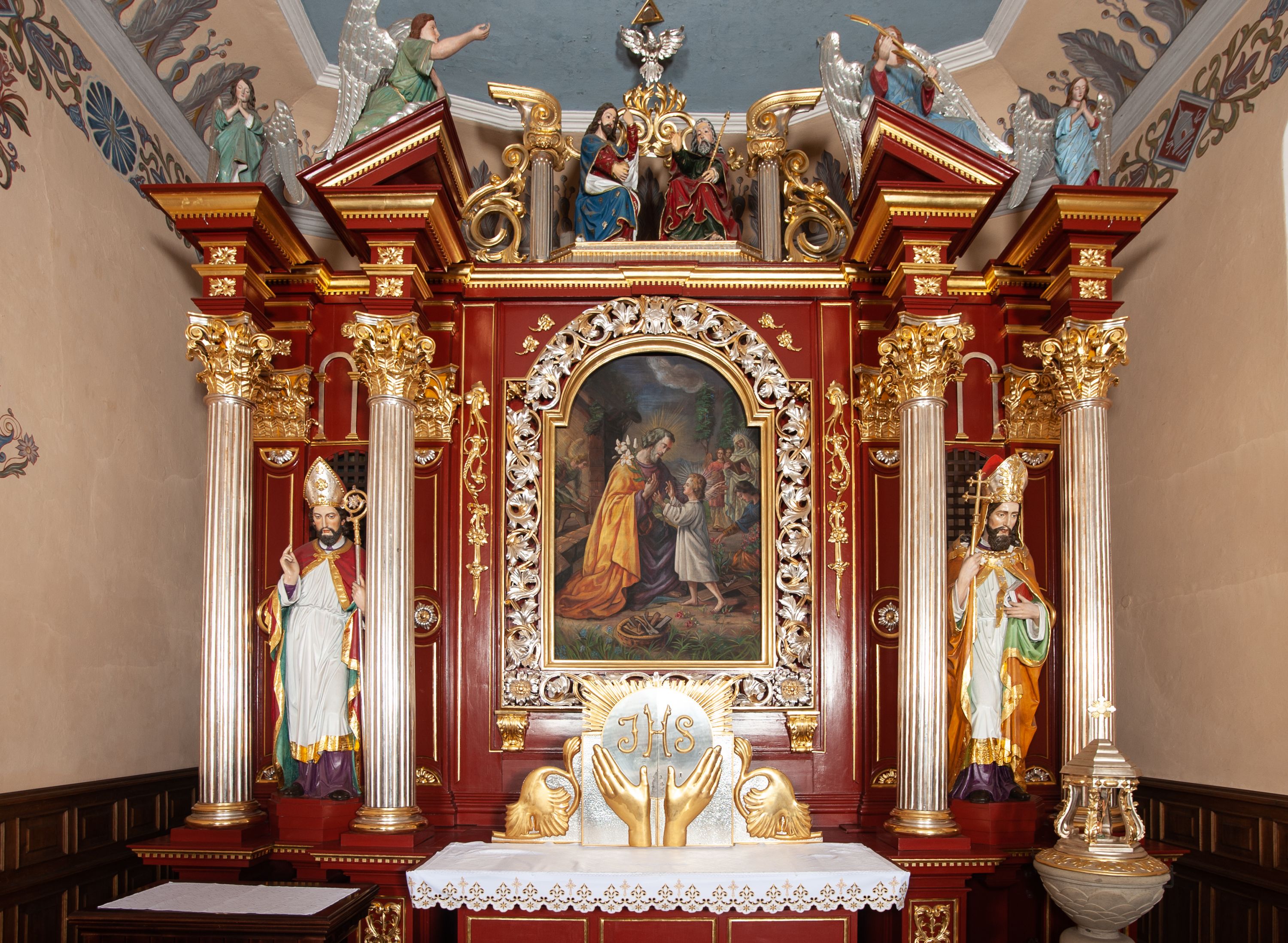 The painting of St. Joseph was created for the high altar and is a typical example of religious painting of the 20th century. It is characterised by static, central composition and linear treatment of form.
