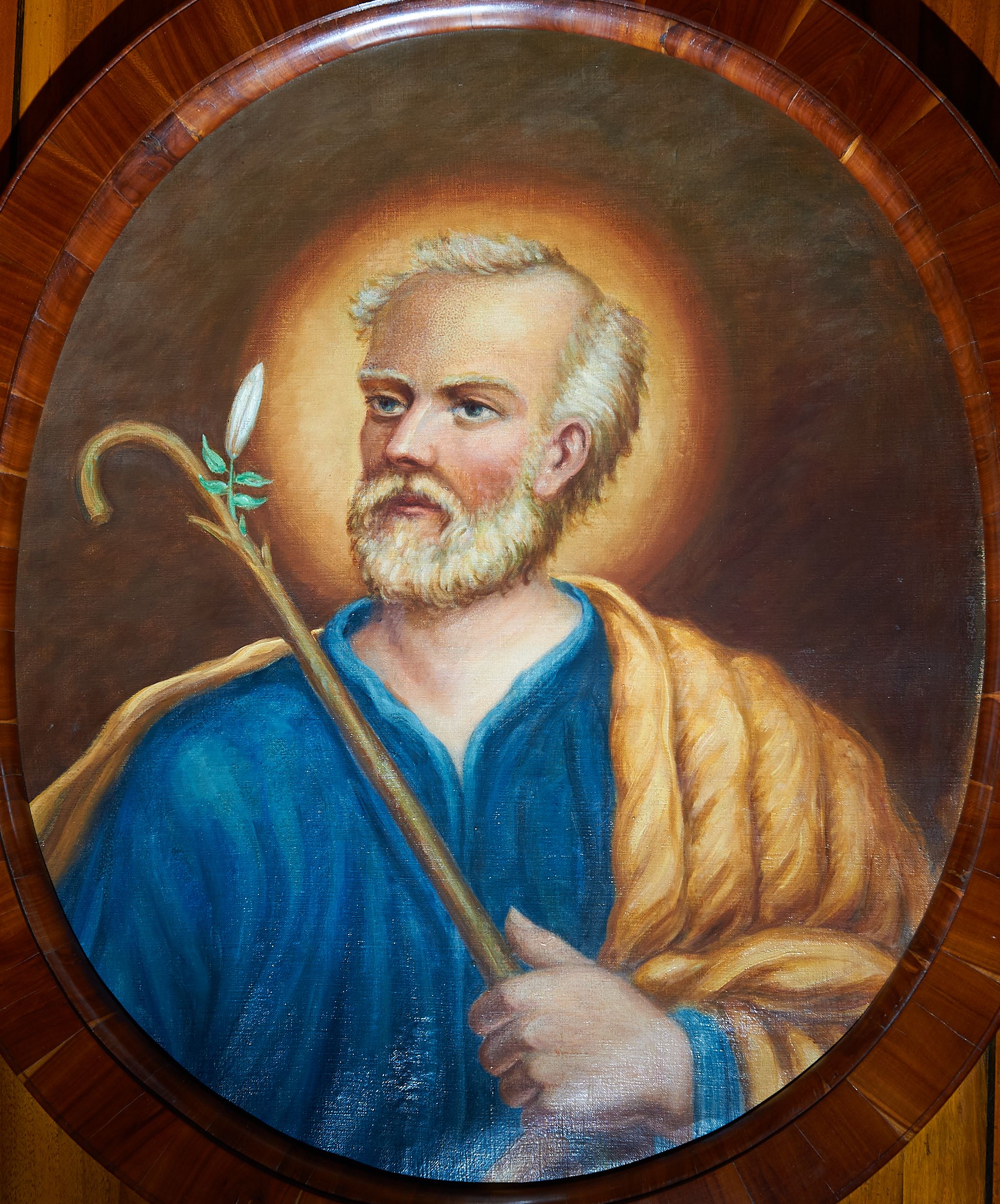 A painting from the first half of the 20th century, depicting St. Joseph – the Virgin Mary's spouse and guardian of the Holy Family. The painting belongs to the series of images of the Blessed Virgin Mary's family and is located in the nave of the church in Brody.