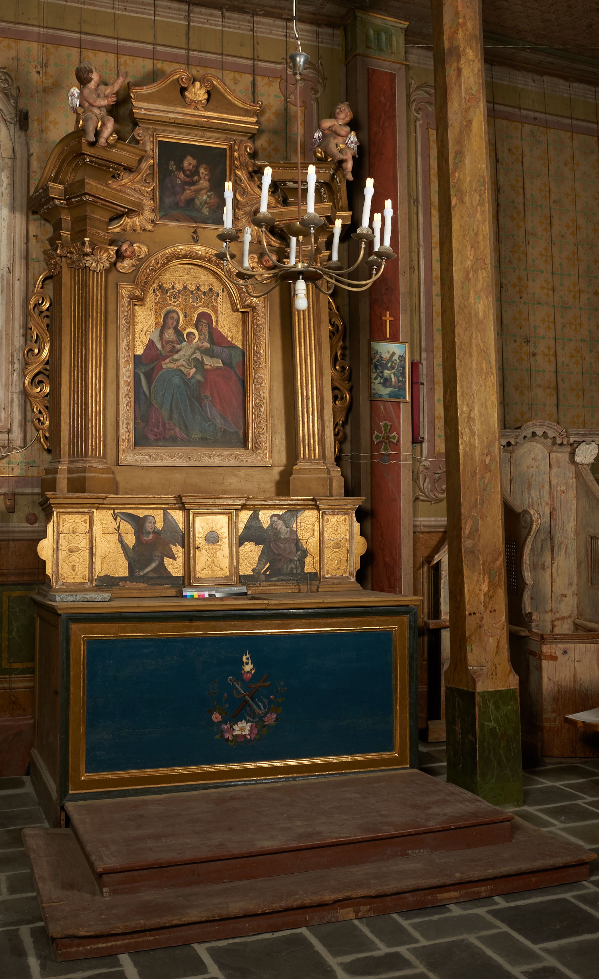 The painting of St. Joseph and the Child was most probably created in the second half of the 19th century. Saint Joseph was Mary's betrothed and guardian and protector of Jesus, therefore, he is often depicted with Baby Jesus. His attribute is a lily branch symbolising chastity.