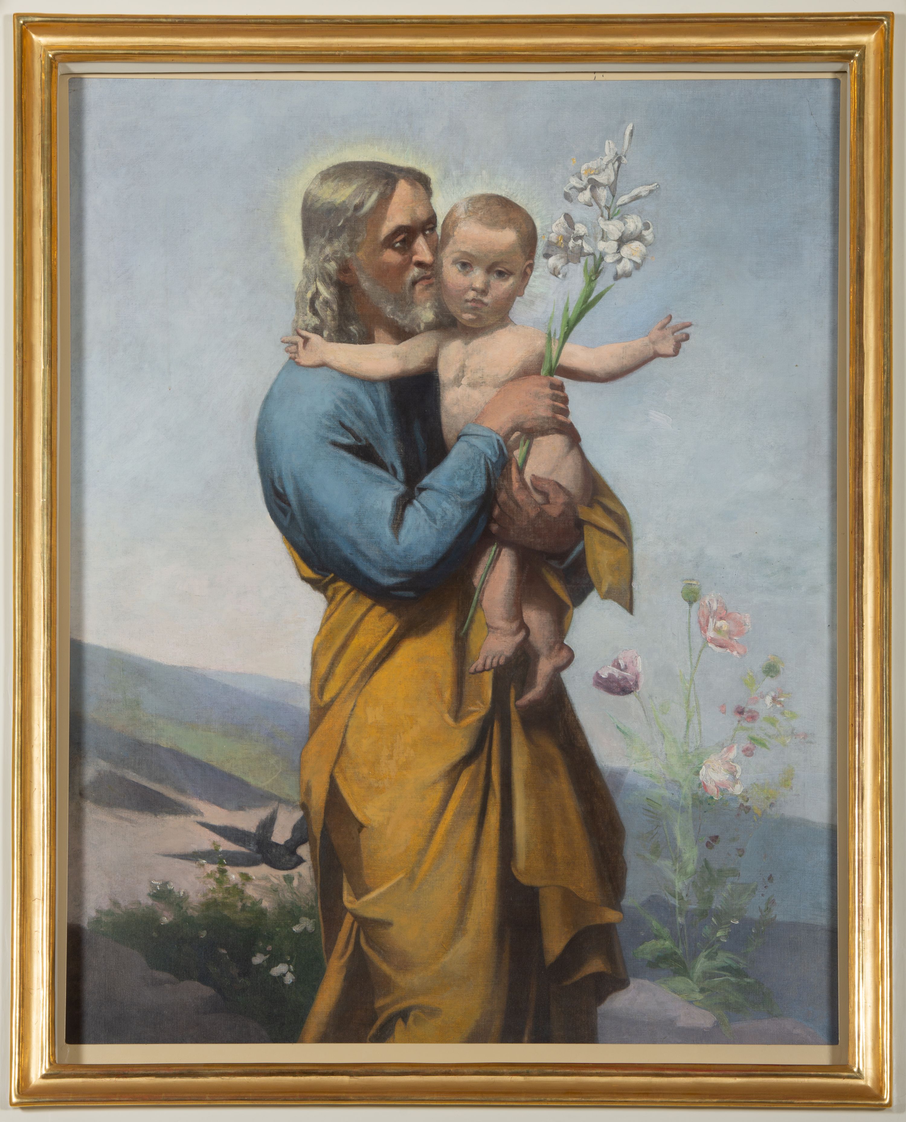 The painting "St. Joseph" was created in 1901 by Cracovian painter, Antoni Gramatyka. Saint Joseph was depicted in a traditional iconographic approach, i.e. with Infant Jesus in his arms and a white lily twig in his hand. The funder of the painting was Józef Faber of Barwałd Średni.