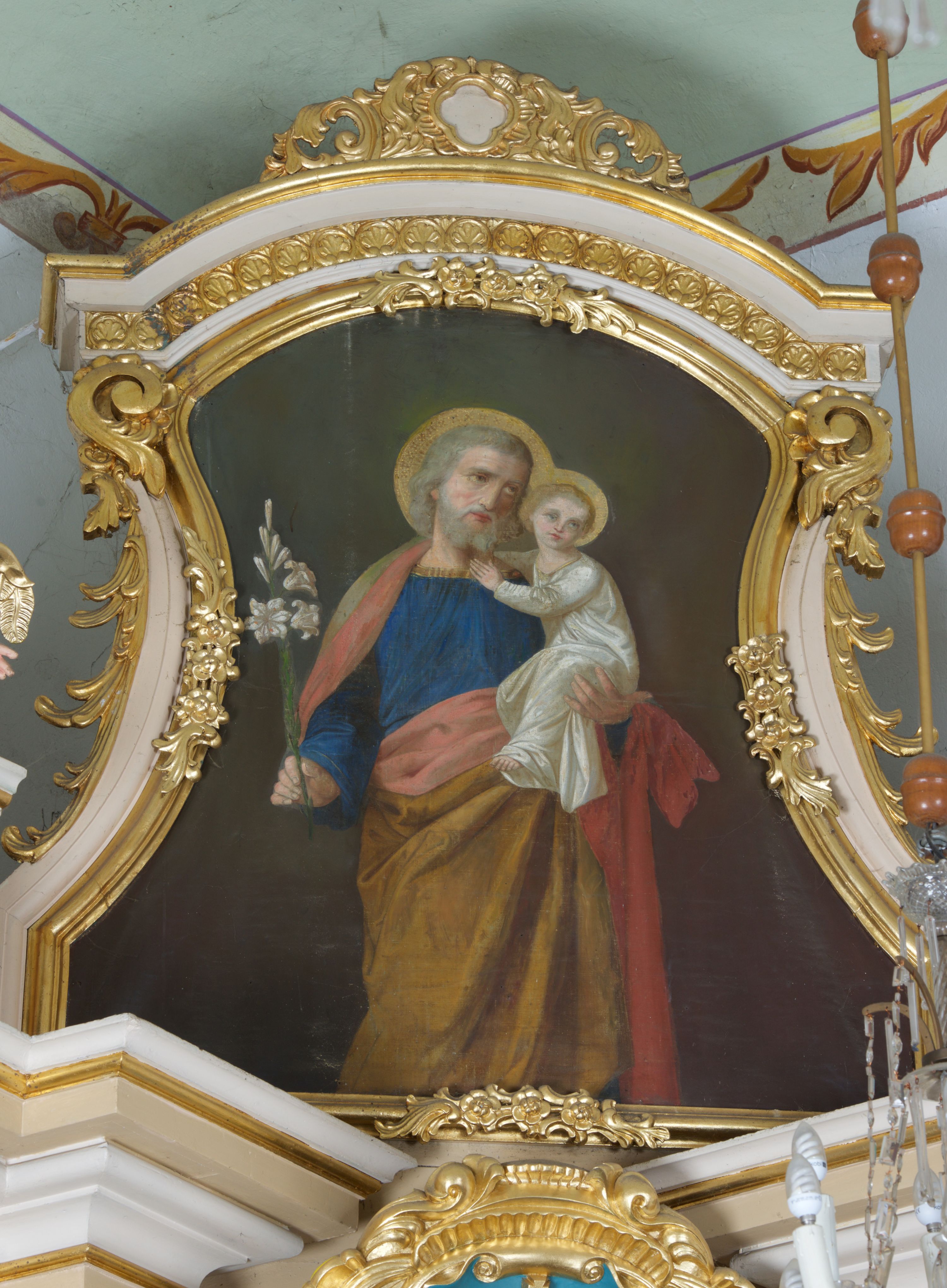 The painting of St. Joseph was created in 1895 by an unknown painter in Oświęcim. It was founded by Baltazar Biedrawa from Jachówka and Błażej Rymarczyk from Bieńkówka. The image of St. Joseph with the Infant Jesus is an example of the most popular iconographic type of the saint in the Polish art of 19th and 20th centuries - St. Joseph as a protector of the Infant Jesus.