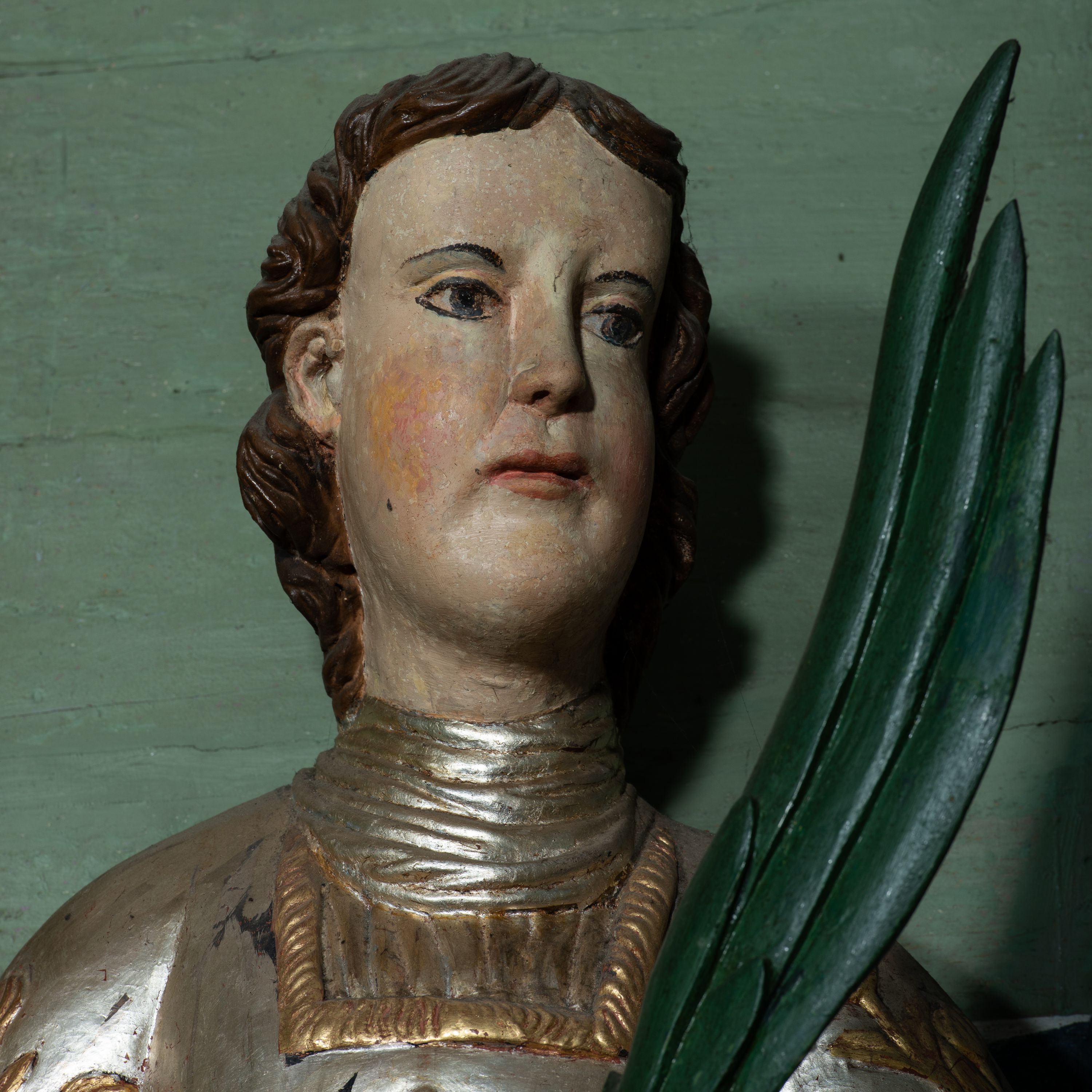 The statue of Saint Lawrence, standing on the left gate of the high altar, is an example of the work of a provincial workshop. The carefully rendered outfit contrasts with the simplified shot of exposed body parts.