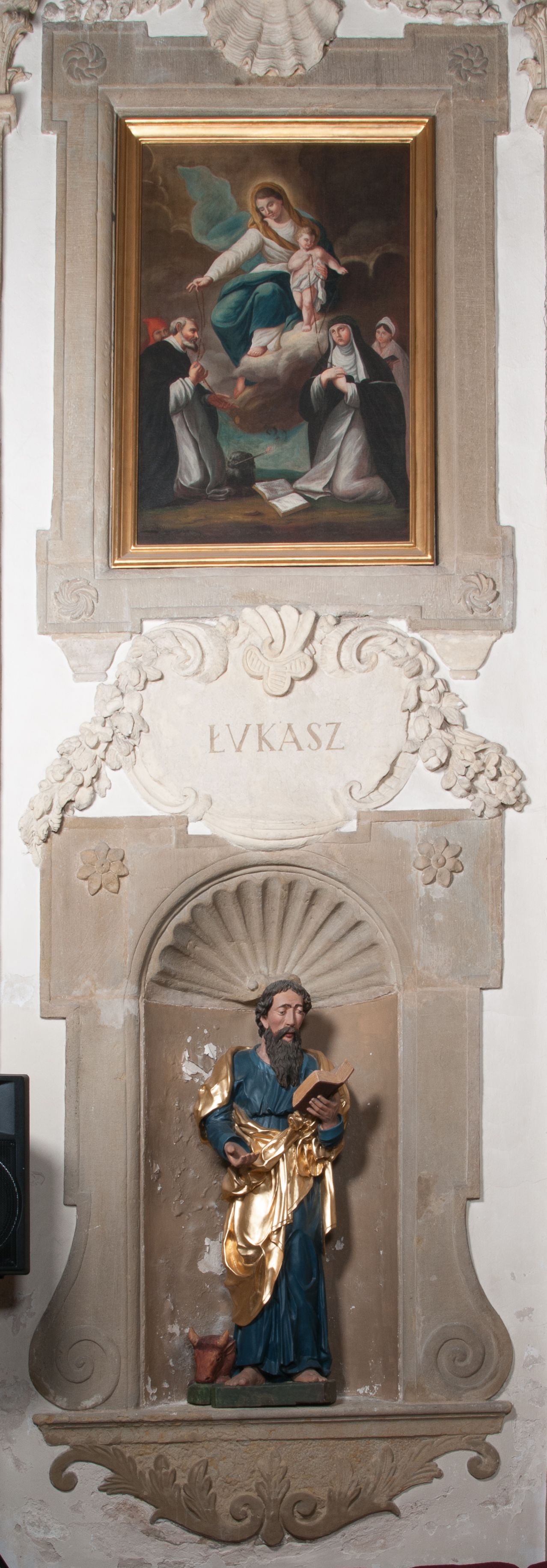 The sculpture of Saint Luke was made during the office of parish priest Stanisław Osuchowski in 1852-1856 and placed in the niche of the Morsztyn chapel. It is characterised by a highly simplified, schematic form, still drawing on the Baroque tradition. The low quality of creation indicates that the sculpture is an example of provincial production.