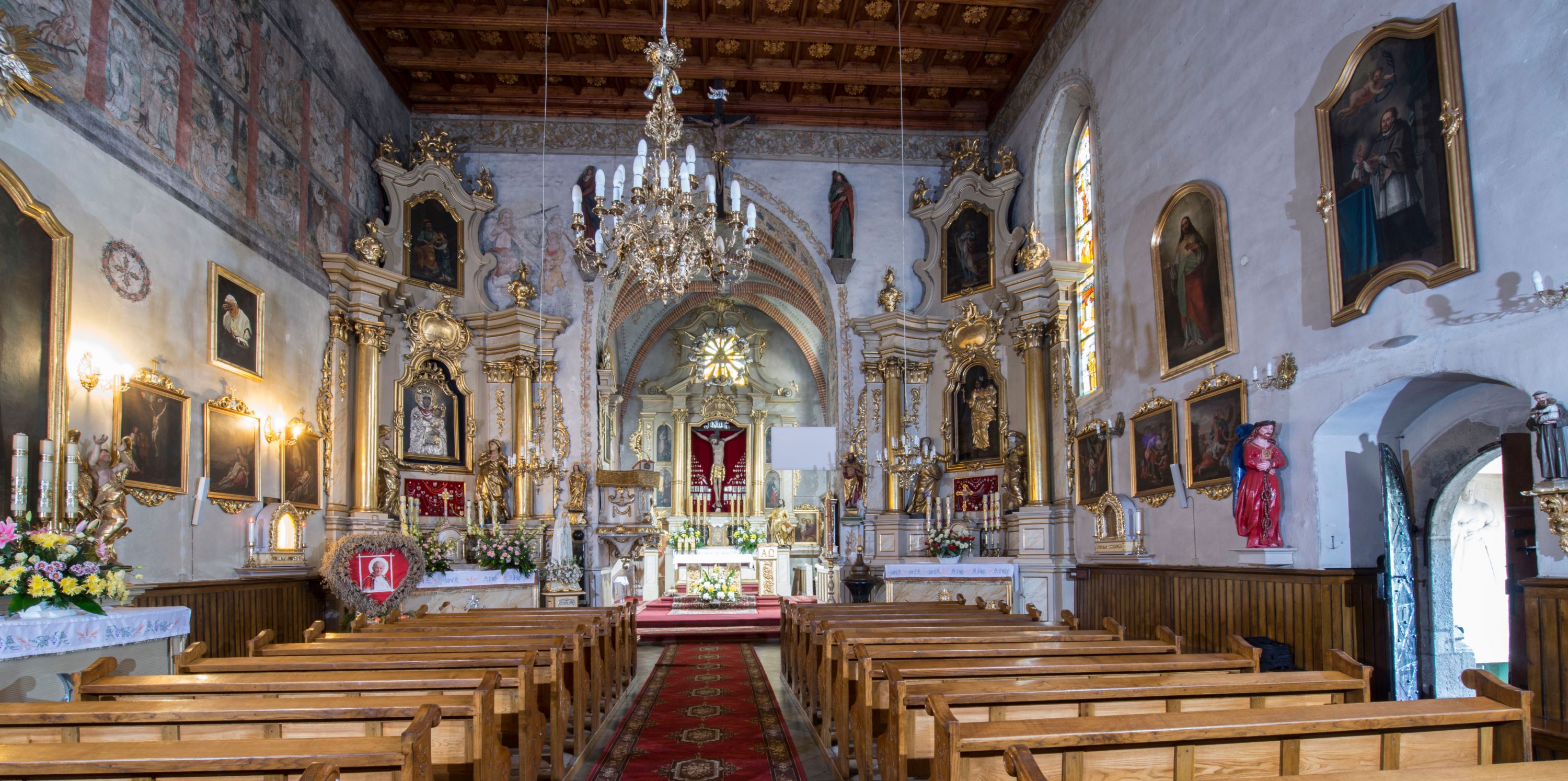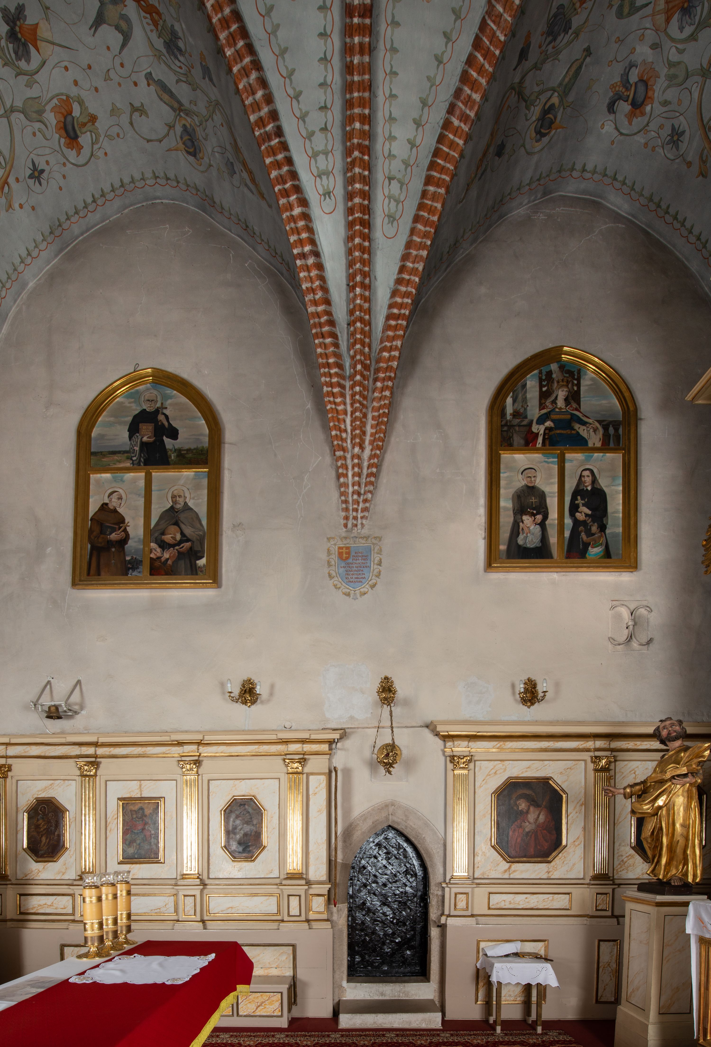 As the inscription on the plate at the back of the high altar indicates, the temple was renovated in 1882, during the ministry of the parish priest I. Przybyś. It was covered with ornamental polychrome made by Jan Dutkiewicz together with his students, Karol Jachimowicz and Karol Dutkiewicz.