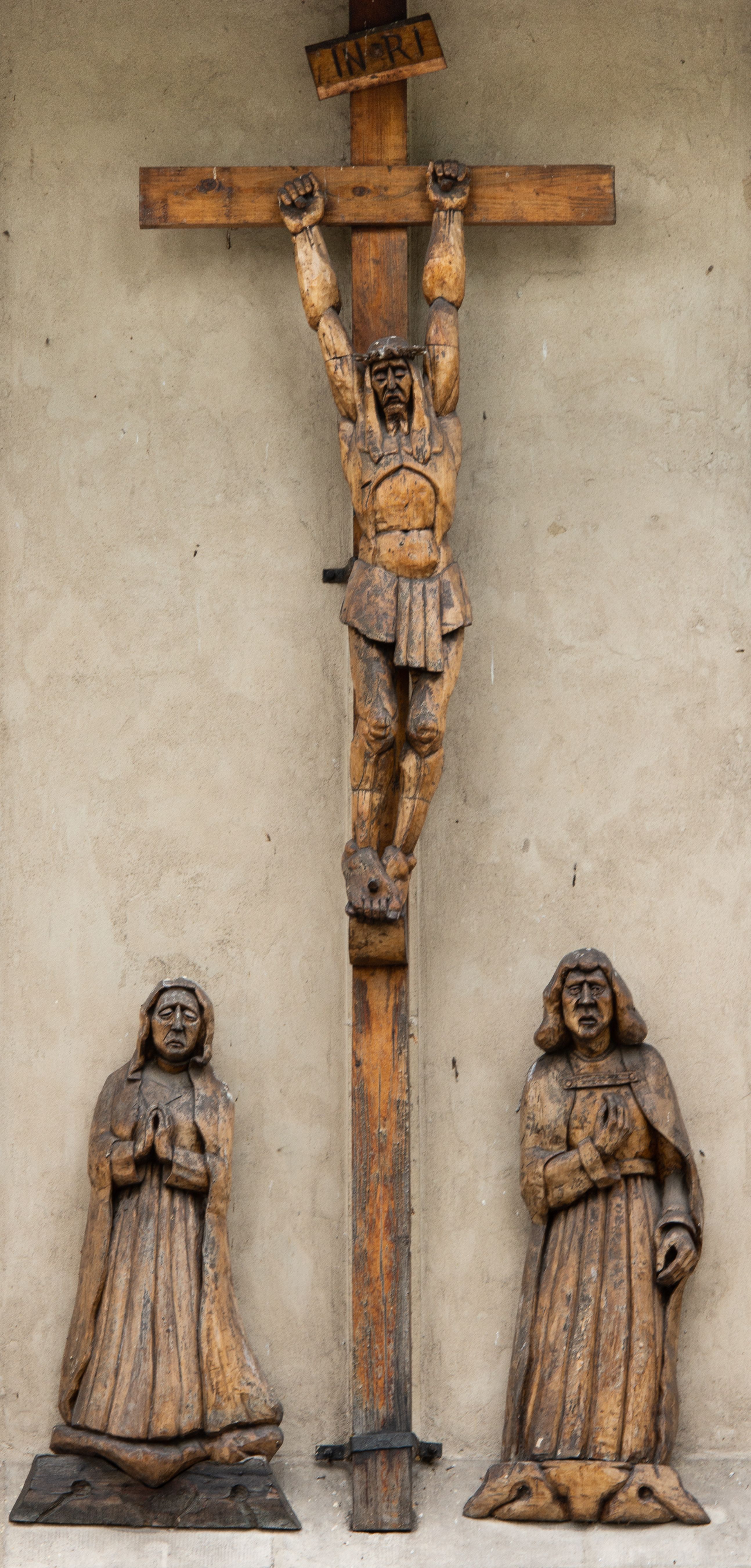 In the documents of the visit to the temple from 1614, the pulpit and stone altars were mentioned inside the temple. Five years later there was already an organ loft and organ as well as four consecrated altars made of stone. In post-visitation documents from 1629, the status of the equipment was similar. Whereas in 1665, four altars were described - the main one with the image of the Crucified Christ and the tabernacle, side altars of the Mother of God, the Descent of the cross and Saint Anne. In documents from 1728, there were three altars in the church, the main one with a crucifix and the side ones. Margaret and Saint Anne.