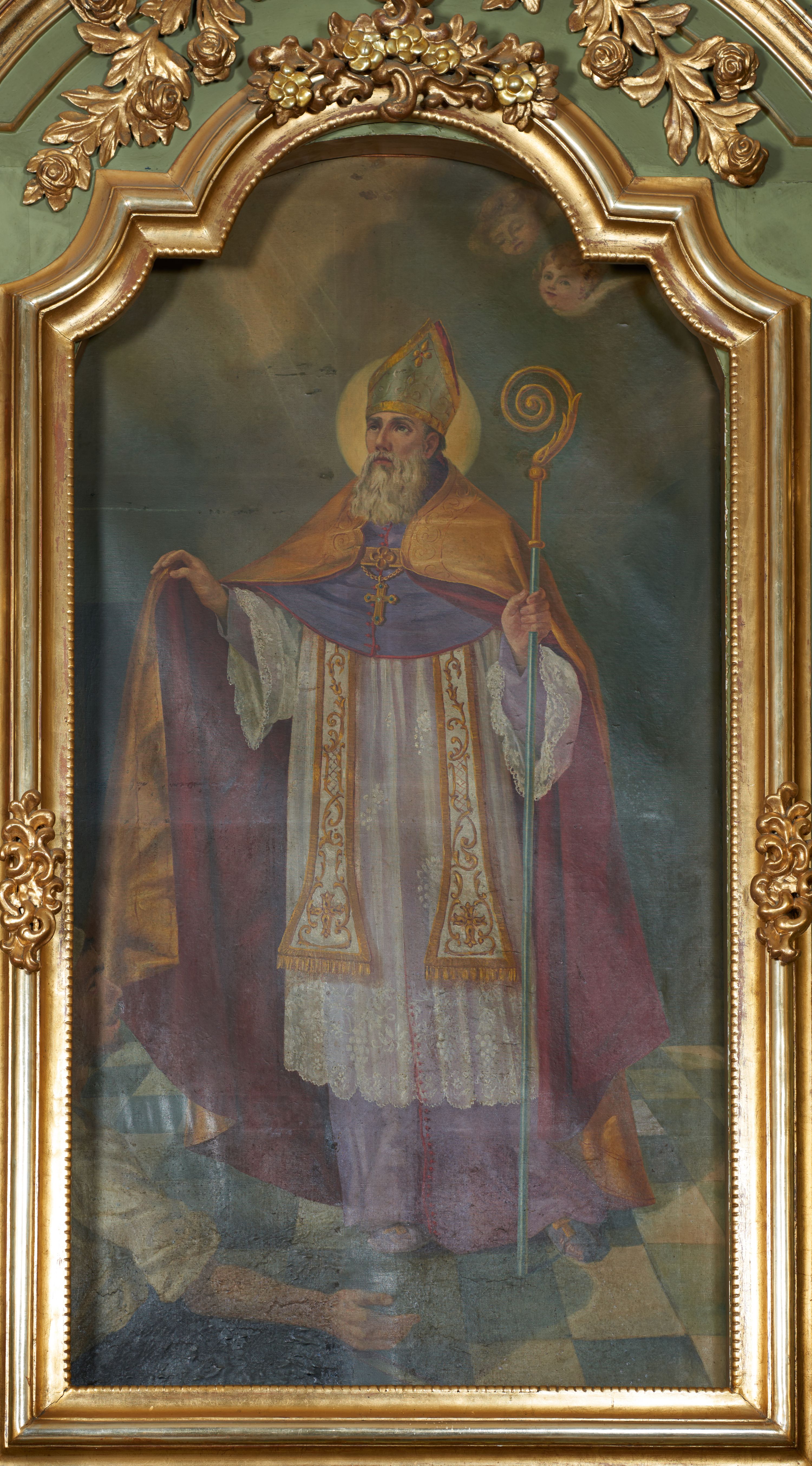 The painting of St. Martin was created probably in the second half of the 19th century, but before 1883, as it was mentioned in the church inventory drawn up in that year. St. Martin is depicted in episcopal garb, because he was elected a Bishop of Tours in Gaul. In his iconography, the virtue of mercy is most often emphasised, like in the picture in question, which depicts the moment of him sharing his coat (a cope) with a beggar.