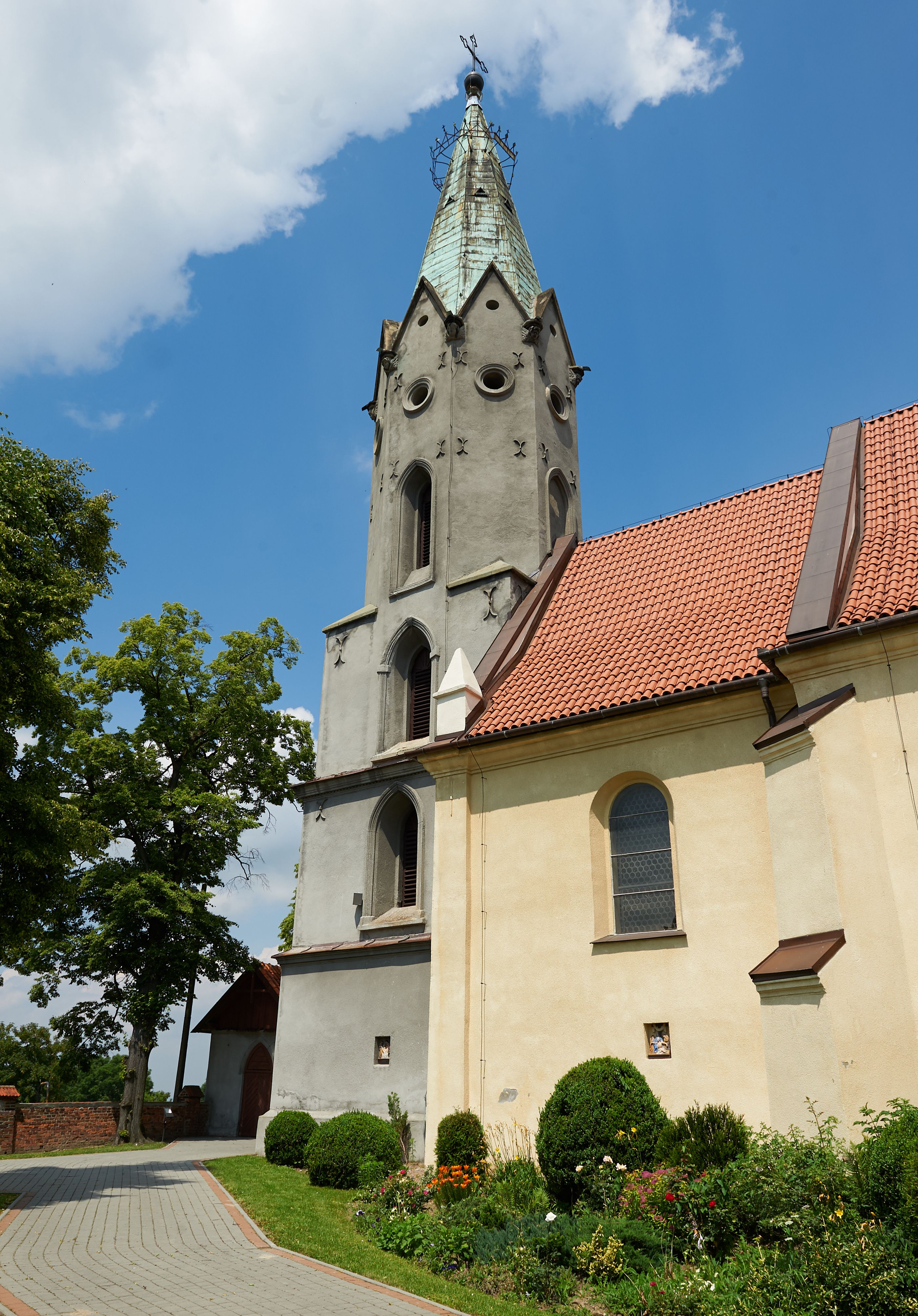 The first church building was wooden. In the second third of the 17th century, the construction of a new, brick church was commenced, which was consecrated again on November 12, 1662, by Mikołaj Oborski. A side chapel funded by Szymon Kalinowski was probably built on to the church at the turn of the 17th and 18th centuries. In 1888, a tower was erected from the west in honour of the Mother of God, and the nave of the temple was enlarged. In 1914, the temple was significantly damaged and thoroughly renovated after the war. The St. Martin's brick church in Biskupice represents architecture typical of modern provincial parish churches. The dominant element of the church building is a neo-gothic tower, clearly standing out from the rest of the building in terms of style.