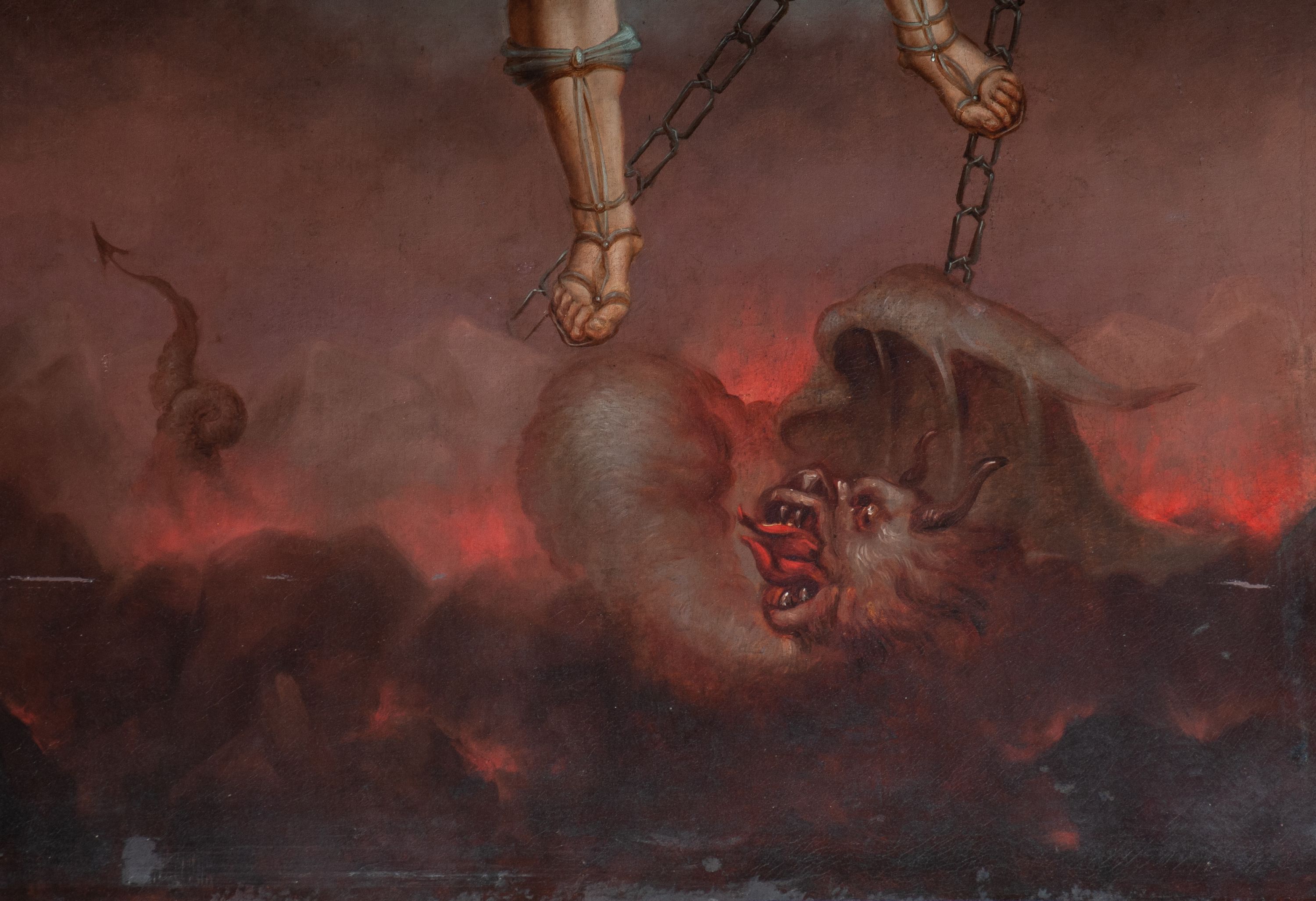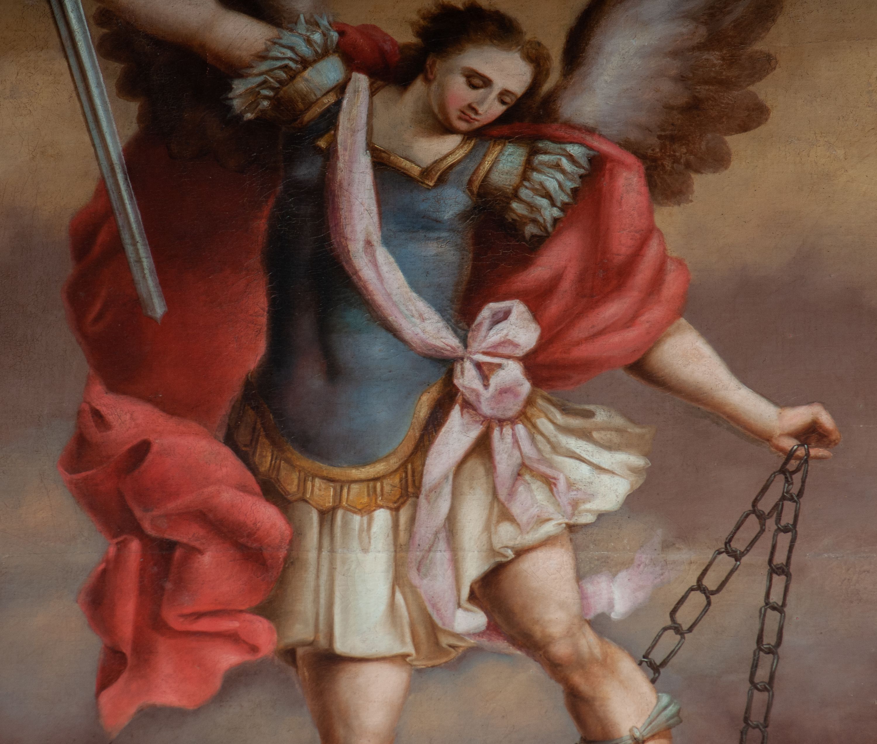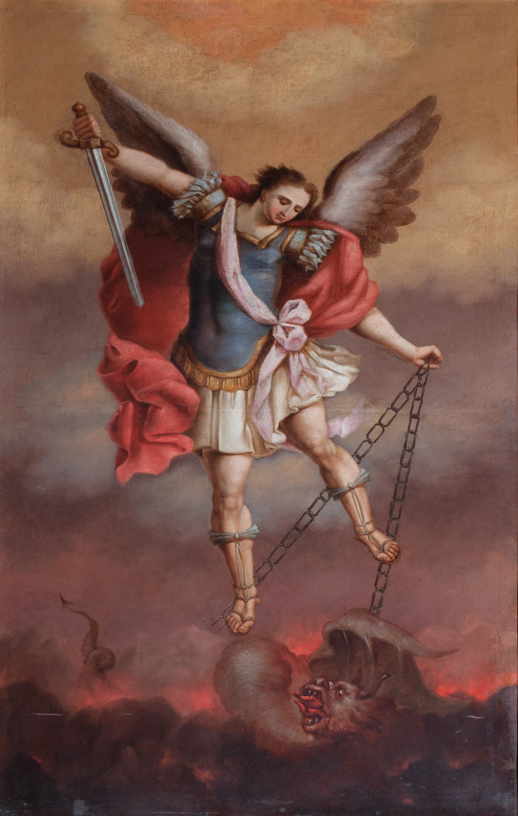 The painting depicting Saint Michael the Archangel was created before 1866 and was intended for the altar of Our Lady of Sorrows located in the Morsztyn chapel at the church. The iconographic pattern for the shot was a painting by Guid Reni under the same title. Unfortunately, the painter had a problem with the proportions of the human body, which indicates that he belonged to a provincial workshop.