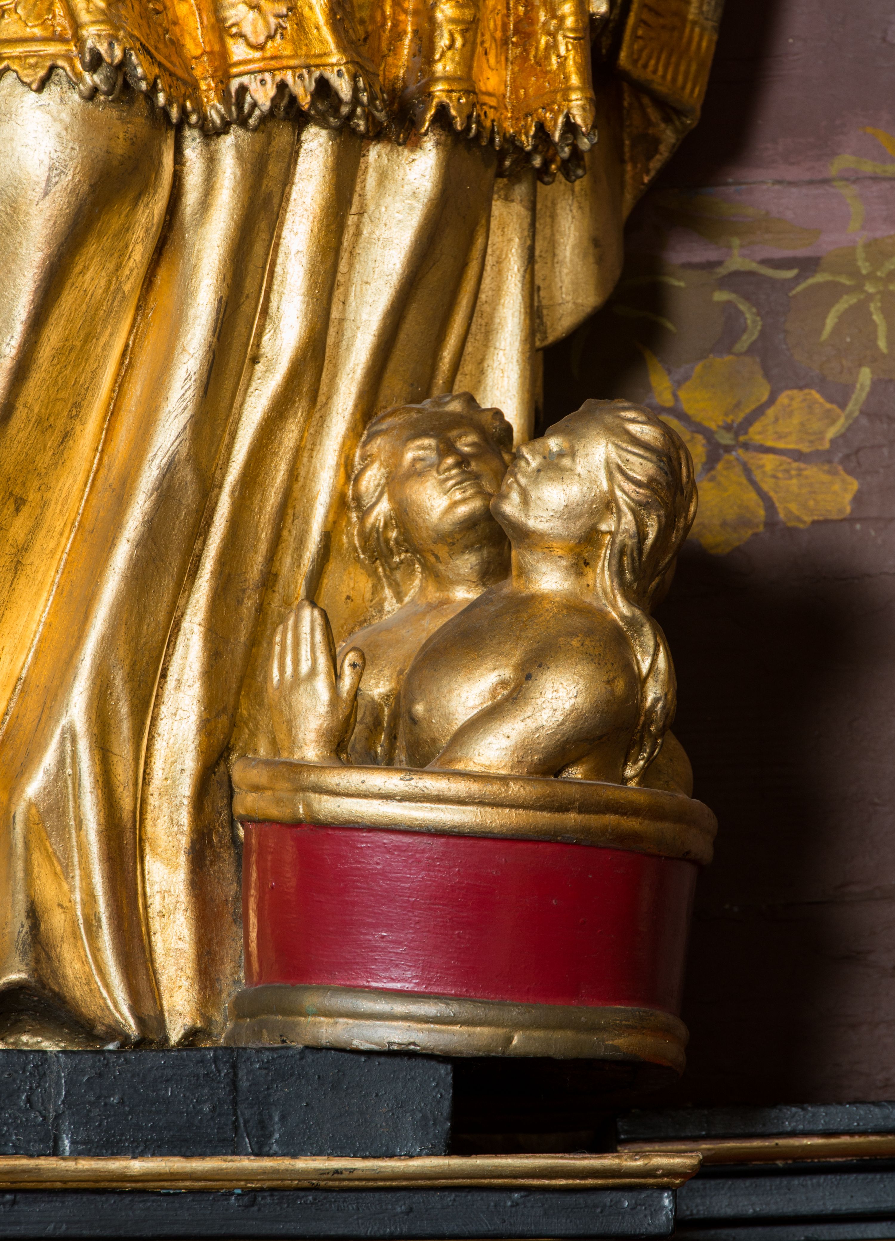 The statue of St. Nicholas was created together with the rococo furnishings of the church in 1779. It was built by Antoni and Ignacy Kornecki - brothers who cooperated with each other. St. Nicholas, was the Bishop of Mira, thus, he is presented in attire in accordance with this dignity. The characters and items accompanying the saint refer to the many miracles and legends associated with his life.
