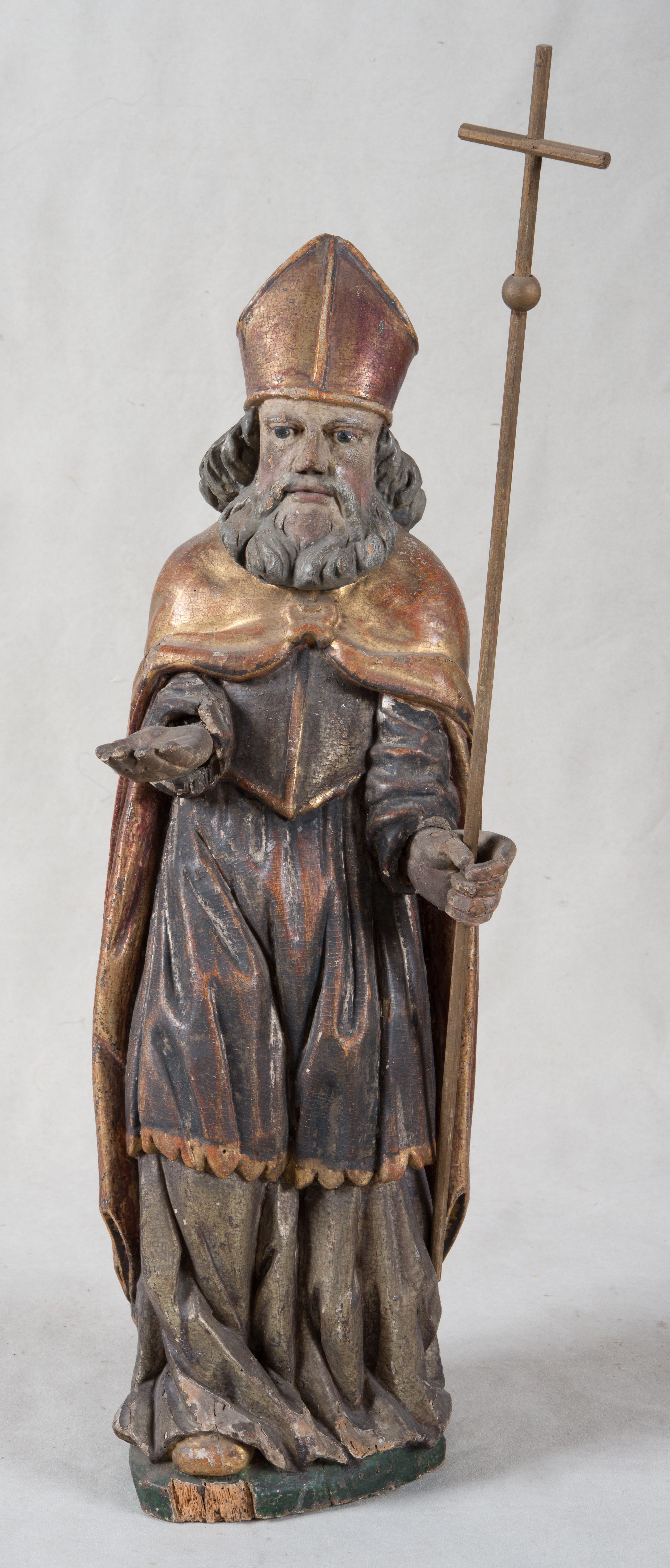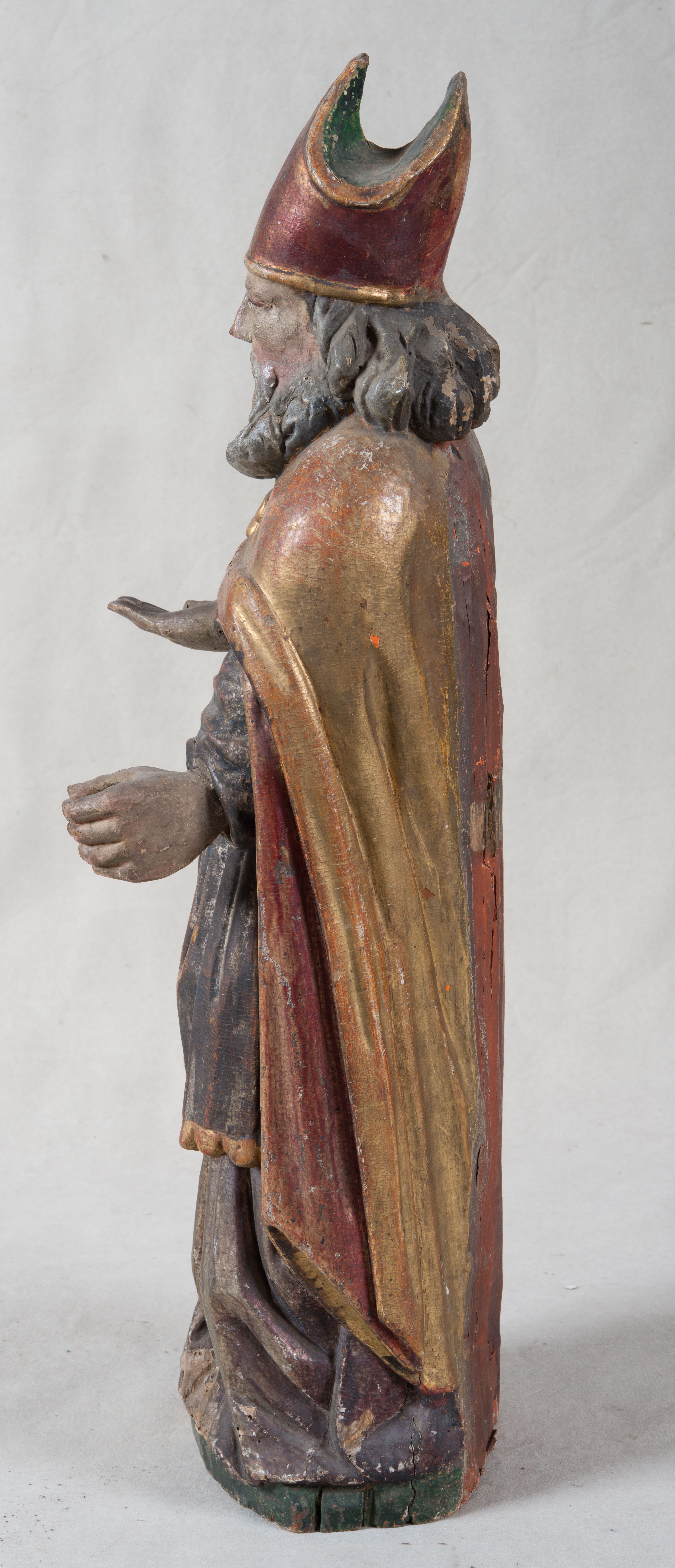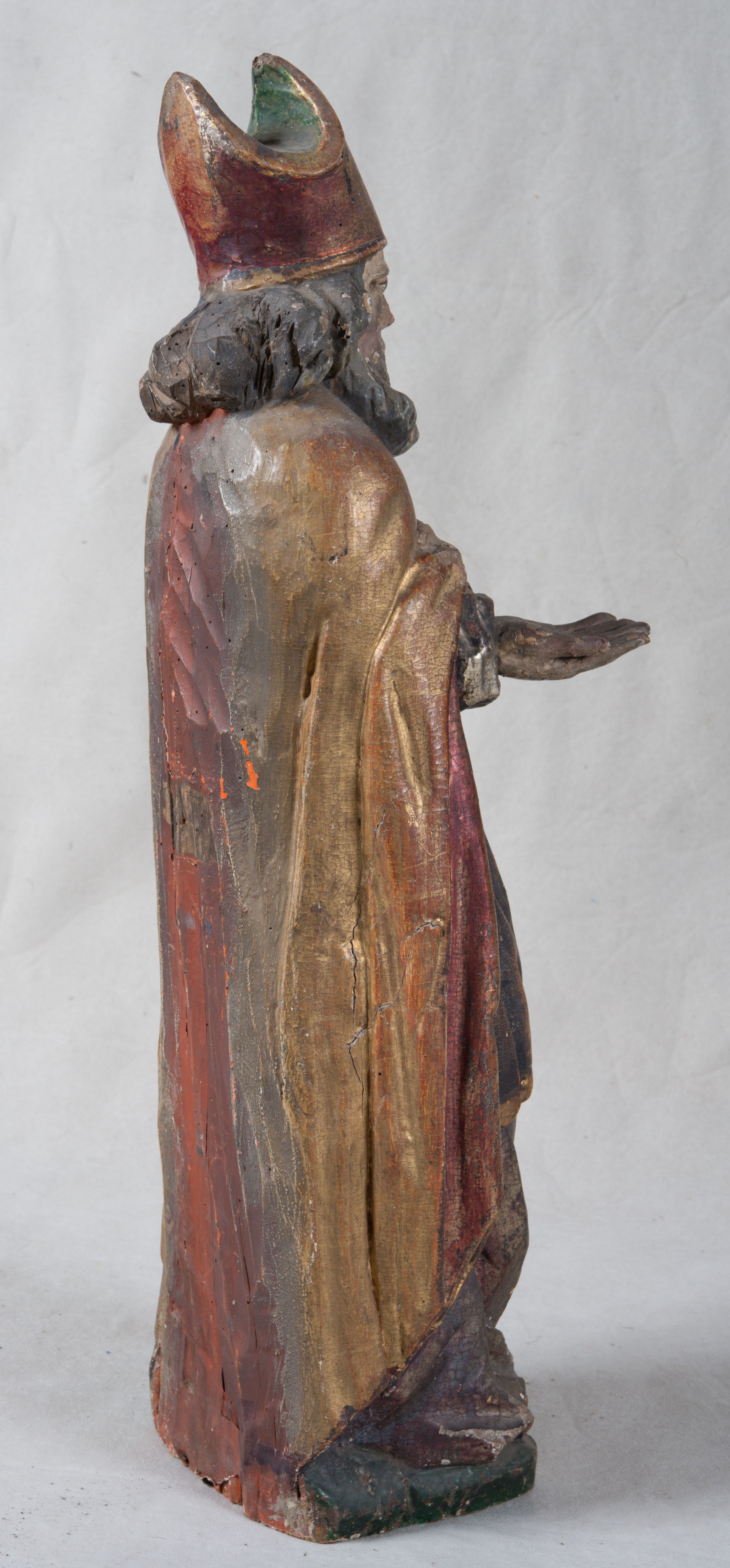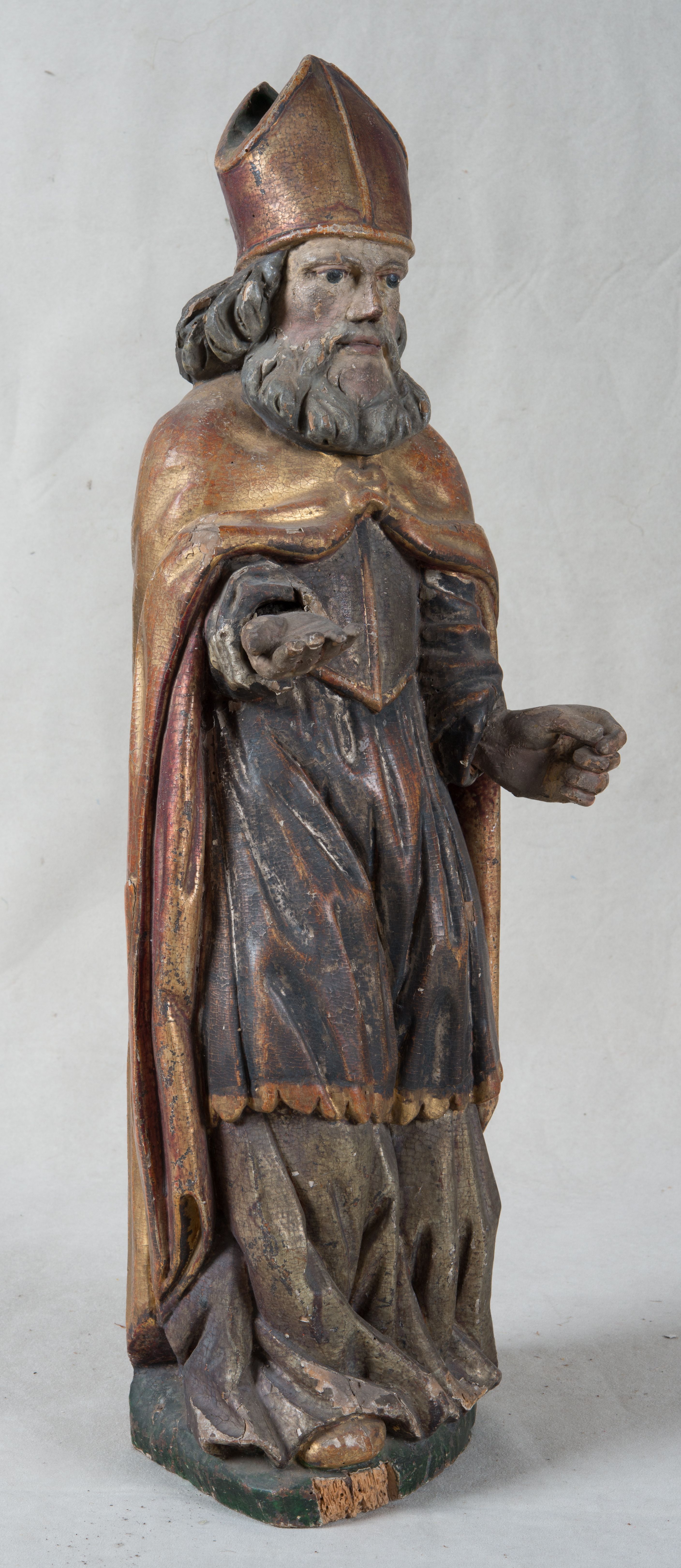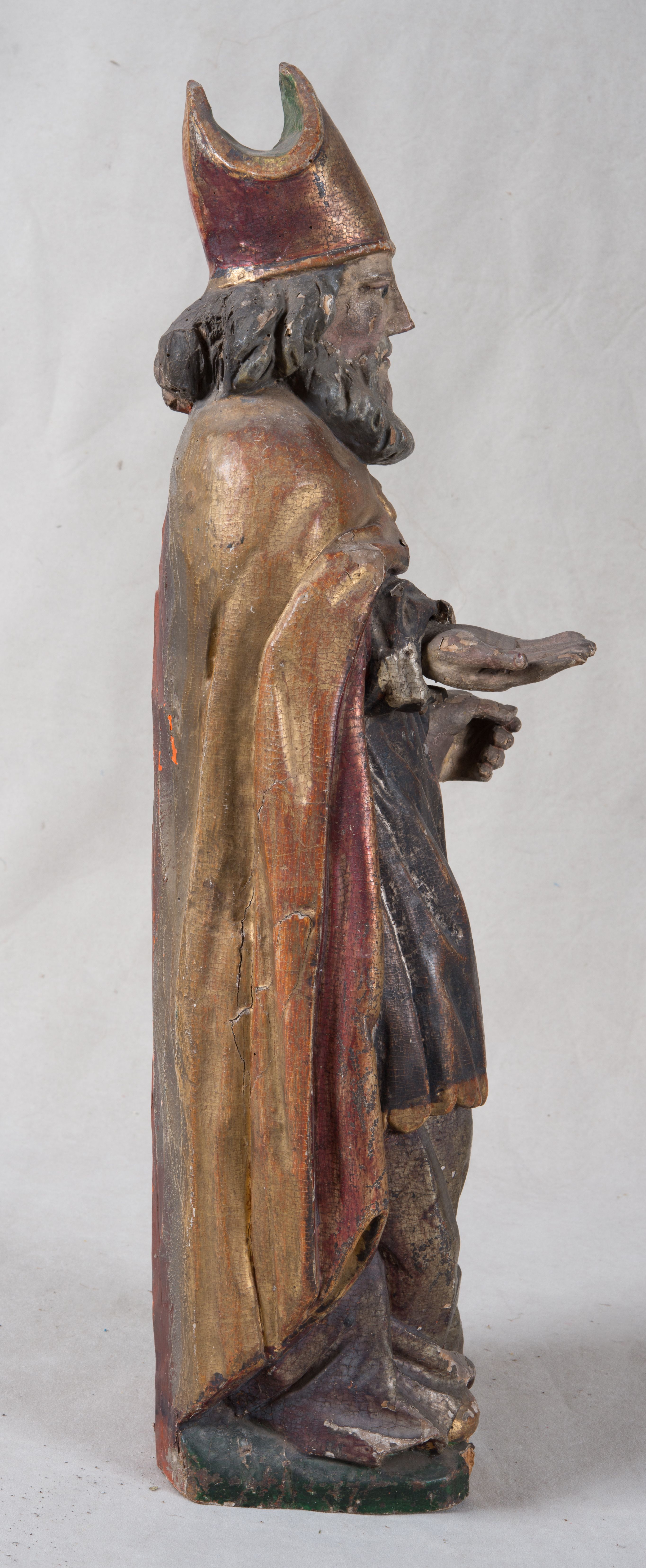 The statue of St. Nicholas was created in the 17th century. Probably it was a sculptural decoration of one of the old altars in the church. St. Nicholas, was the Bishop of Mira, thus, he is presented in attire in accordance with this dignity. Three balls on the book, which were probably supported by the right hand of the statue of St. Nicholas being discussed refers to a legend of saving three daughters of a burgher from harlotry by giving them gold balls as a dowry.