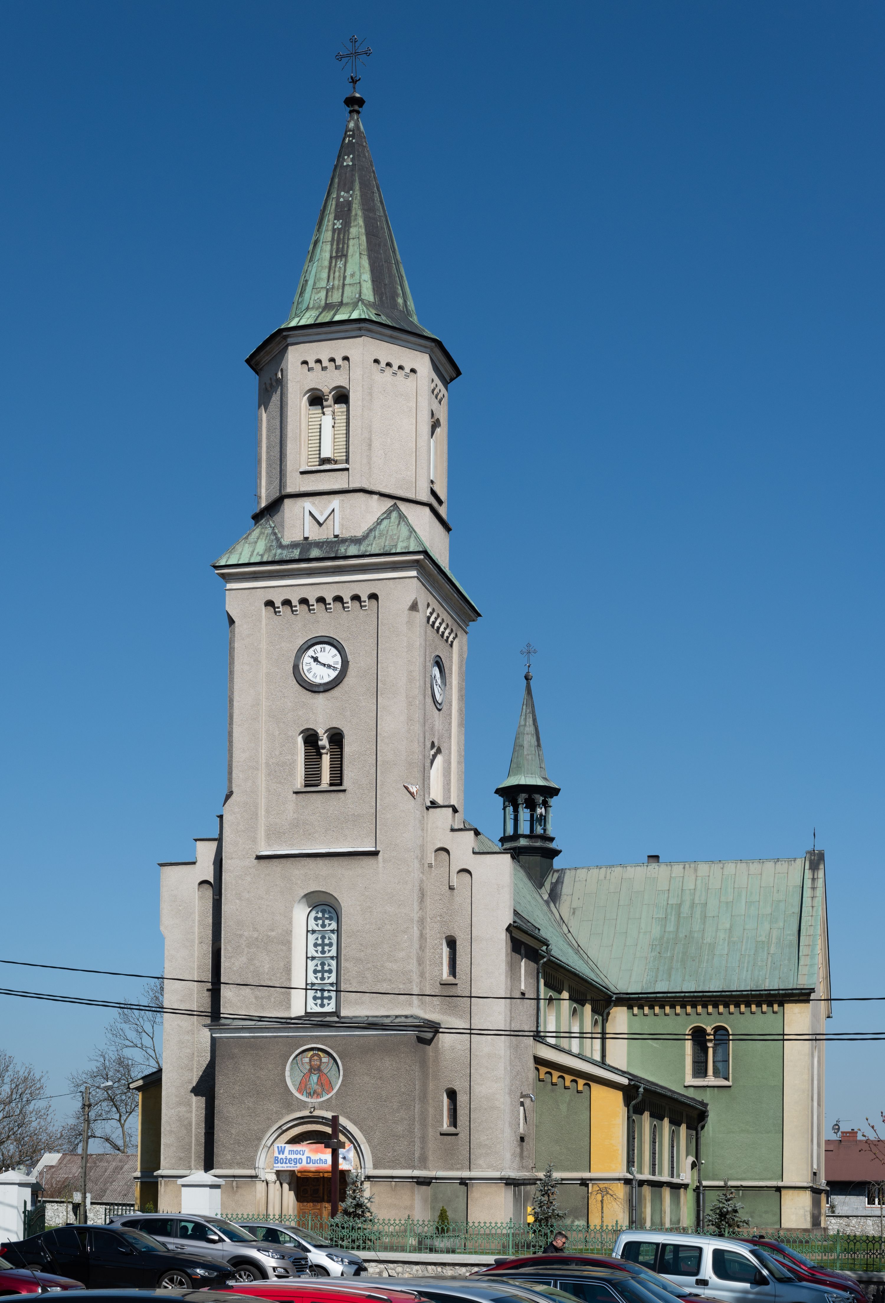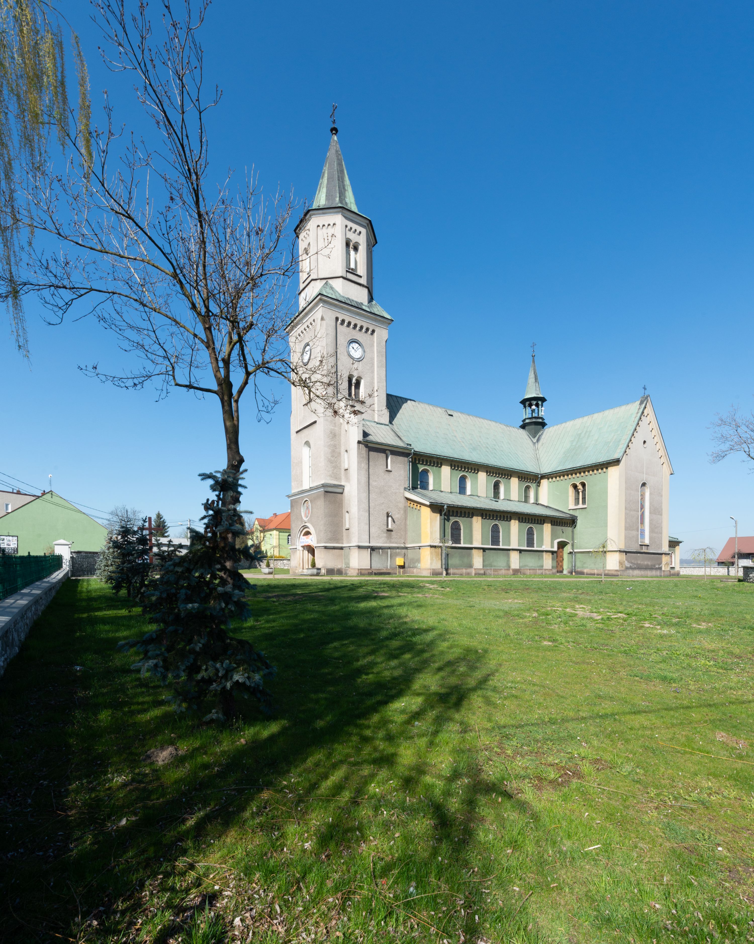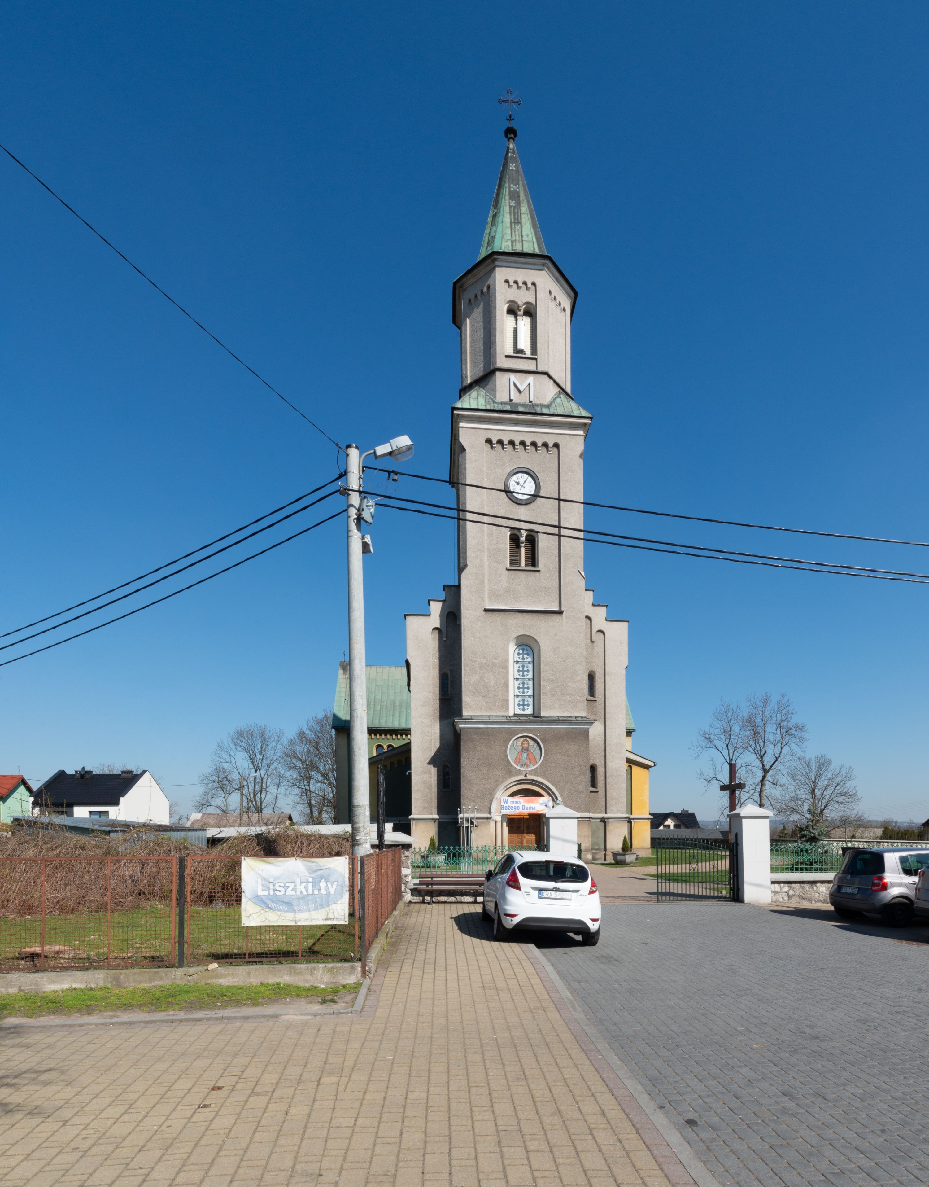 The church in its present form - made from the limestone combined with baked brick - was completed in 1873 and consecrated in 1888. Its project, that was subject to changes, was made by an architect from Cracow, Felix Księżarski, and the materials applied had been acquired from the dismantling of an old temple. The architecture of the church is in the style of Neo-Gothic and Neo-Romanesque. The most valuable relics, stored inside the temple, are the restored 18th-century paintings of the Virgin Mary Lisiecka (along with the 17th-century robe) in the high altar and of St. Nicholas in the side one. The entire high altar, designed by Tadeusz Stryjeński, is worth noting and the side one of the Most sacred Heart of Jesus, which as the only one was transferred from the old church. Several paintings from the old church were turned into procession float.
