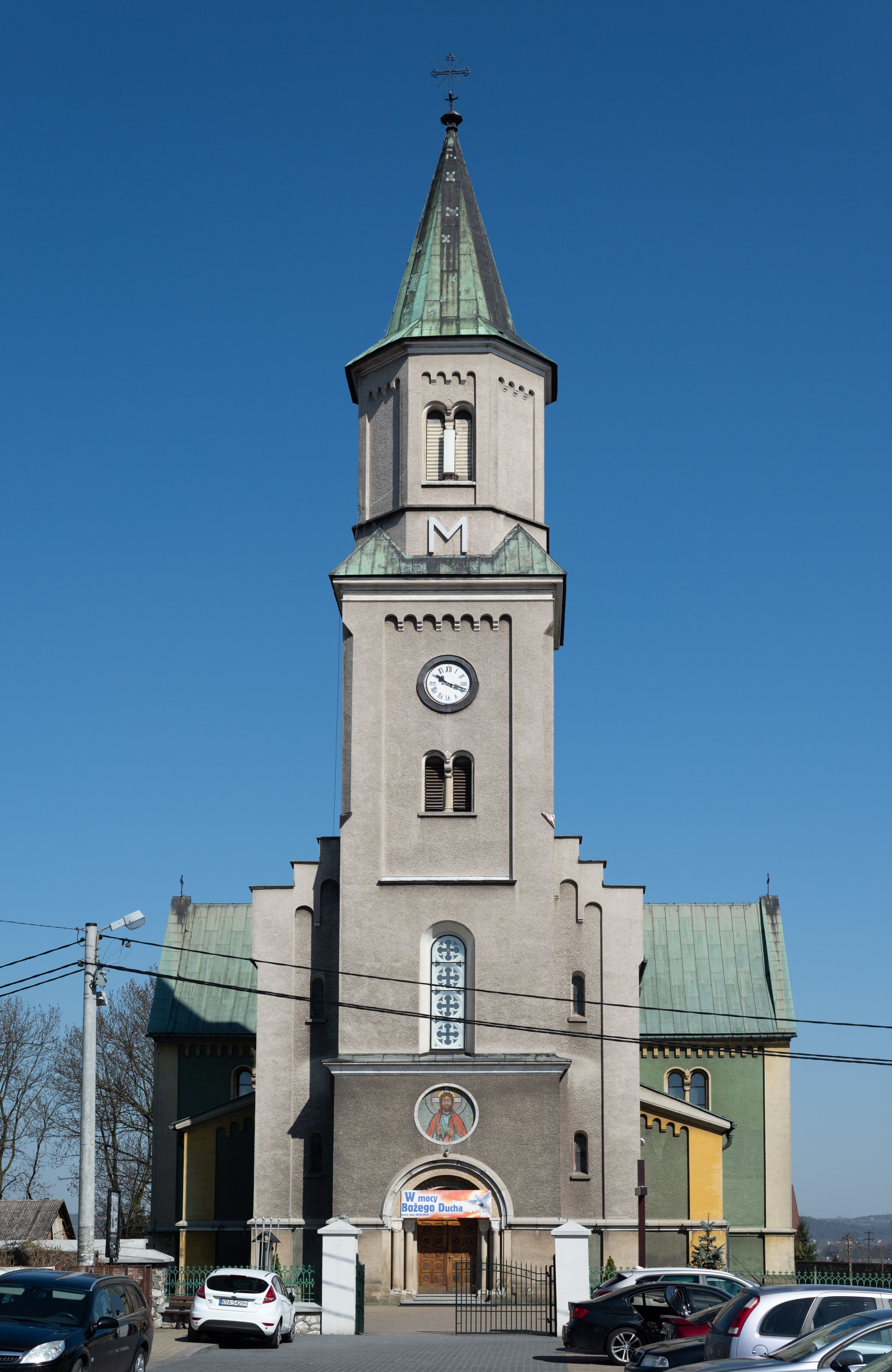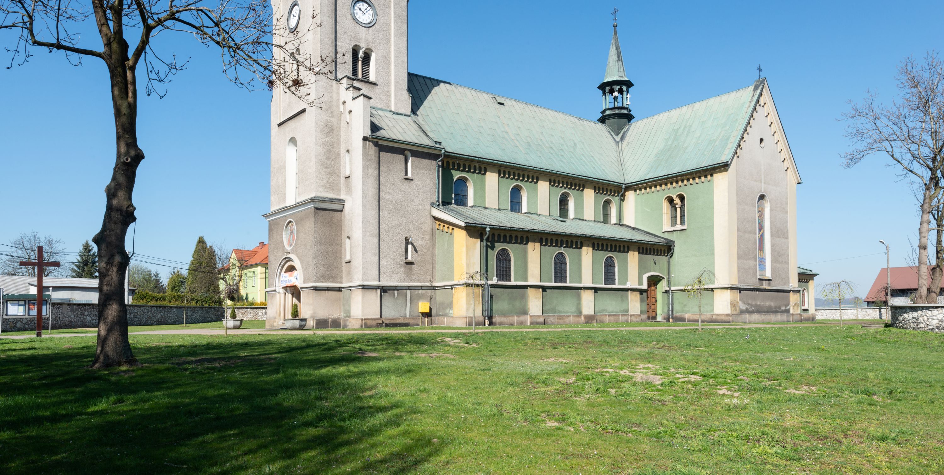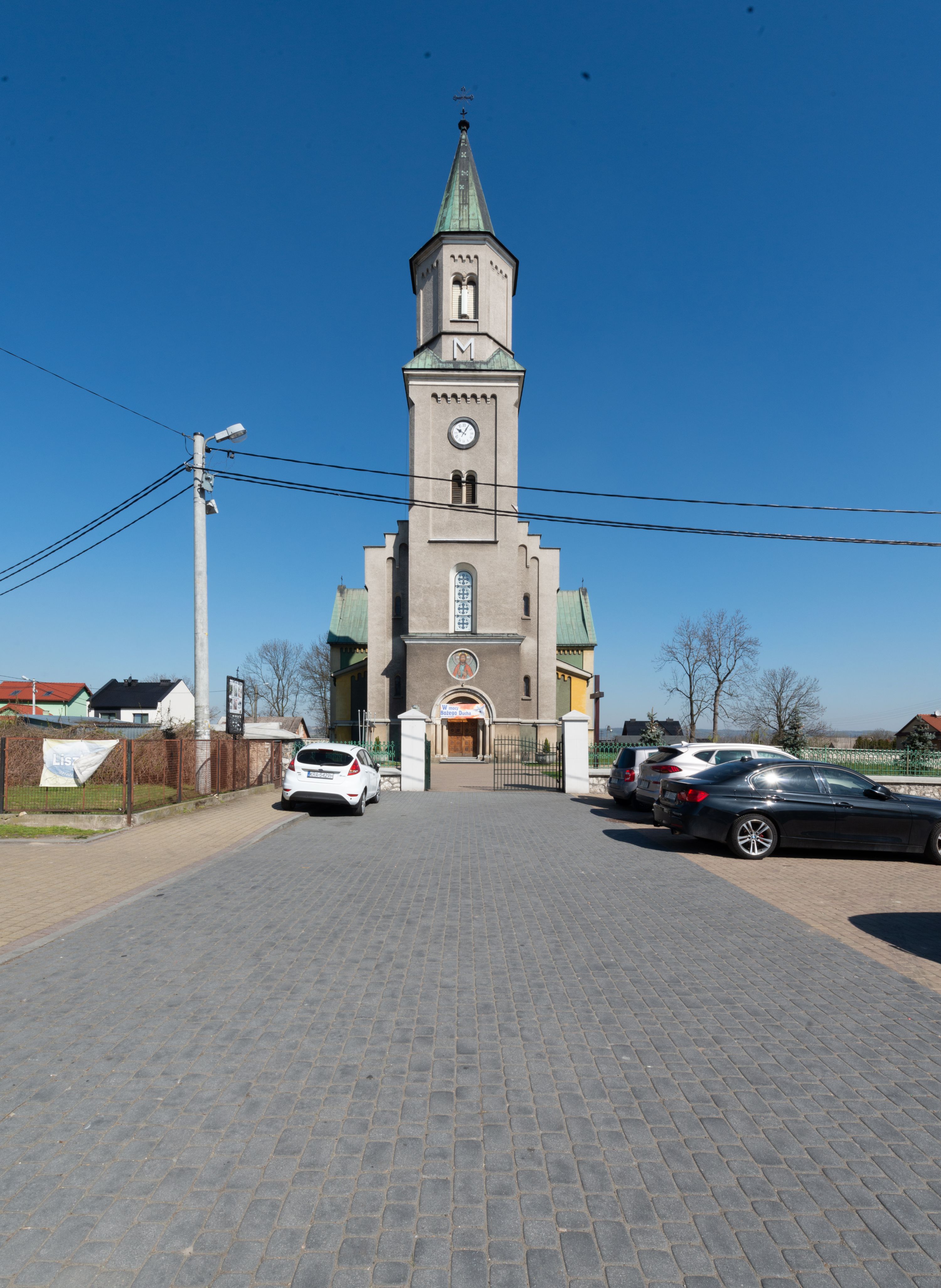 The church in its present form - made from the limestone combined with baked brick - was completed in 1873 and consecrated in 1888. Its project, that was subject to changes, was made by an architect from Cracow, Felix Księżarski, and the materials applied had been acquired from the dismantling of an old temple. The architecture of the church is in the style of Neo-Gothic and Neo-Romanesque. The most valuable relics, stored inside the temple, are the restored 18th-century paintings of the Virgin Mary Lisiecka (along with the 17th-century robe) in the high altar and of St. Nicholas in the side one. The entire high altar, designed by Tadeusz Stryjeński, is worth noting and the side one of the Most sacred Heart of Jesus, which as the only one was transferred from the old church. Several paintings from the old church were turned into procession float.
