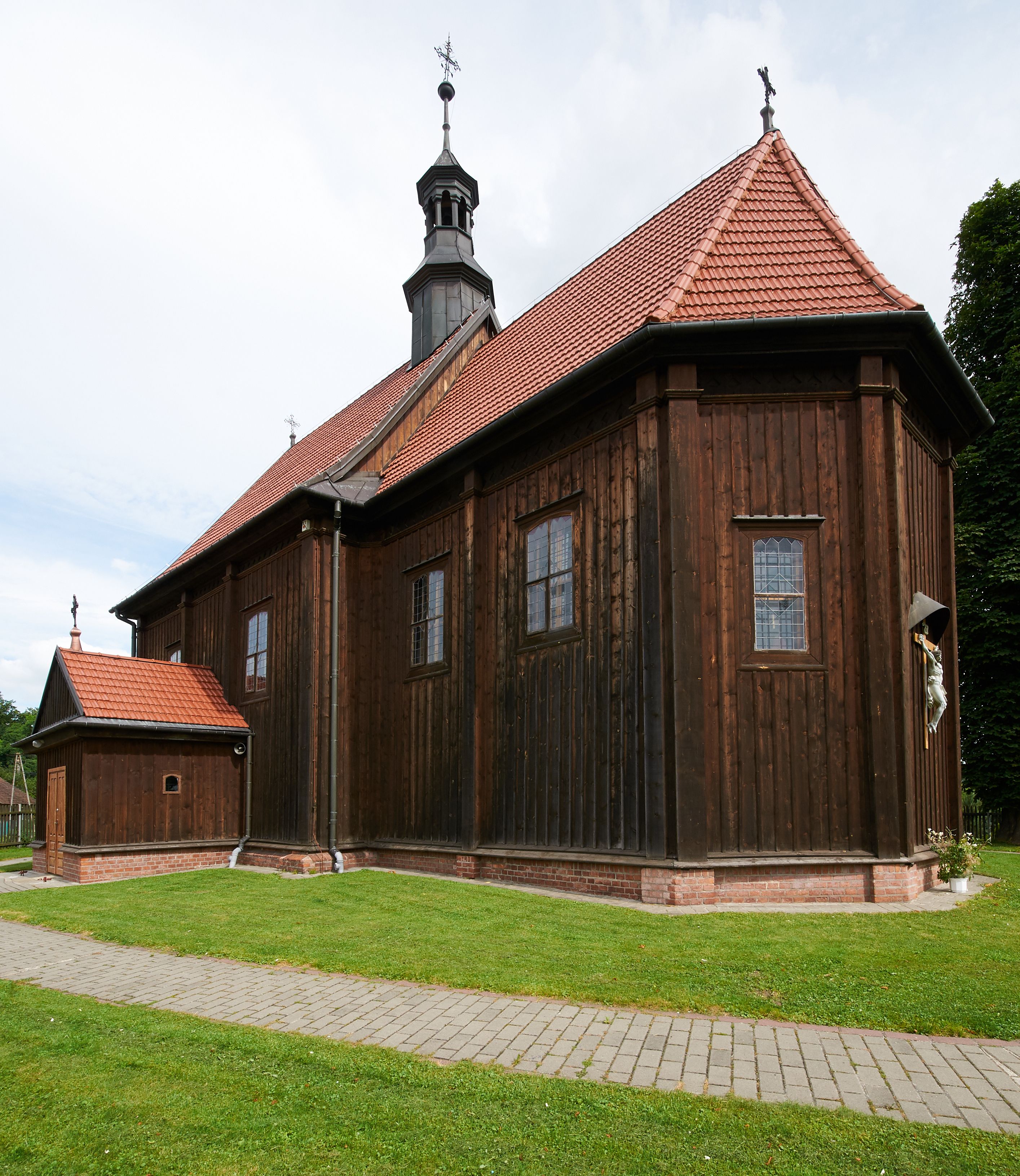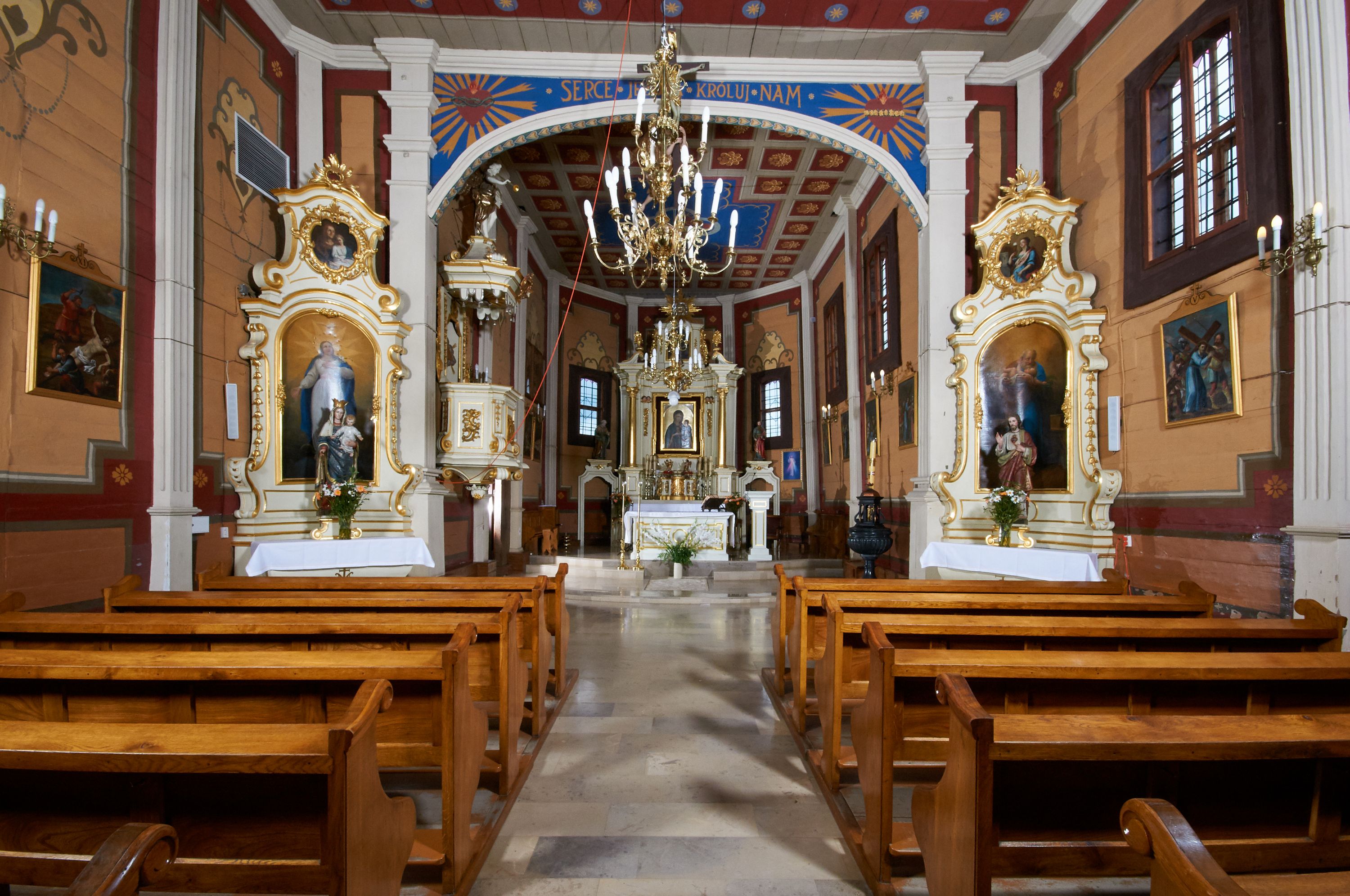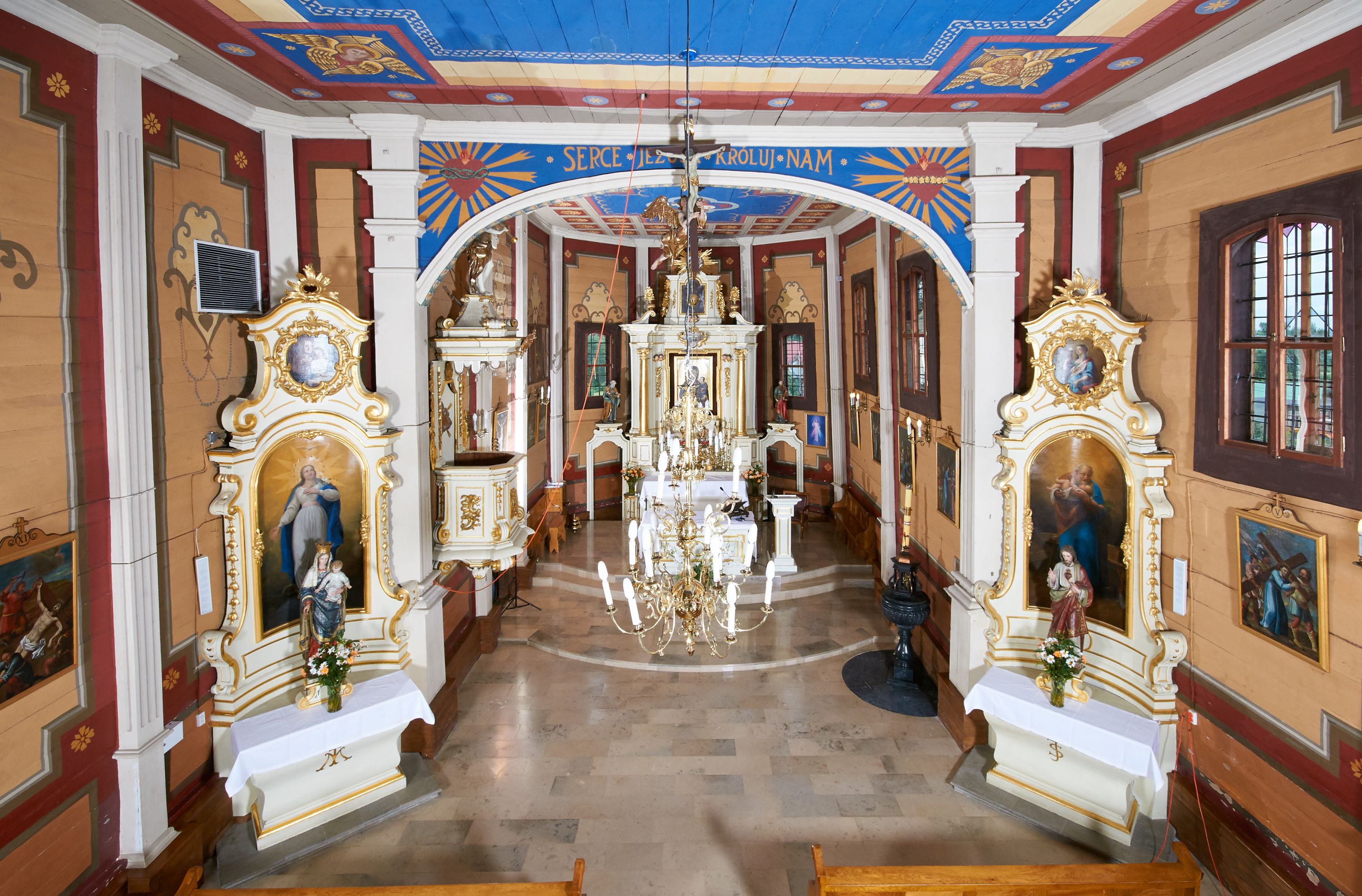 The first church in Czulice was mentioned in the years 1325-1327. In 1438, it was endowed by Jan Czulicki, of the Czewoja coat of arms. The second church was built in the first half of the 16th century. It could have taken place in 1547 as the date placed on the southern portal of the church indicates. The church was mentioned in the visitation records of 1596 for the first time. The temple has been renovated many times. One of the most important restoration works took place in 1720 thanks to the foundation of Zygmunt Morski. The next stage of works started in 1781: "[Father] Franciszek Minocki (...) with Mrs. Anna Grodzicka, née Morska, Castellan of Oświęcim, a Patron of high virtue, have jointly undertaken to repair the Church nearly from the ground up." The renovation must have taken several years as the church was not described during the visit in 1783 due to the ongoing works "towards significant repairs that are now being executed, and therefore its material condition shall not be described." It was then that the church was given its present Rococo furnishings. The inventory from 1827 shows that the chancel was separated from the nave by a wooden balustrade (which was not preserved to the present day). The fourth renovation of the church took place in 1856 and involved the construction of a new polychrome. Ten years later, the history of the church was marked by an unfortunate event. The part of the temple housing a side altar with the painting of the Blessed Virgin Mary burnt down as a result of a lightning strike. The beginning of the 20th century was marked by further renovations of the church, as the parish priest Andrzej Bielski wrote in 1902: "So decrepit is the church that it shakes and threatens to collapse during a storm." In 1906, the shingle roofing was replaced with roof tiles, another formwork was added and other elements, such as door woodwork and joinery in the sixteenth-century portals, were replaced. At the end of the 20th century, the church also required immediate renovation, which began in 1995 on the initiative of Father Wiesław Grzechyno. The roof and bell tower were repaired, the ridge turret was completely rebuilt, and all wooden structural elements of the temple and its polychrome underwent maintenance works. Damaged windows were also replaced. The following year marked the commencement of renovation of the temple's furnishings: the pulpit and the main altar, and the side altars in 1997. This comprehensive renovation of the temple was completed in 1998. The interior of the church is covered with polychrome created in 1947. The oldest Gothic elements of the church include three portals and one window frame, a 15th century epitaph plate for the supposed founder, Jan (?) of Czulice, embedded in the floor of the chancel, depicting a knight in a Czech capeline helmet, and a sculpture of Madonna and the Child from the last quarter of the 14th century, located in the Archdiocesan Museum in Krakow. The second important monument, currently located outside the temple in Czulice, is a painting depicting three St. Johns (John the Evangelist, John the Baptist and John the Merciful), now kept in the treasury of St. Mary's Basilica in Krakow. Noteworthy exhibits of goldsmithery include the chalice and monstrance signed by Marcin Lekszycki, a Cracow goldsmith operating in the years 1763-1798. An inventory from the beginning of the 18th century and a visitation report from 1783 noted that there was a wooden bell tower (now missing) with two bells located next to the church.