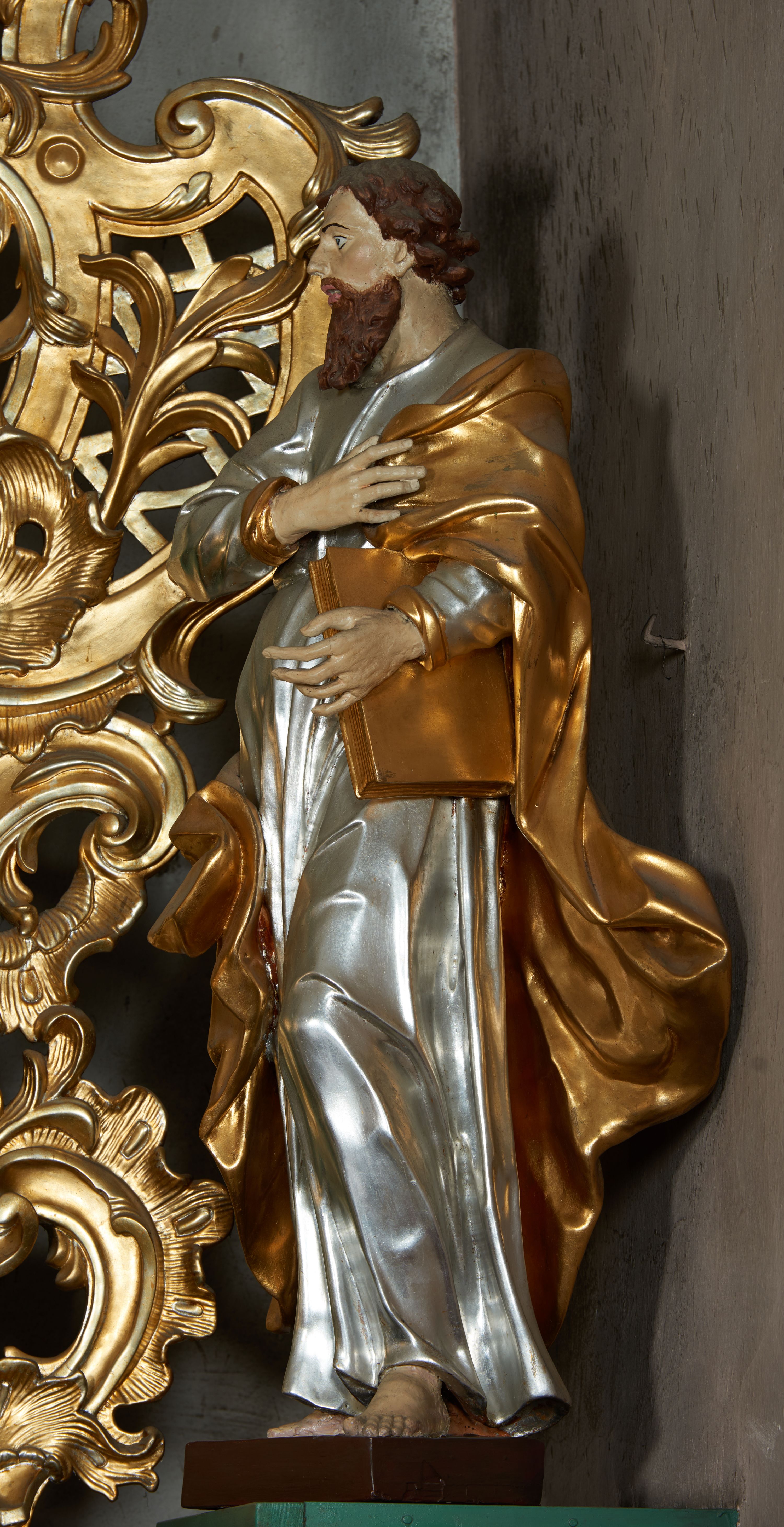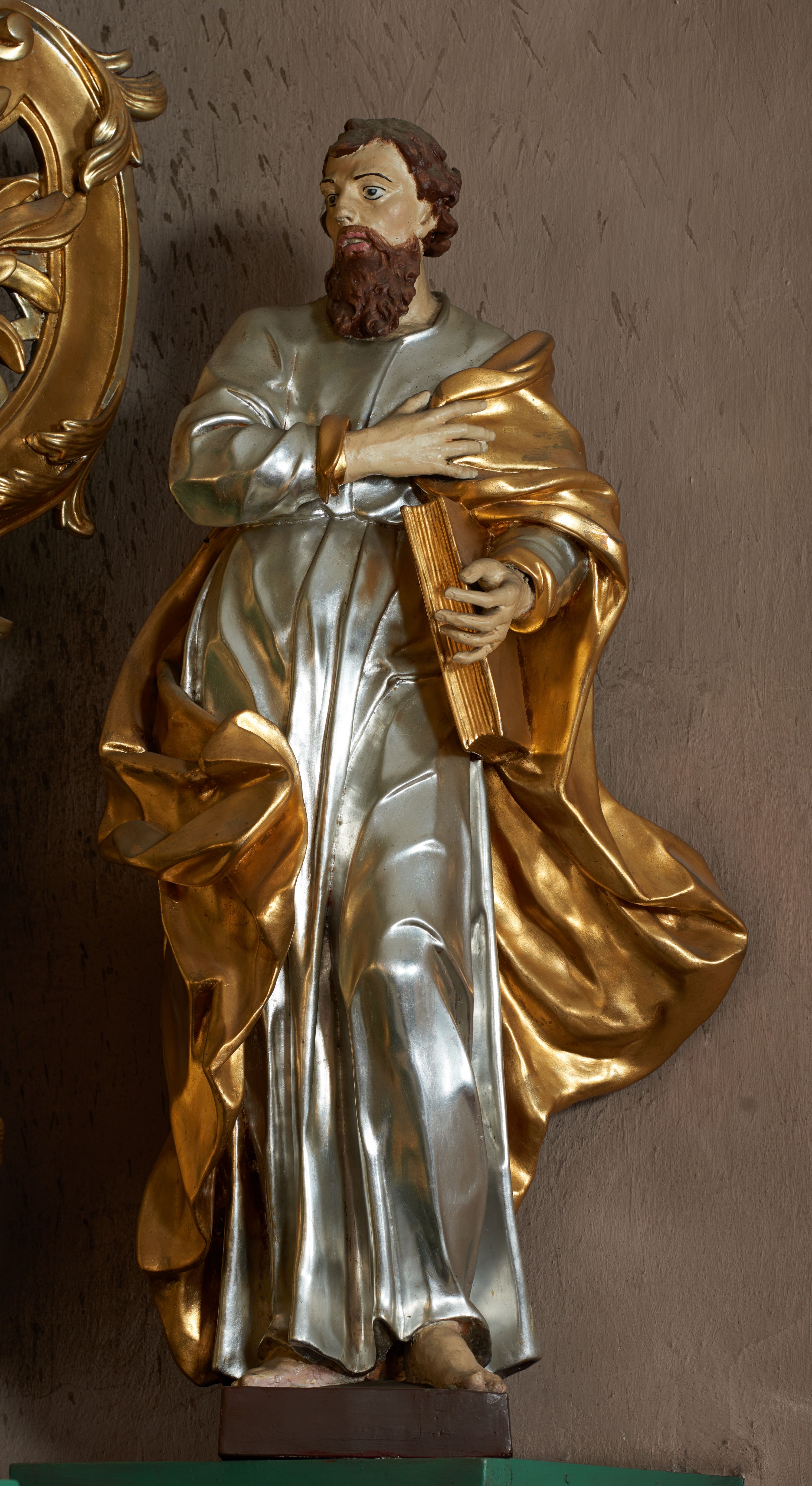 The statue is part of the high altar of the church in Sułkowice, brought to Tarnawa in 1967, and subjected to restoration. Most likely, it represents St. Paul, who might have held a hilt of a leaning on the ground sword in his left hand. The work has features of a Late Baroque sculpture.