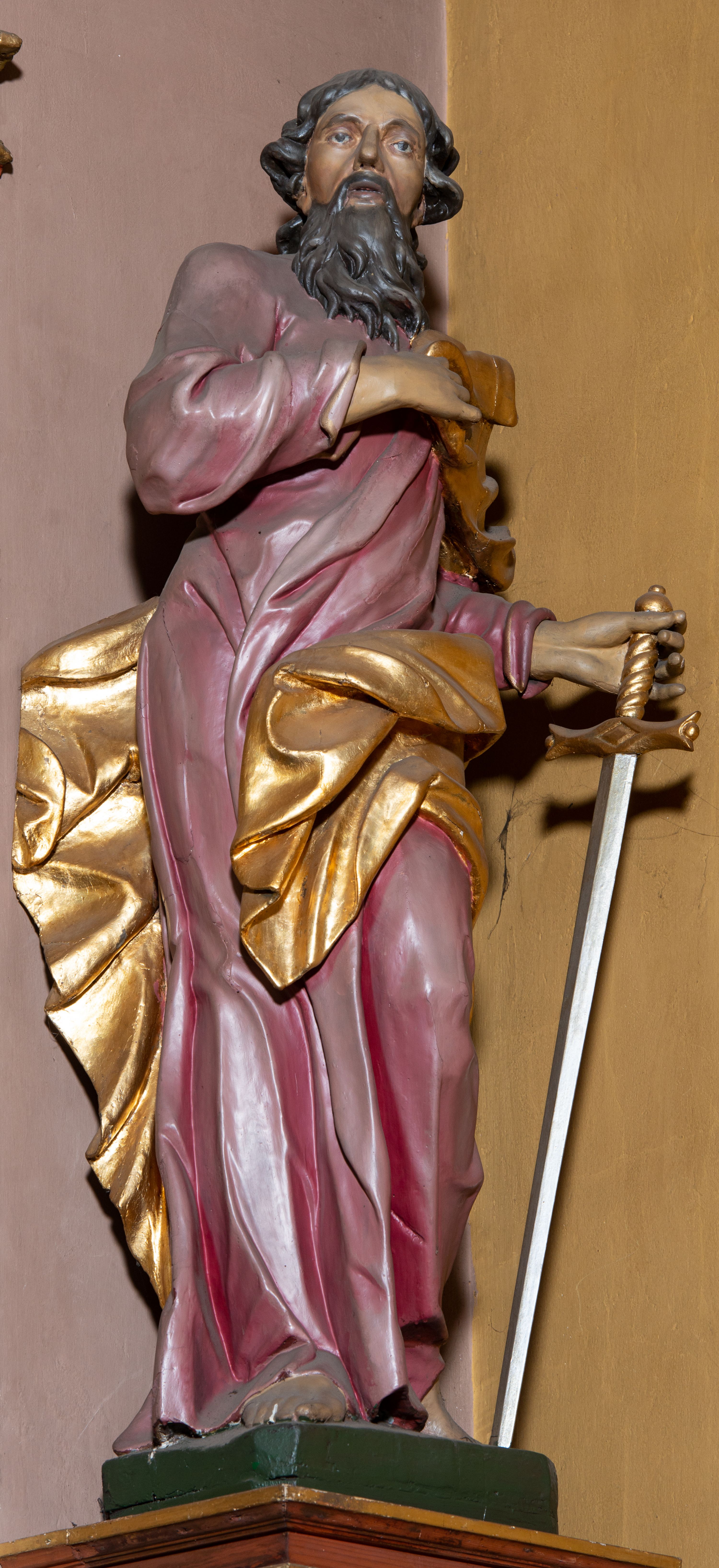 St. Paul's sculpture placed in the chancel of the parish church in Włosienica is an example of the work of Tirol's woodcarving workshops from the turn of the 19th and 20th century. The statue was created around the year 1905 in Ferdinand Stuflesser's workshop, as an example of Neo-Baroque style from the second half of the 18th century.