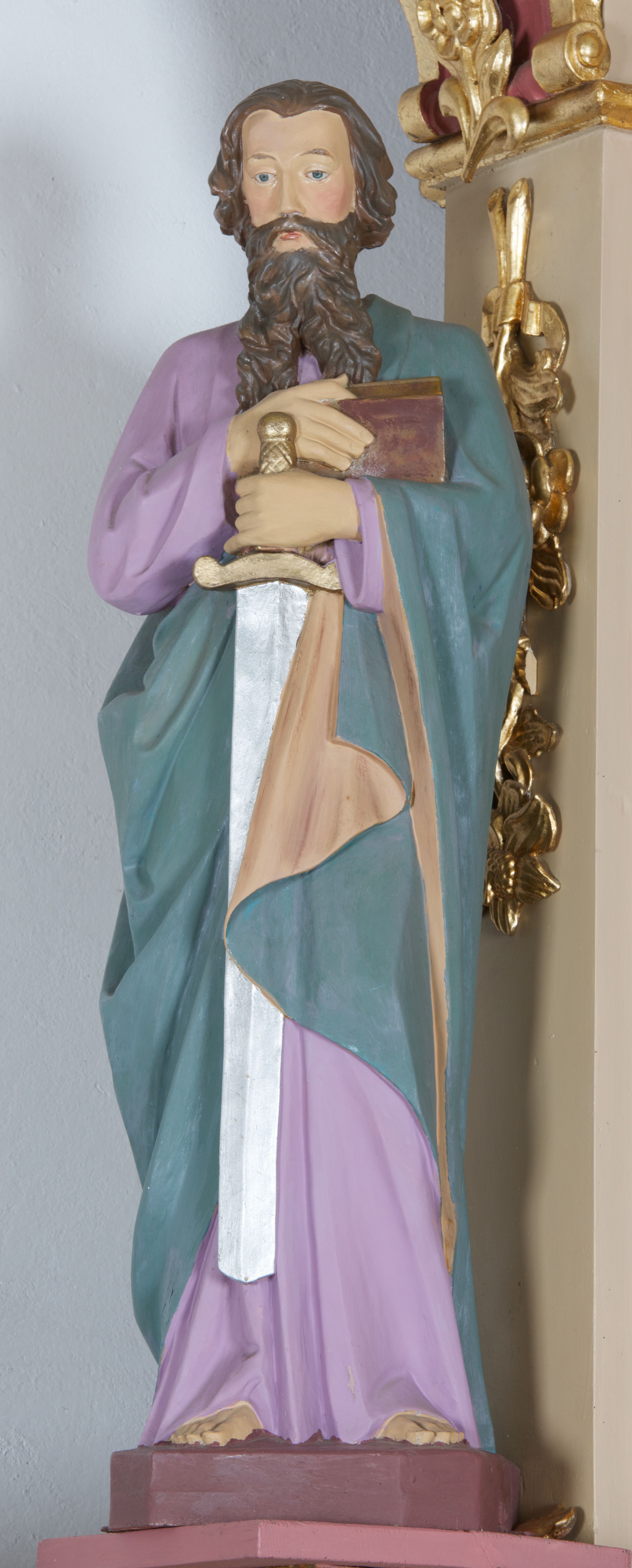 The statue of Saint Paul set on the high altar in the Church of the Holy Trinity in Bieńkówka is a traditional type of depiction of the saint apostle, i.e. with a sword and a book in his hands. On the other side of the altar there is a sculpture of Saint Peter made in the same workshop.