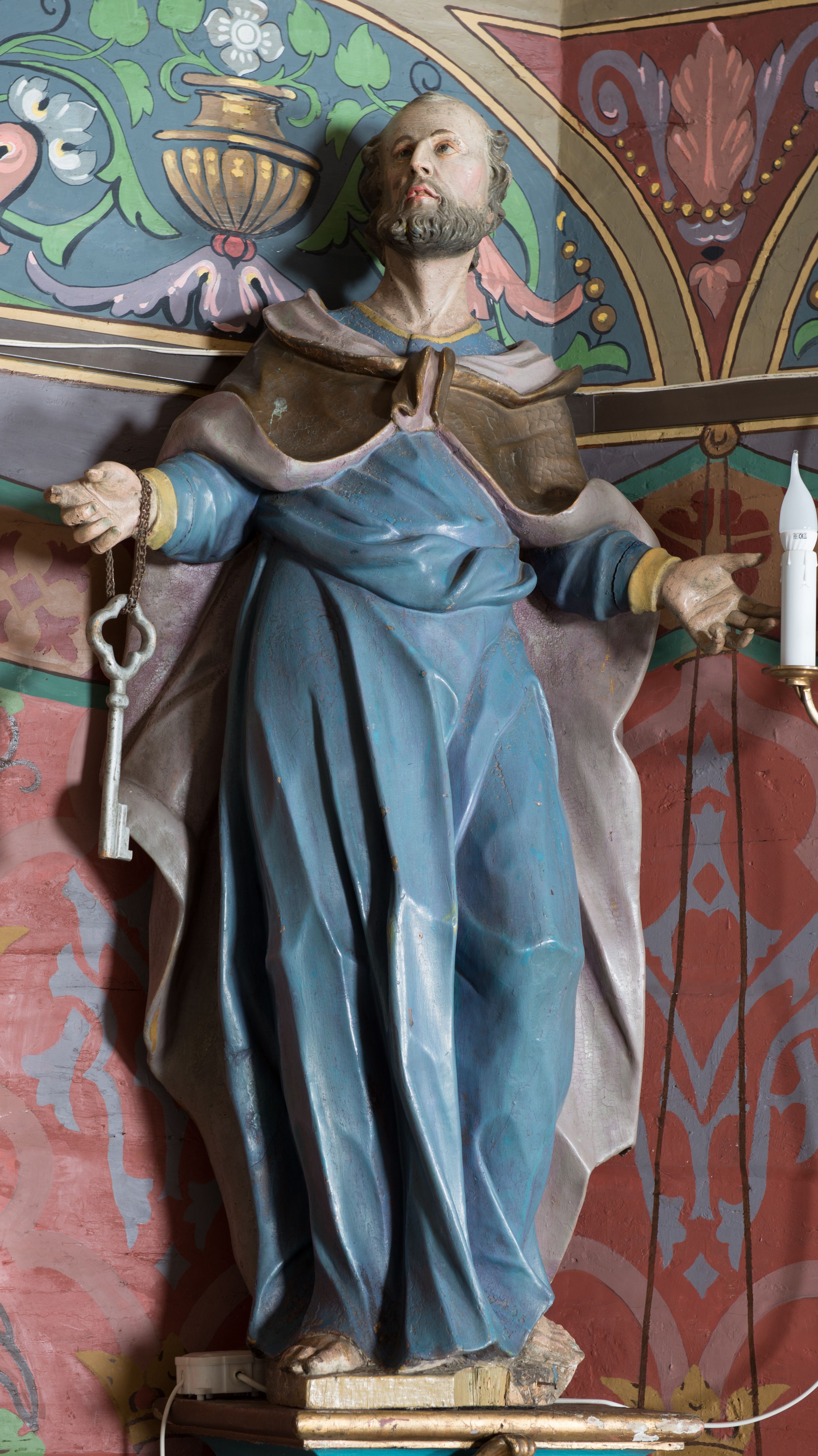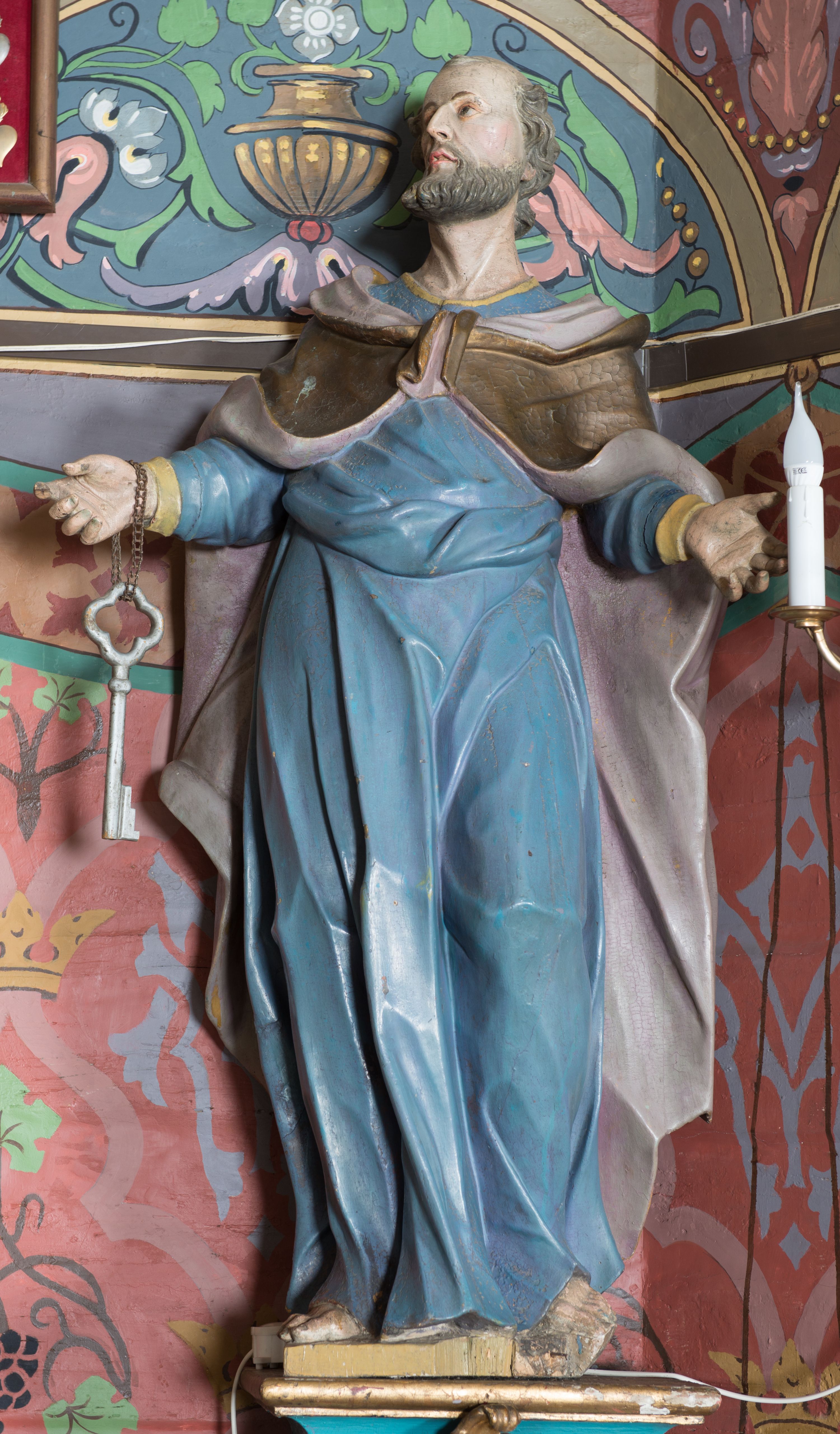 The statue of St. Peter as one of the four sculptures was created for the high altar, which was built for the new church around 1780 by the Kornecki brothers - Antoni and Ignacy. Saint Peter was the brother of St. Andrew, a fisherman who joined the group of Christ's disciples and became his apostle. In iconography, one of his attributes are keys.
