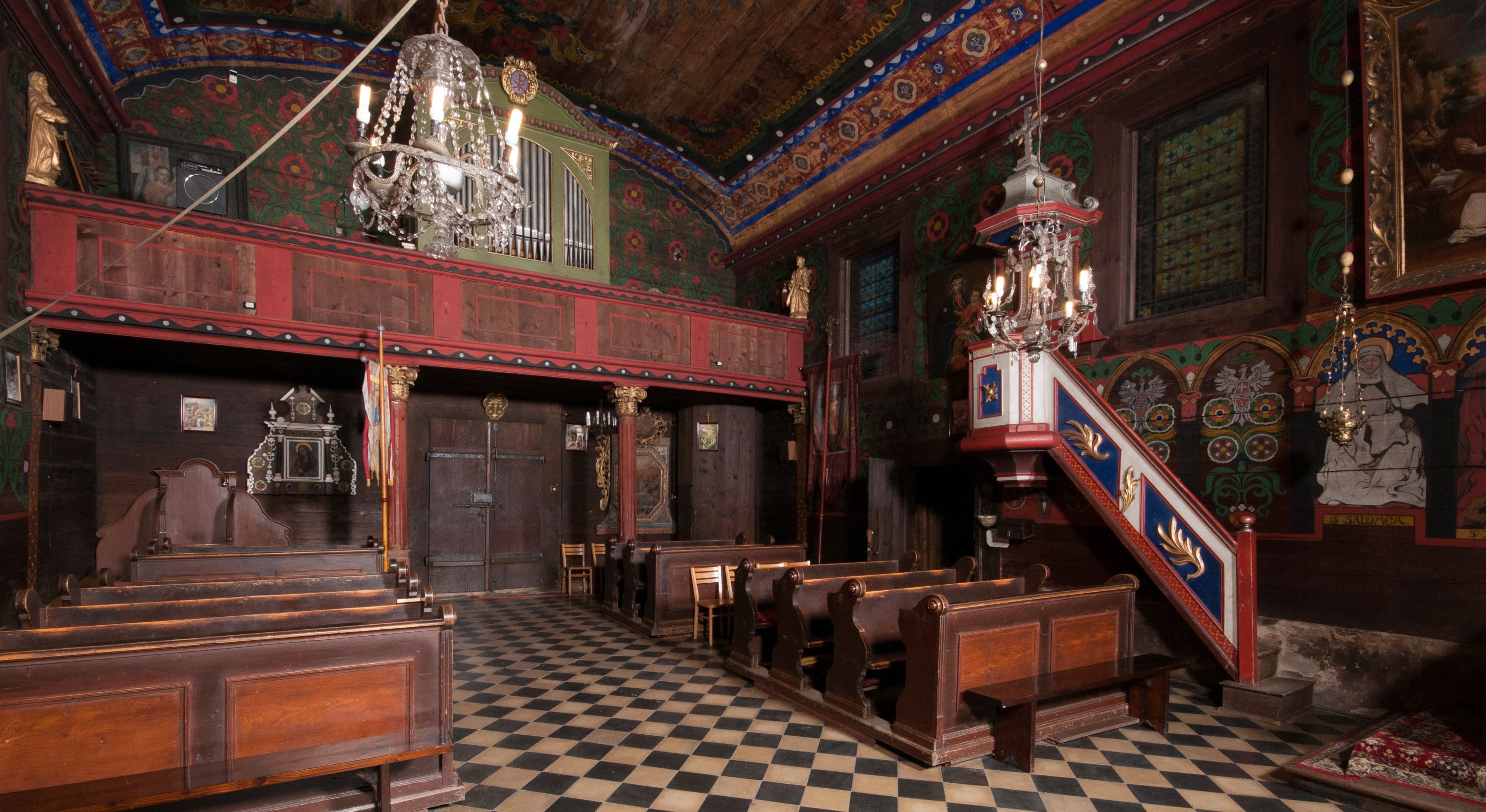In 1903-1910 it was thoroughly renovated. In 1904, a brick underpinning was laid under the walls of the church, the sill plates were secured, the floor inside the nave was replaced, three pillars in the crypt under the chancel were rebuilt, a new floor was laid in the whole church, a new door was inserted. Then, the ridge turret and the church porch with a bell deck as well as the northern church porch were fully renovated ("the whole new porch"). In the first half of 1906, apparent copings were built in the nave and chancel using old boards. In the same year, two side altars were rebuilt, the wall above the loft was repaired and the northern wall was covered with new boards. Extensive work also started on the creation of a new polychrome in the church, which was made free of charge by Włodzimierz Tetmajer, with the help of Józef Mikulski, a painter from Wieliczka. During the renovation, on 29 September 1906, bishop Anatol Nowak consecrated the church. In 1907, at the request of the Reconstruction Committee, Stanisław Kuczkiewicz received financial support in the amount of 1000 crowns (korony) from the k.u.k. of the State Treasury in Lviv to renovate the roof truss and tile the roof of the church. Due to the exemplary attitude of citizens, whose initiative it was to renovate the church of St. Sebastian, Feliks Kopera applied for the payment of the existing grants to the committee and the payment of an additional amount of 200 crowns (korony) for the finishing of the church. The renovation was officially completed on 30 October 1910, which is when three new bells founded by Ludwik Widomski were consecrated. Nevertheless, in the following years, individual renovation works were still carried out. In 1911, the ridge turret was covered with a copper sheet. A year later, the painting of Our Lady of Immaculate Conception by Florian Cynk was purchased for the side altar and new stained-glass windows, designed by Stefan Matejko and made in the S.G. Żelenski's Stained Glass Workshop in Cracow, were mounted. The former organs were dismantled on 14 May 1914 and replaced with new ones, donated and made by the Rudolf Hess National Organ Supply Company from Lviv.