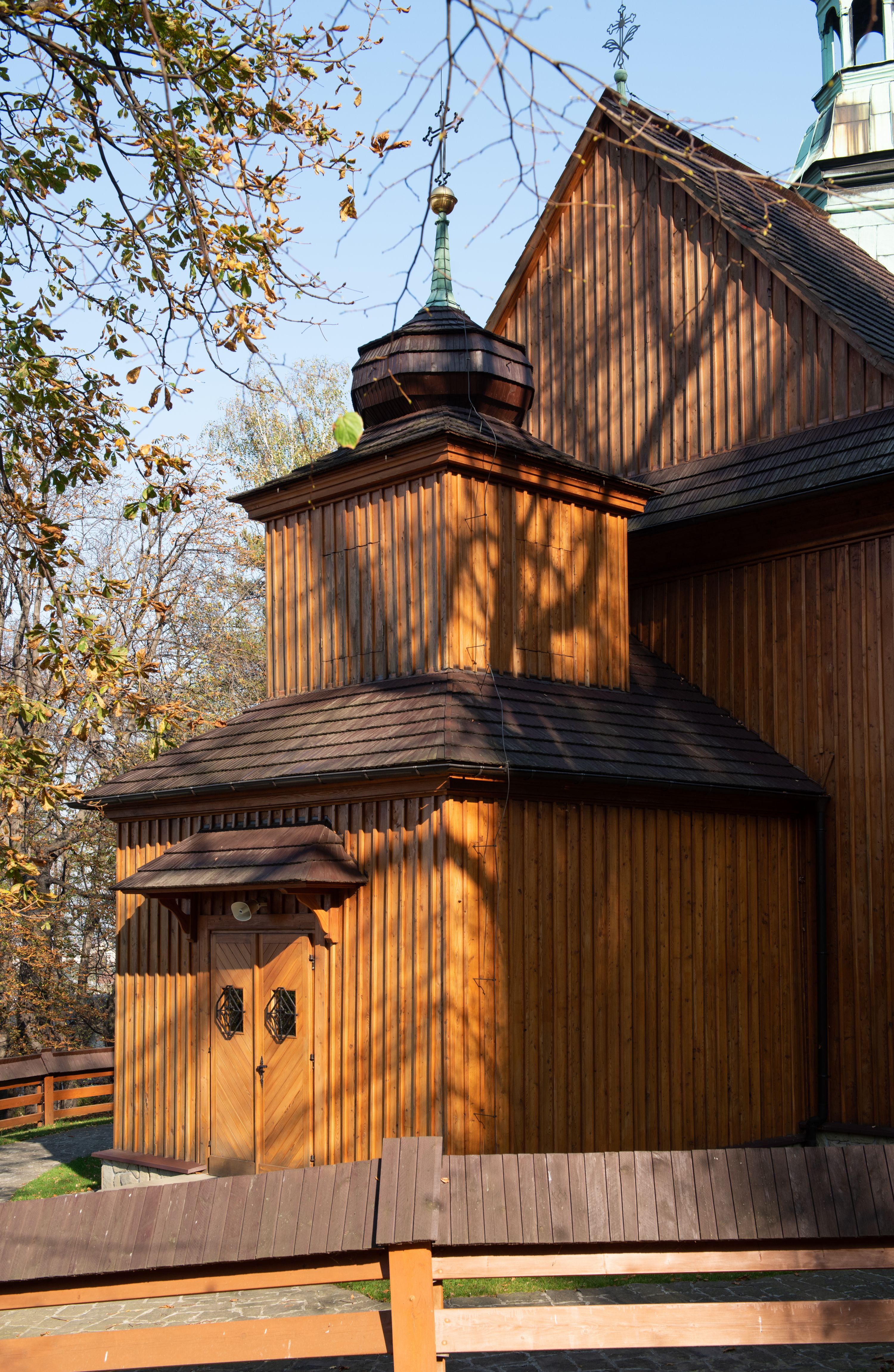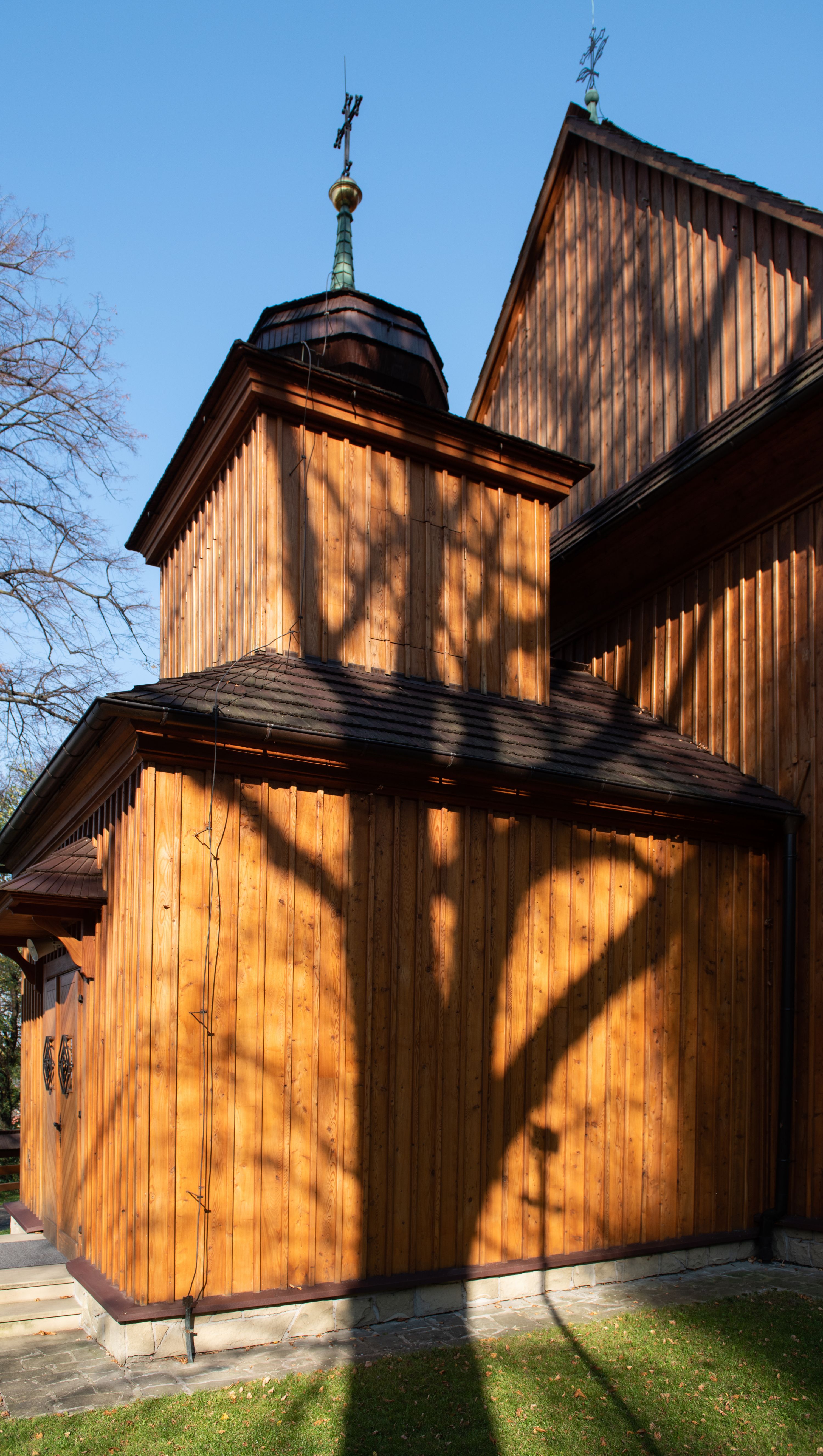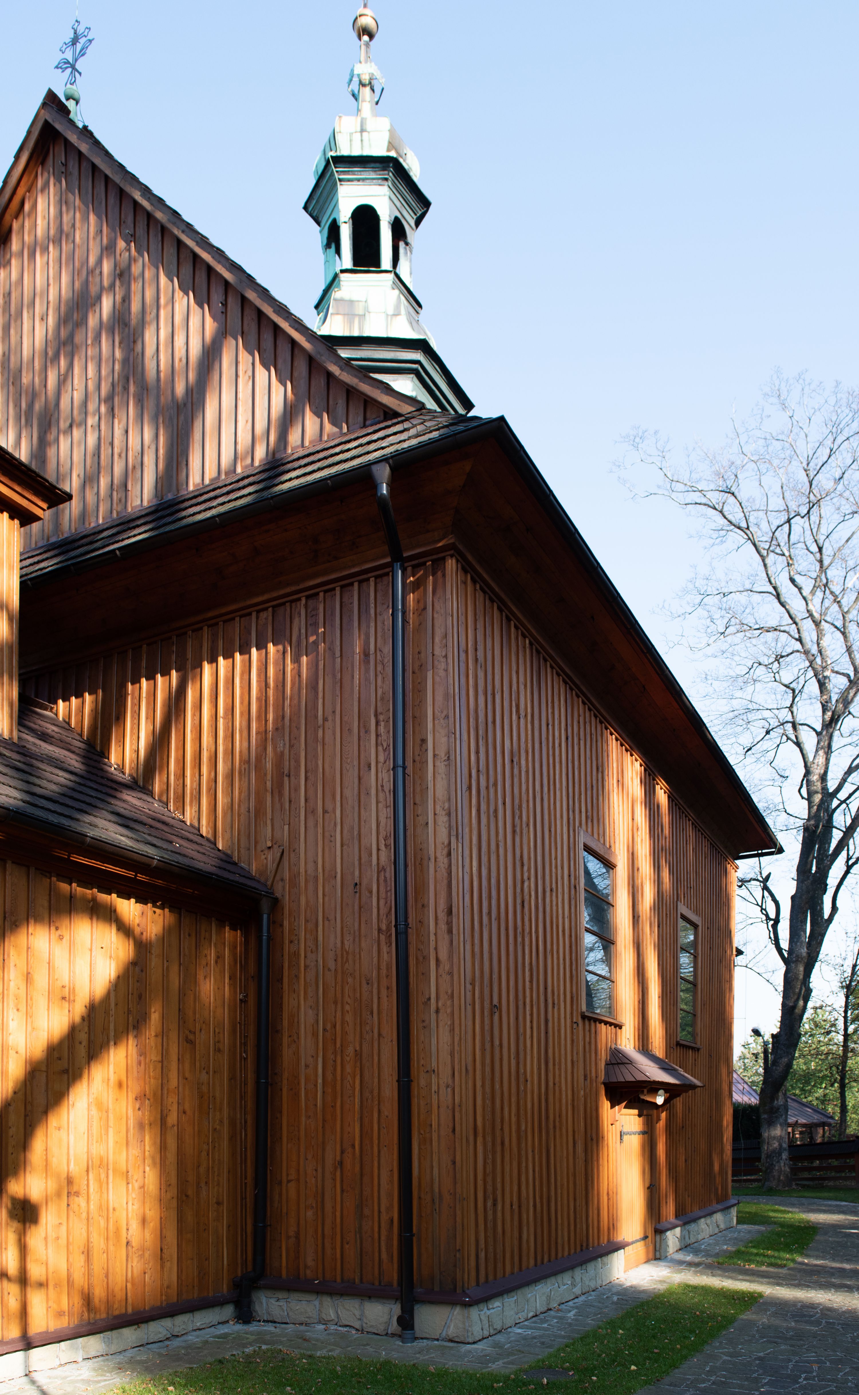 In 2003, a "FOG" Fire Protection System was installed in the church. In 2009, the rector, Father Mateusz Ryś, began preparations for complex construction and restoration works, whose program was prepared by architects Andrzej Gaczoł and Bogusław Kulka. Construction began in 2011. The brick foundations of the temple were uncovered and secured. A drainage system around the church was made. The damaged sill plates (a base consisting of beams on which the wall rests) were inspected and replaced and all structural elements of the northern porch were replaced. In 2012, the tiles covering the church roof and the formwork of the building walls were removed, the damaged elements were replaced and the remaining ones secured. The formwork of the external walls was entirely replaced and the elements of the wooden cornice were reconstructed. Inspection of the roof truss took place, during which its parts were replaced, supplemented and secured. The shingle covering of the church was restored using insulation and the damaged shingle above the porch was replaced. Window and door frames were renovated and reconstructed and new entrance doors to both porches were made. In 2013, renovation works were carried out in the crypt and the electrical installation was replaced in the whole church.