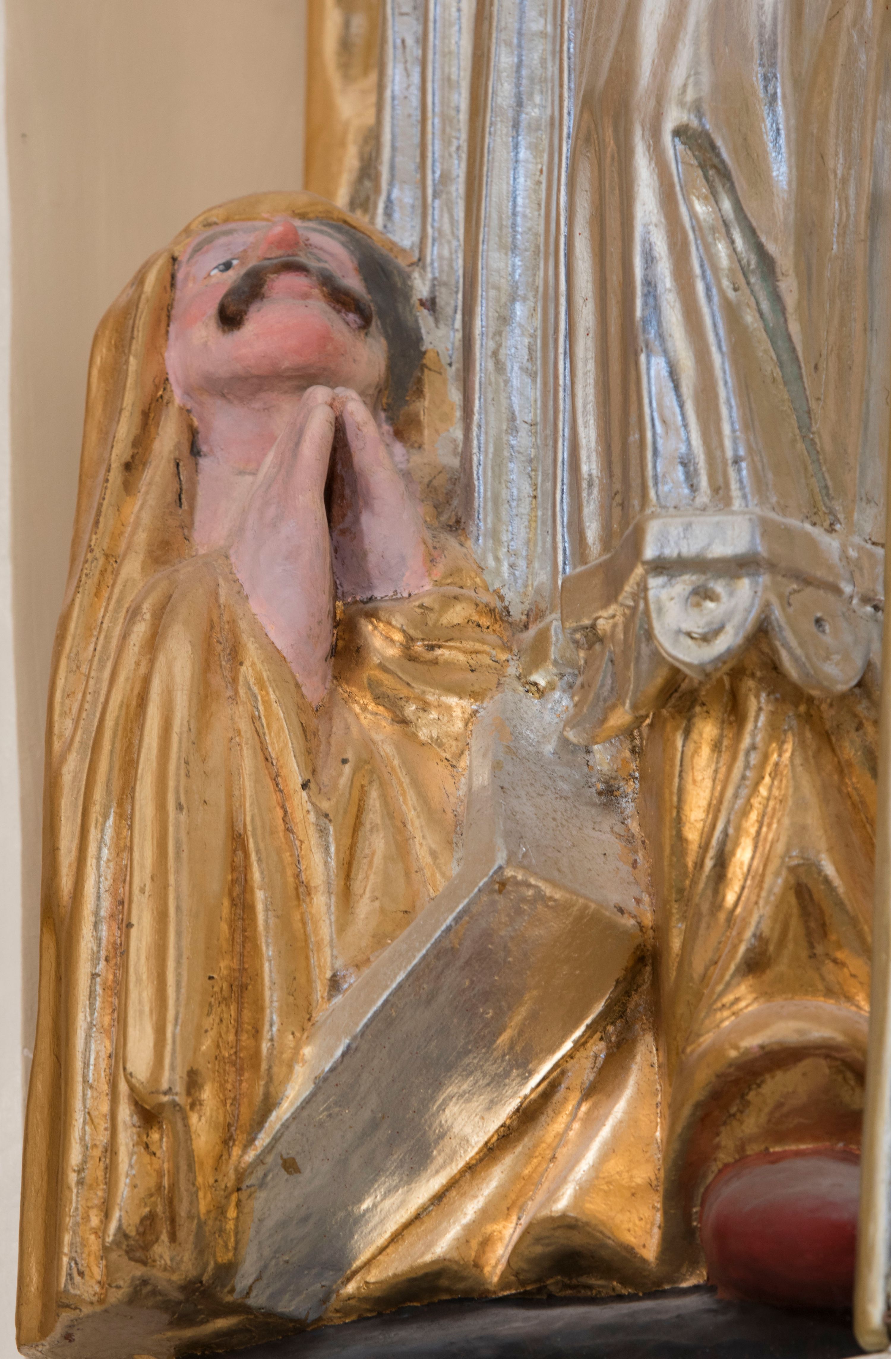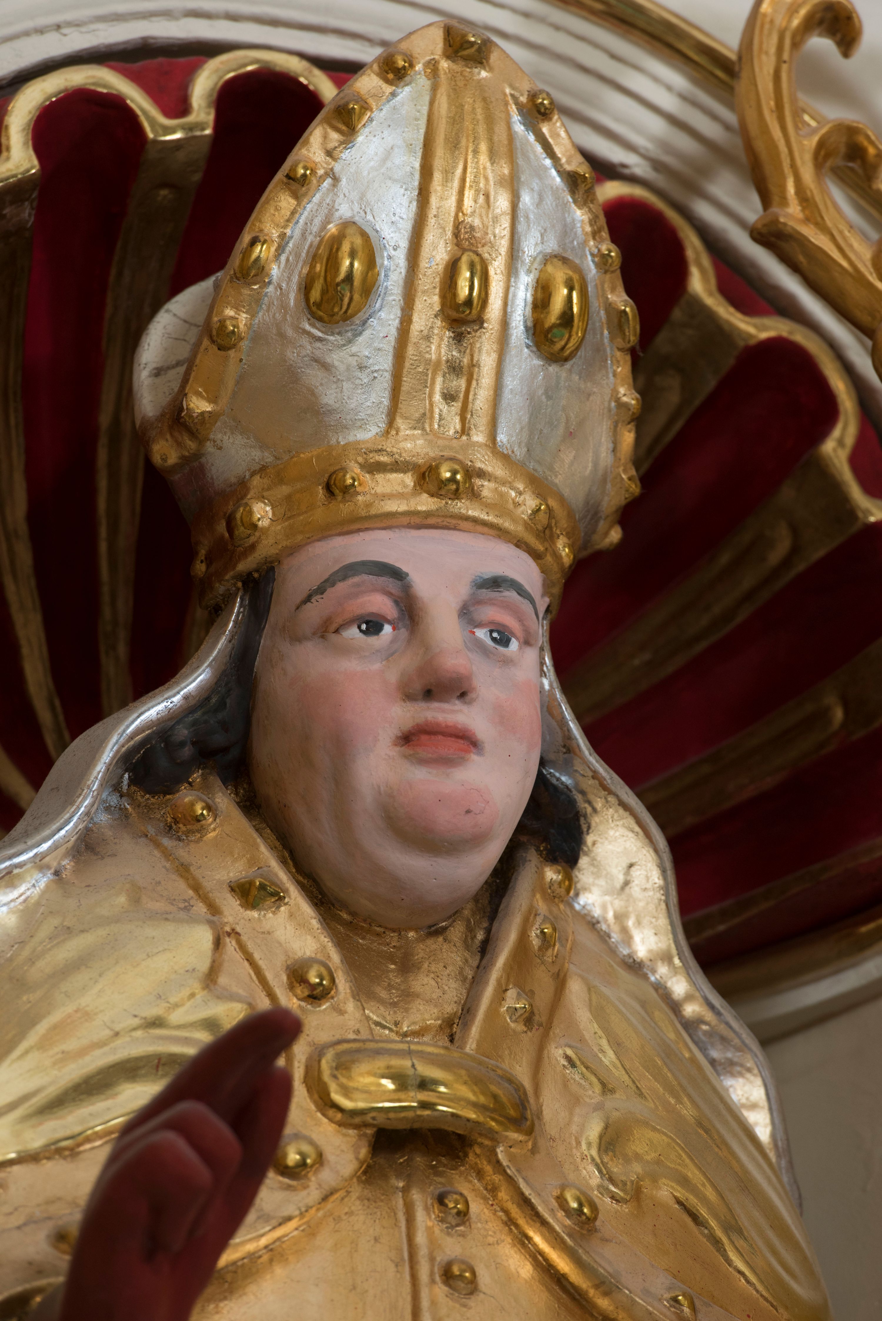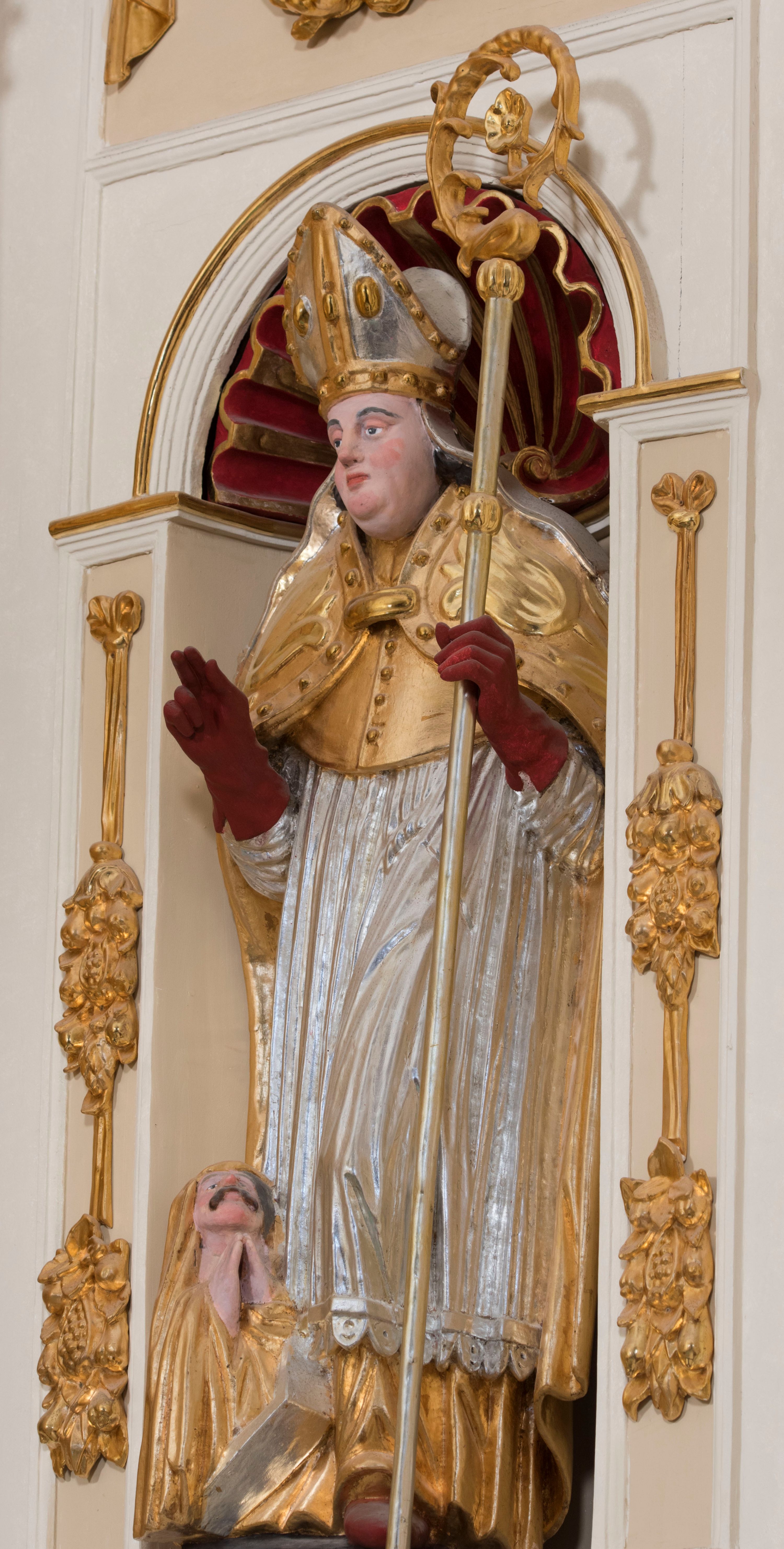 The sculpture which adorns the structure of the high altar in the parish church in Kęty, representing St. Stanislaus Bishop, one of the main patrons of Poland, displays style traits characteristic of the Polish sculptures of the mid-17th century.