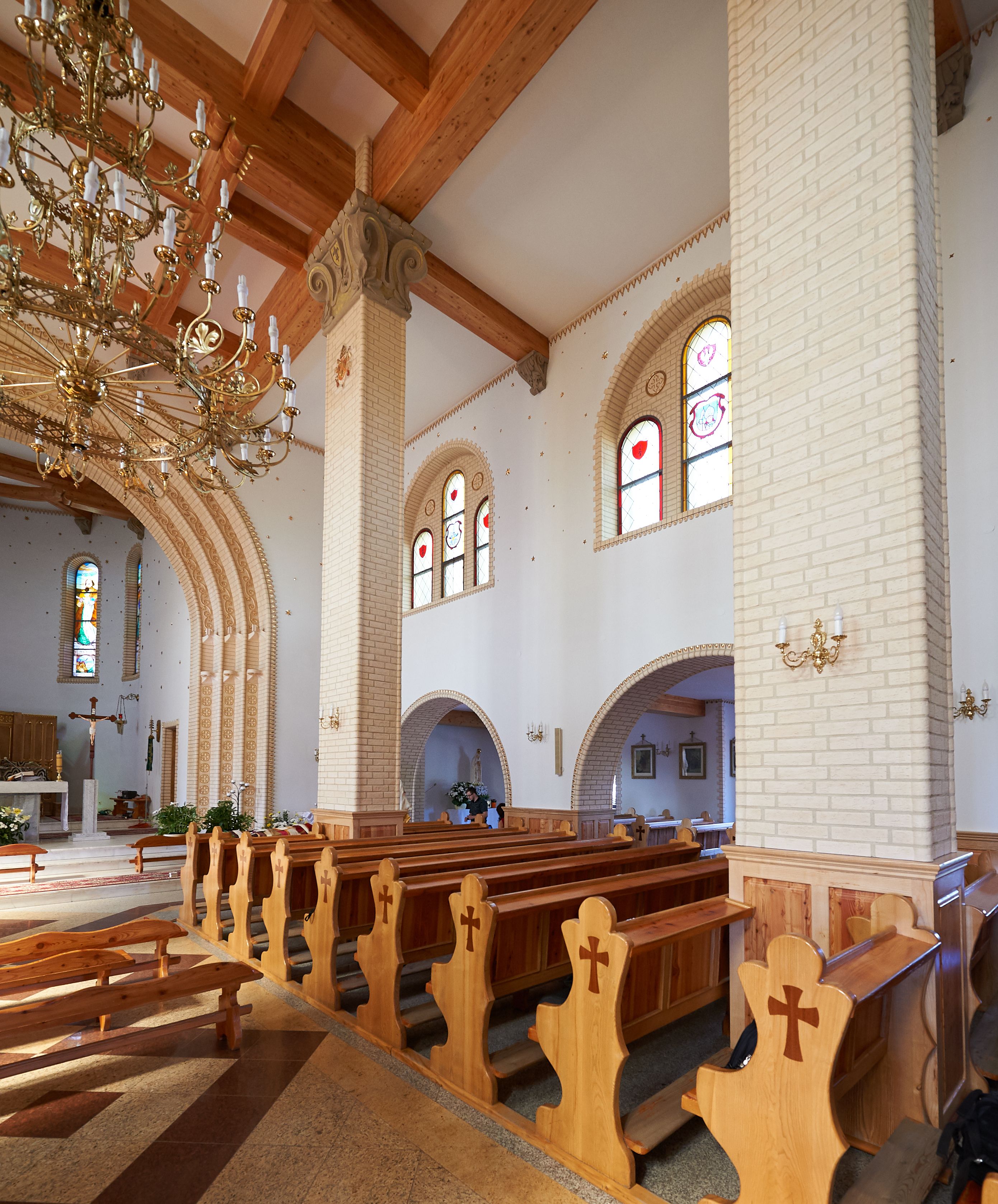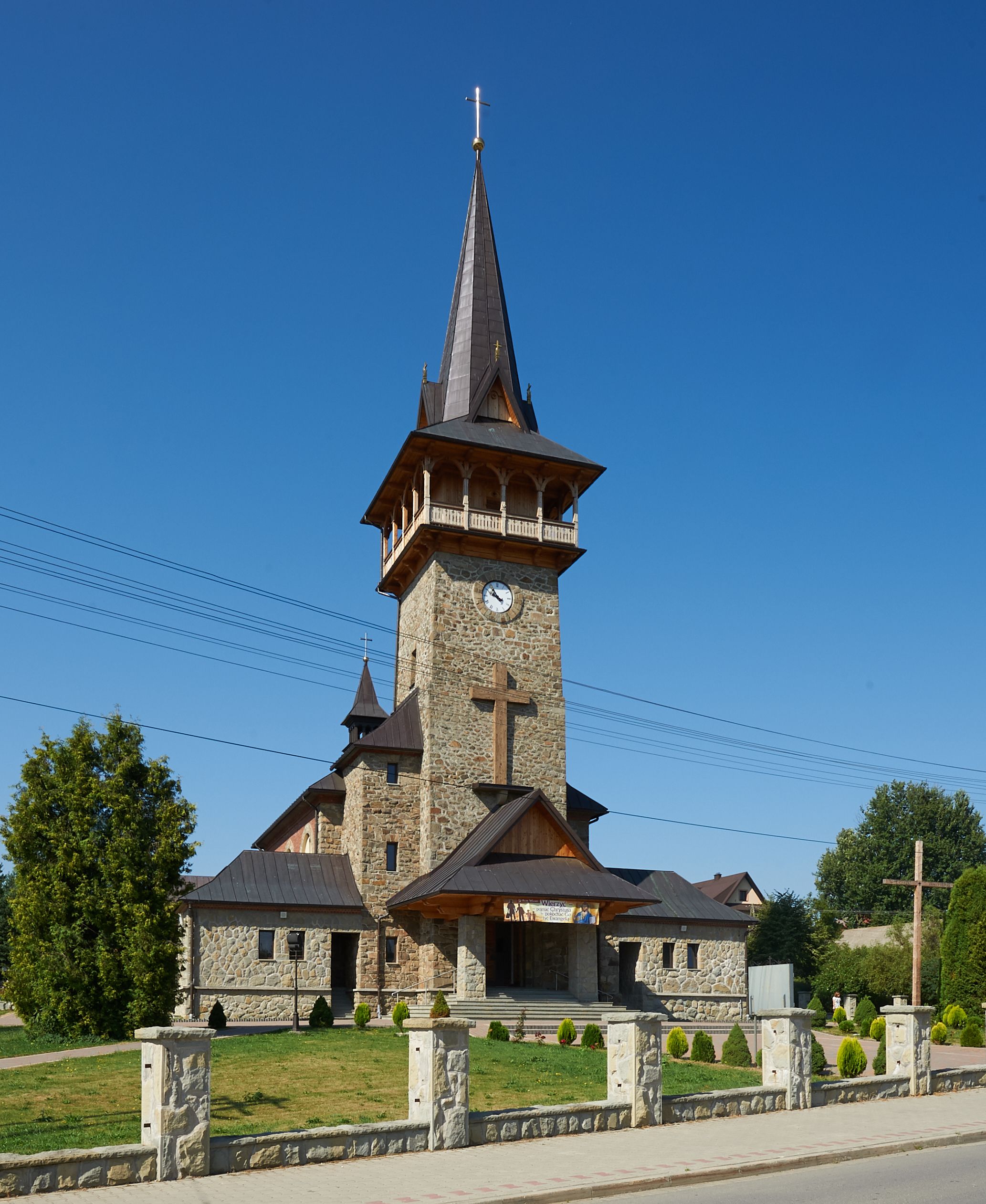 The current St. Stephen's Church in Lipnica Mała is another sacred building located in this place. The first temple was built in 1804 as an extension of the 18th century chapel. The parish in Lipnica Mała was founded in 1919. In the early 1930s, the idea of building a new church was taken. The design was made by Cracovian architect, Franciszek Mączyński. The foundations of the church were erected in 1933, the construction of the chancel and the main nave was completed in 1936, while the construction of the church tower was completed in 1939. In 1942, the building was consecrated by father Józef Slanicay – a delegate of the Spiš Chapter's bishop. In the 1990s, on the initiative of father Leśniak, the tower was rebuilt and the church was extended by adding side enaves. The project of extending the temple was designed by architect Eugeniusz Gryglak, while the reconstruction of the tower was carried out according to the design of professor Witold Cęckiewicz. The construction works were carried out in the years 1994–1999. In 2008, local artists – Magdalena and Marian Smreczak – created the high altar. In 2014, new stained glass windows were installed by Dariusz and Agata Loga. The consecration of the extended and renovated church in Lipnica Mała took place on May 21, 2016. The church was consecrated by cardinal Stanisław Dziwisz.