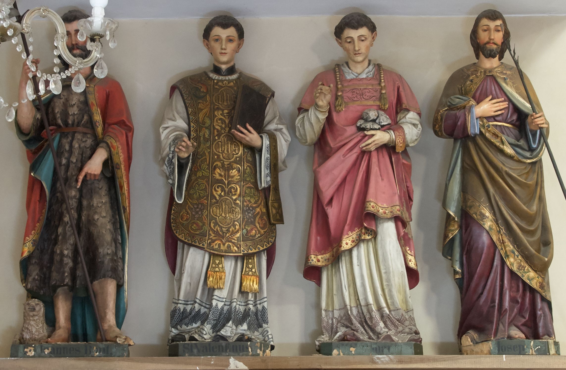 The authorship of the 20th-century statue of Saint Valentine, which is one of four sculptures of the same origin in the church, is unknown. Living in ancient Rome, the holy bishop was endowed with the skill of conversion and performed the miracle of restoring eyesight. He called Christ the "true light." Despite the persecution of Christians, he was zealous for his work and therefore died a martyr's death.