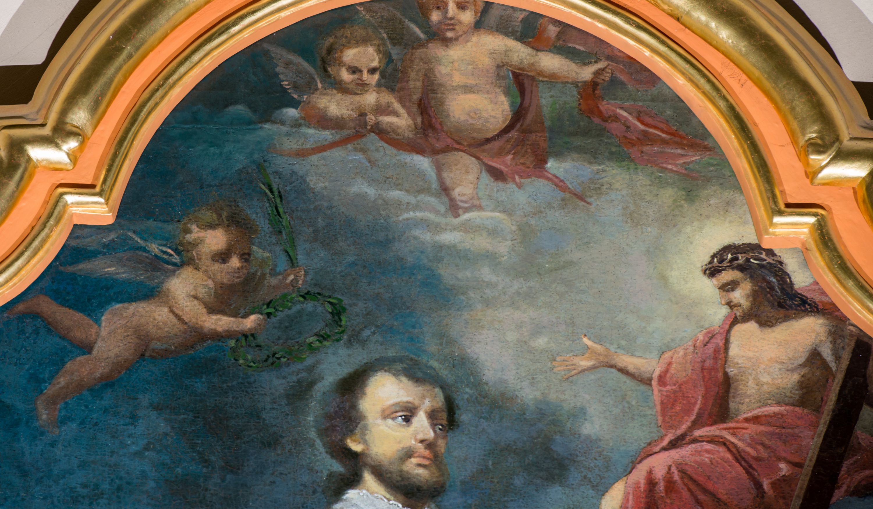 The painting was created in 1824 and comes from a side altar, dismantled after 1952. However, this is not the first image of this saint in the Poręba temple. It is known from the visitation documents (1746) that one of the side altars was under this invocation. In a new church, built in 1762, there was still an altar dedicated to St. Valentine.