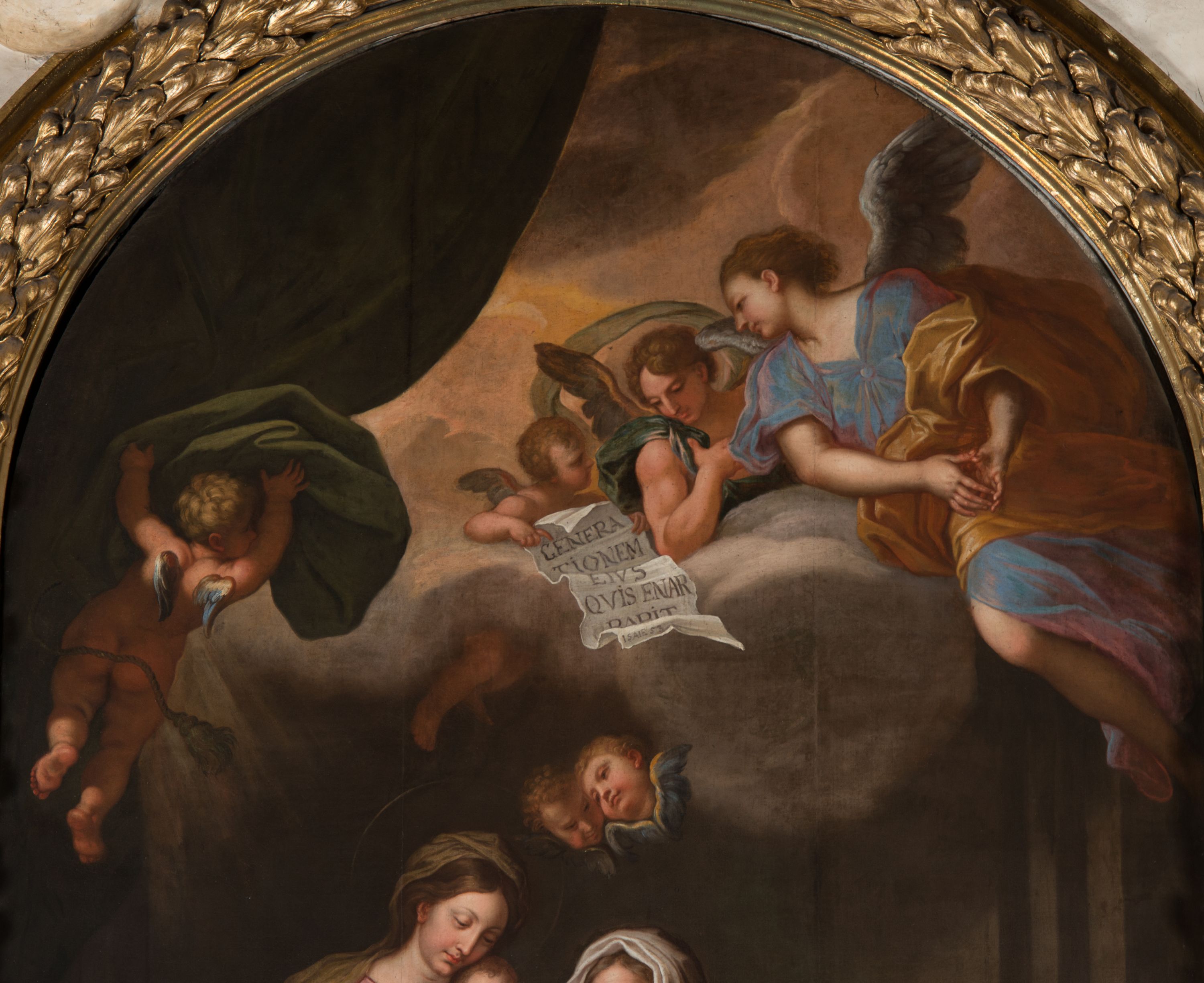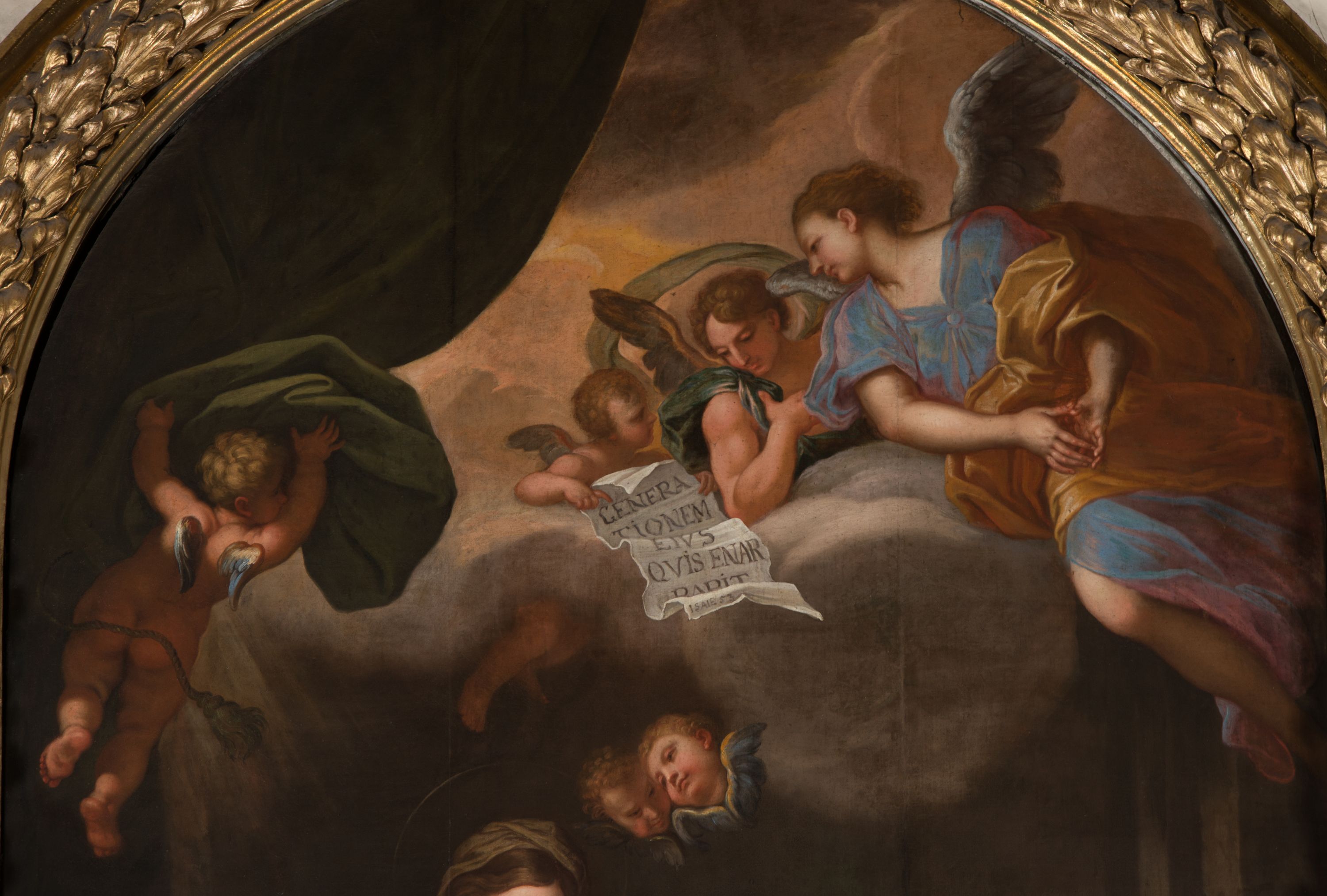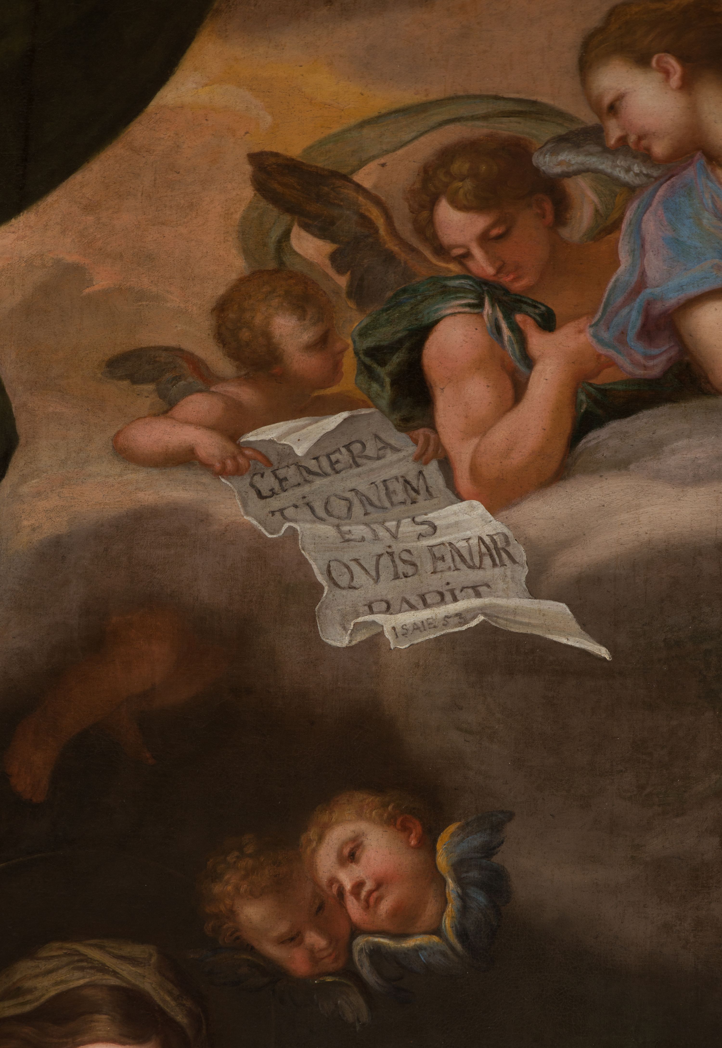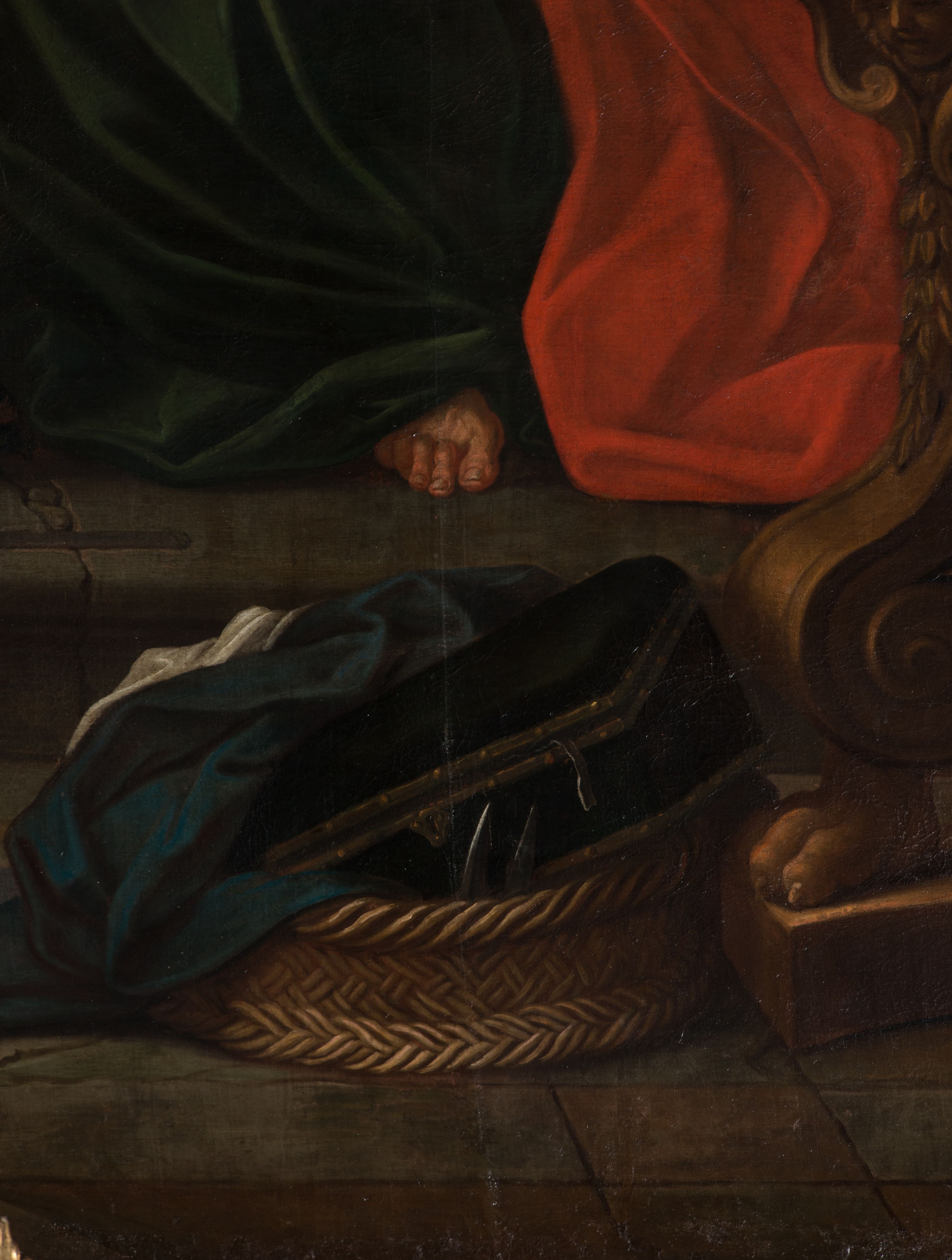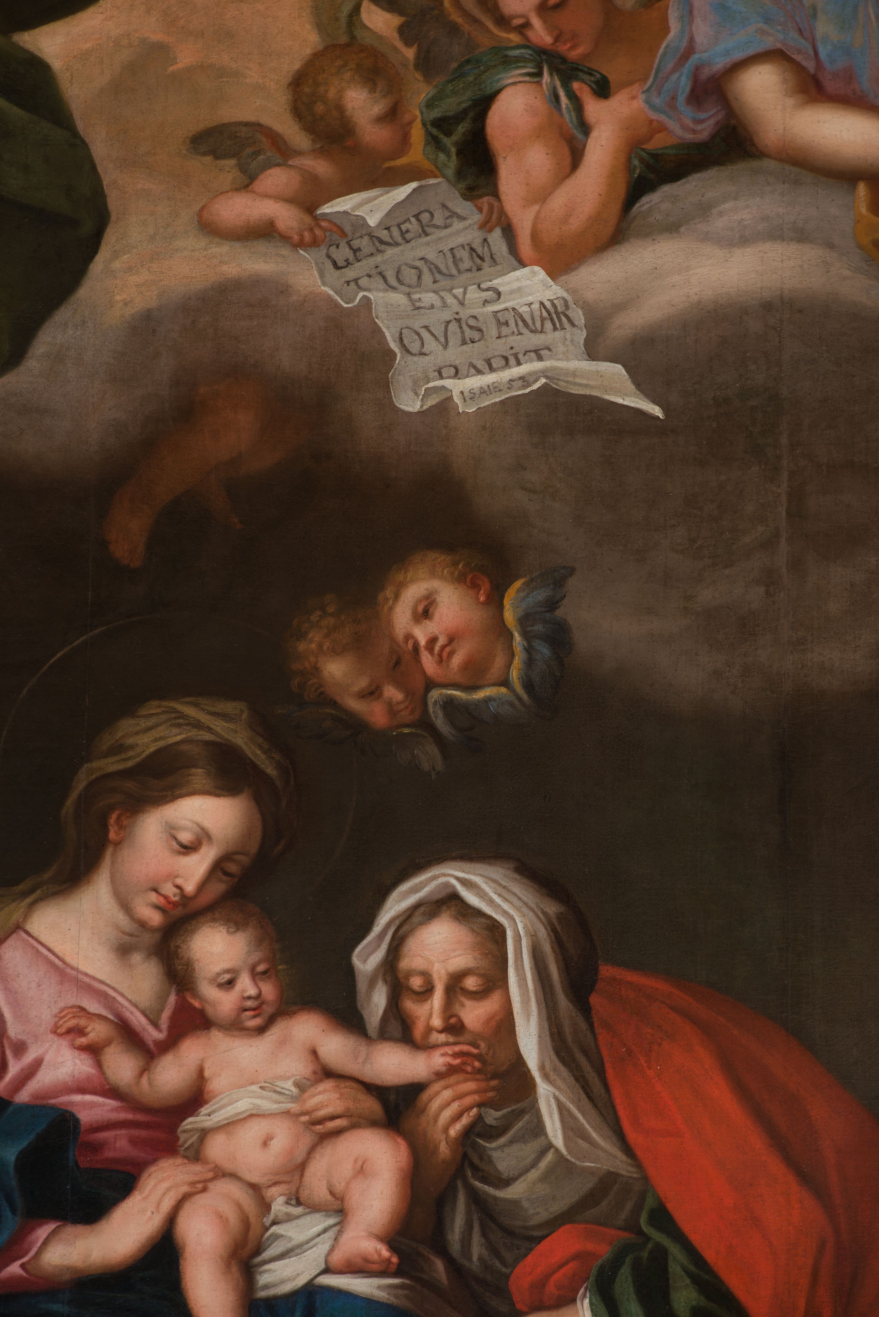 A painting for the high altar in the St. Anne's Church was created by Jerzy Eleuter Szymonowic Siemiginowski, most probably around 1701 (at that time he received part of the remuneration). The painter was inspired by the work of the Italian artist Carlo Maratta at the Santa Maria's Church in Valicella in Rome. The Cracovian painting is undoubtedly one of the most outstanding works in Polish painting and one of the best among Siemiginowski's works, an award winner at the Academy of St. Luke in Rome. It is distinguished by an individual approach to the subject, an in-depth psychological expression of the character, sophisticated colour scheme, strong chiaroscuro and a naturalistic approach to still life.