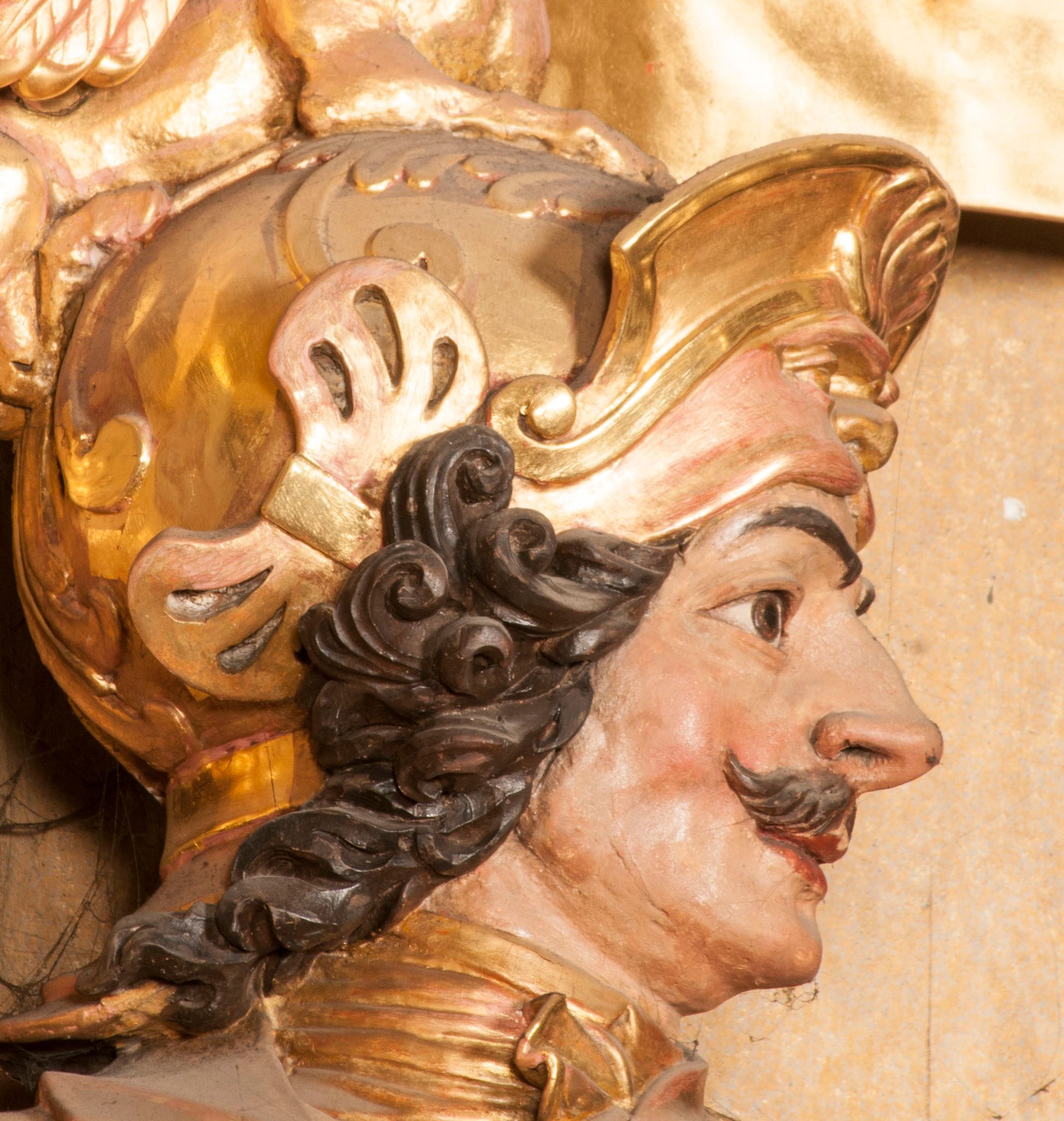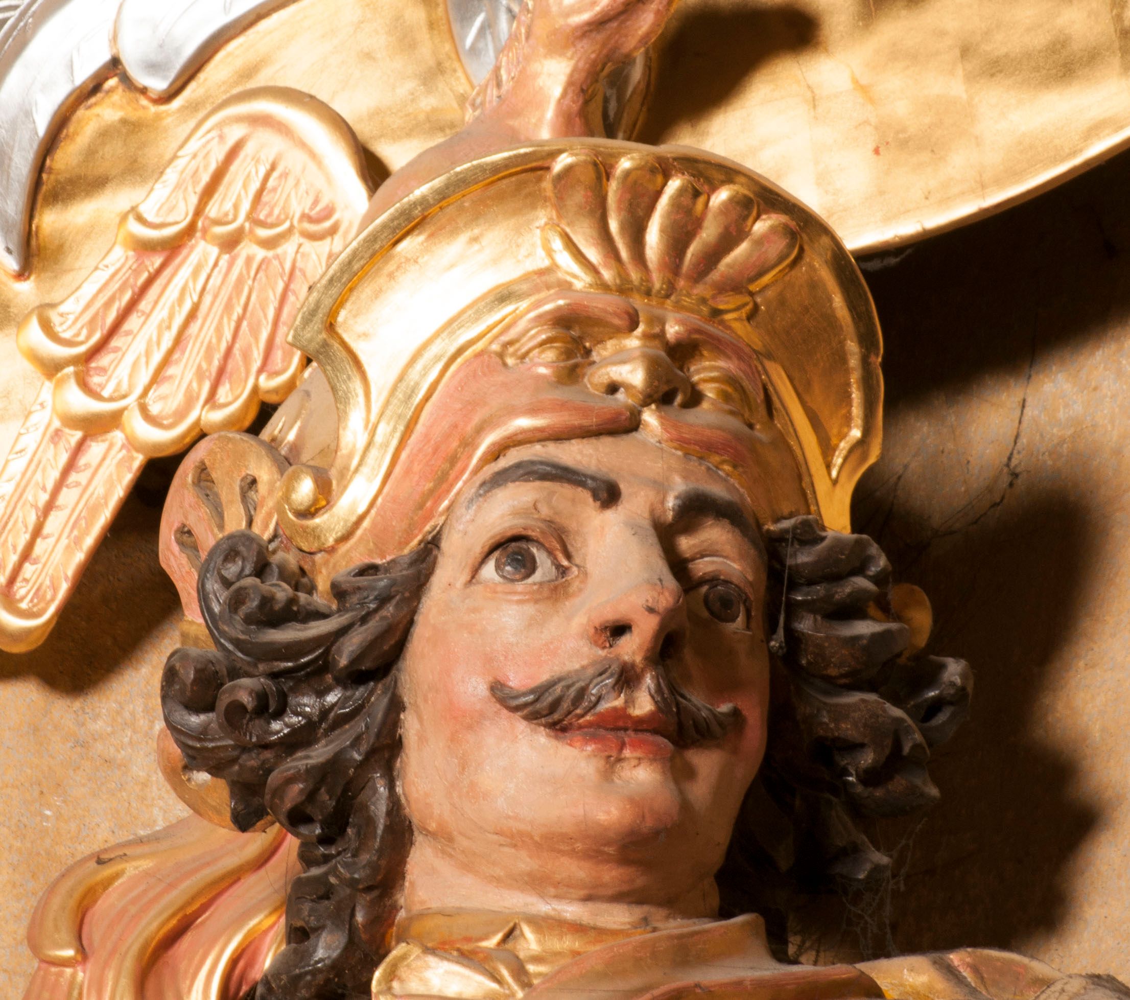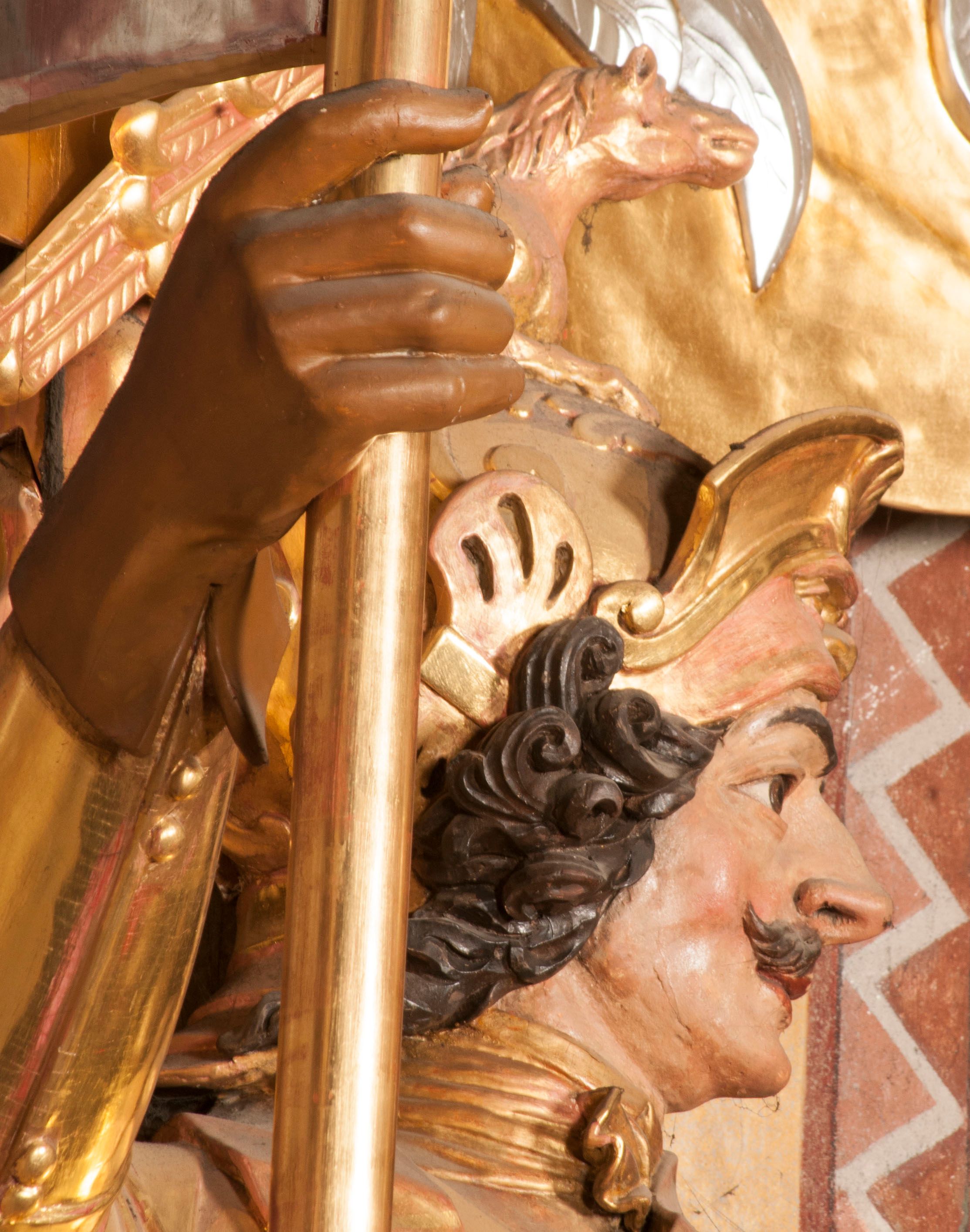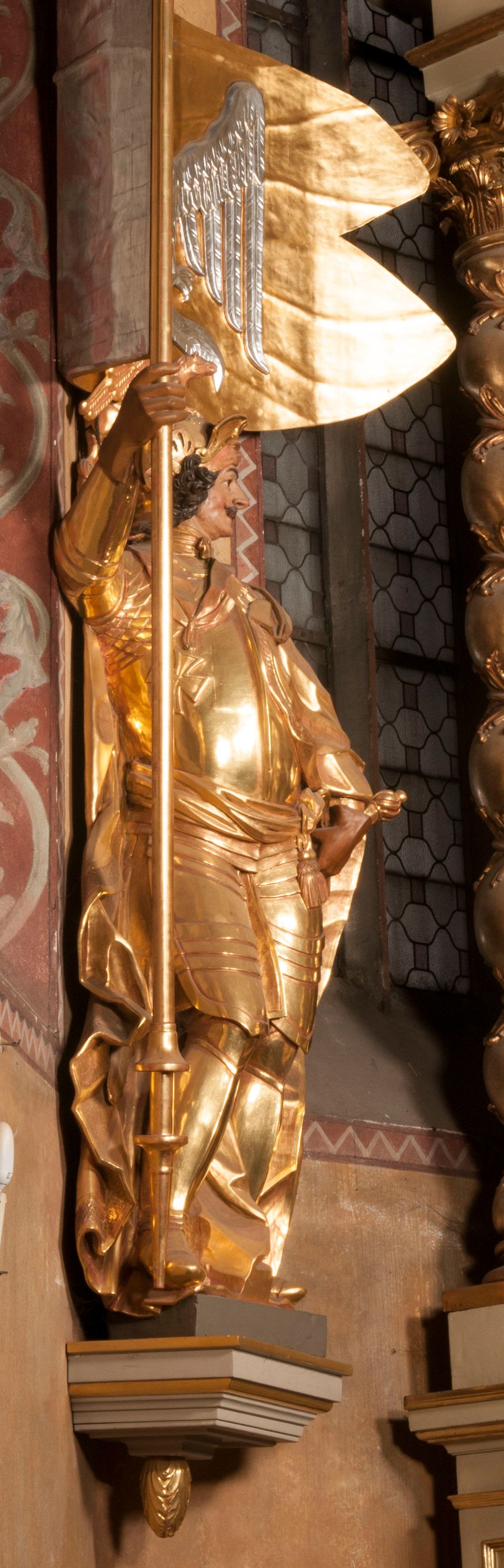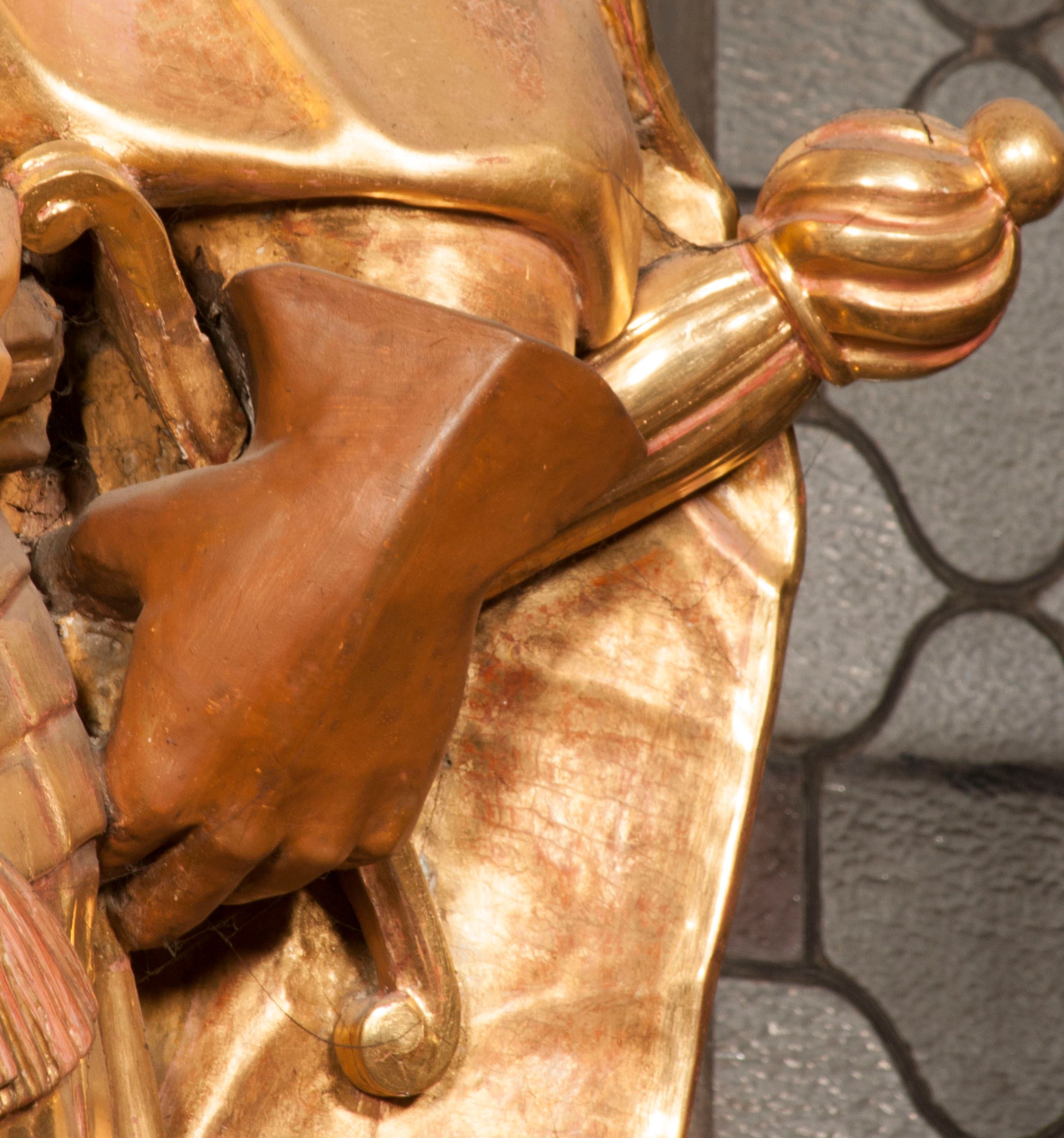 The figures of St. Wenceslaus and St. Florian were created in the fourth quarter of the 18th century. They were then re-mounted on both sides of the high altar in Niepołomice. These works are characterised by an incredibly high level of workmanship, which is not characteristic of the works of sculptors operating in Cracow at that time. Wenceslaus was a historical figure. He is considered a saint and martyr. He was the son of the Czech prince Vratislav I, after the death of whom he assumed the throne. He died in the church in Stary Bolesławiec at the hands of the emissaries of his brother, Boleslaw.