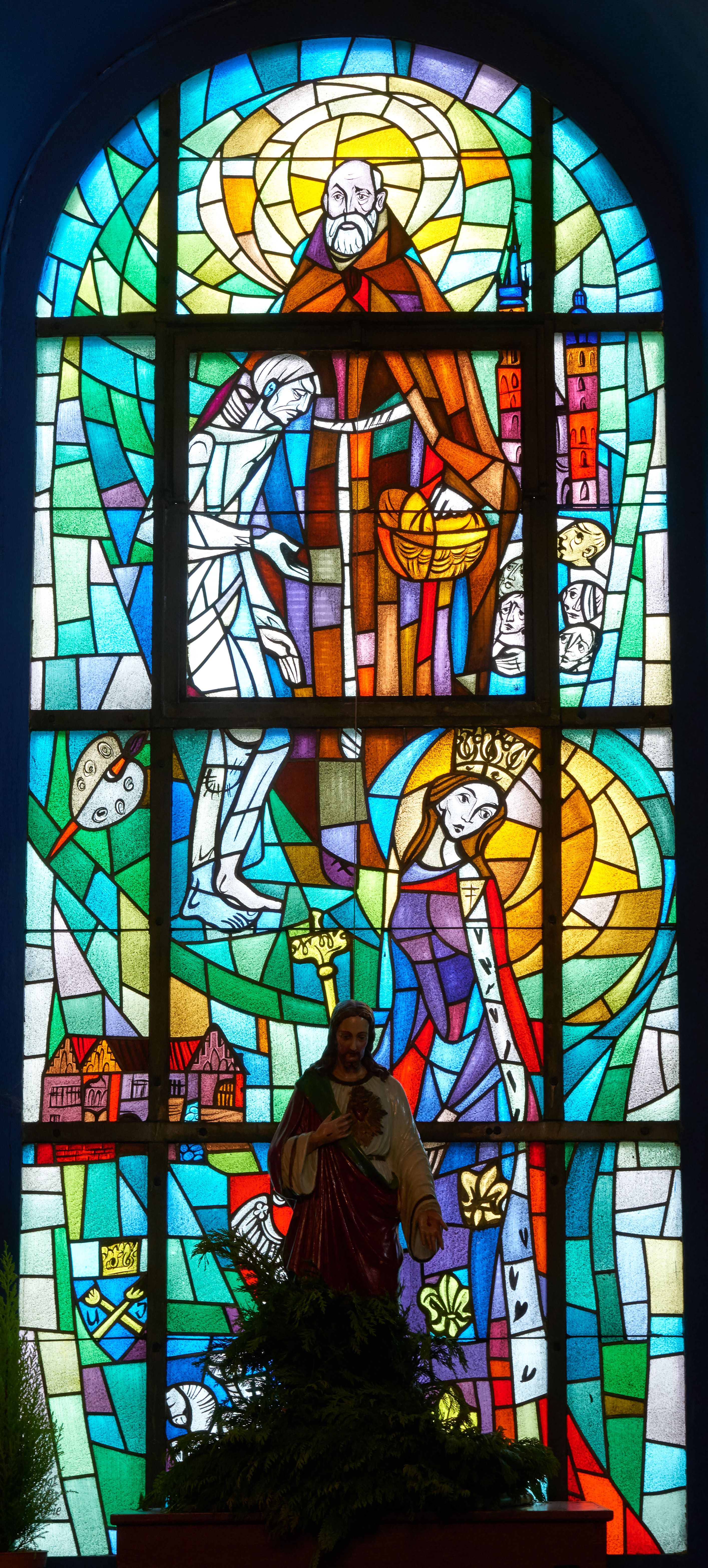 The stained glass window with images of St. Jadwiga of Poland and Friar Albert (Adam Chmielewski) was funded by Janina and Józef Mosór in the 20th century (after 1938).