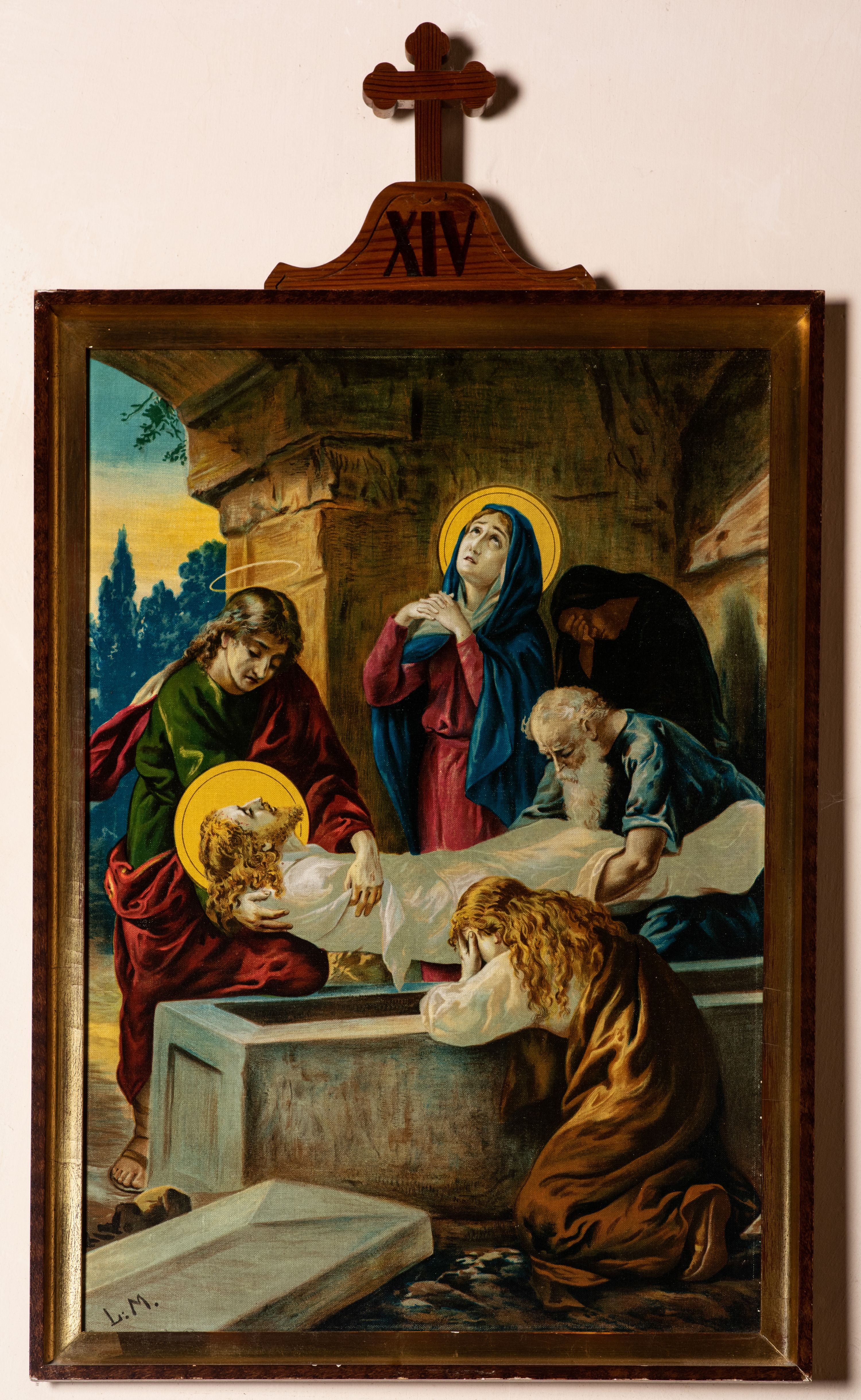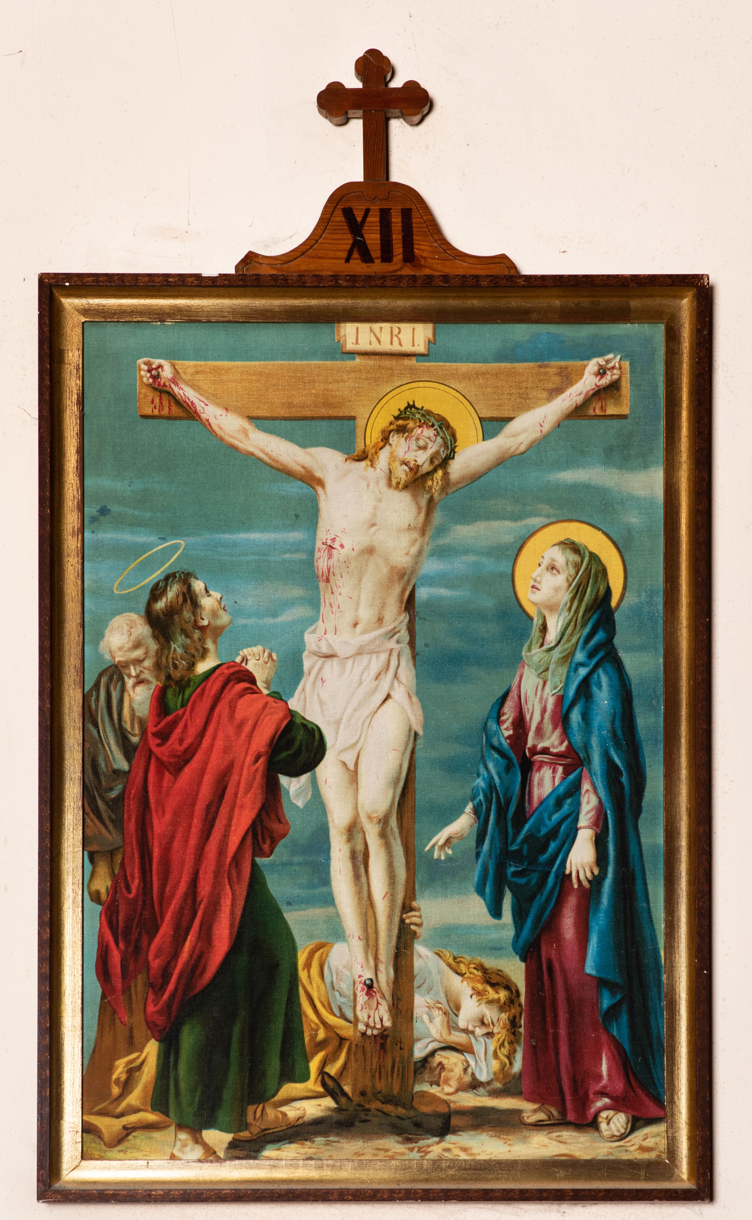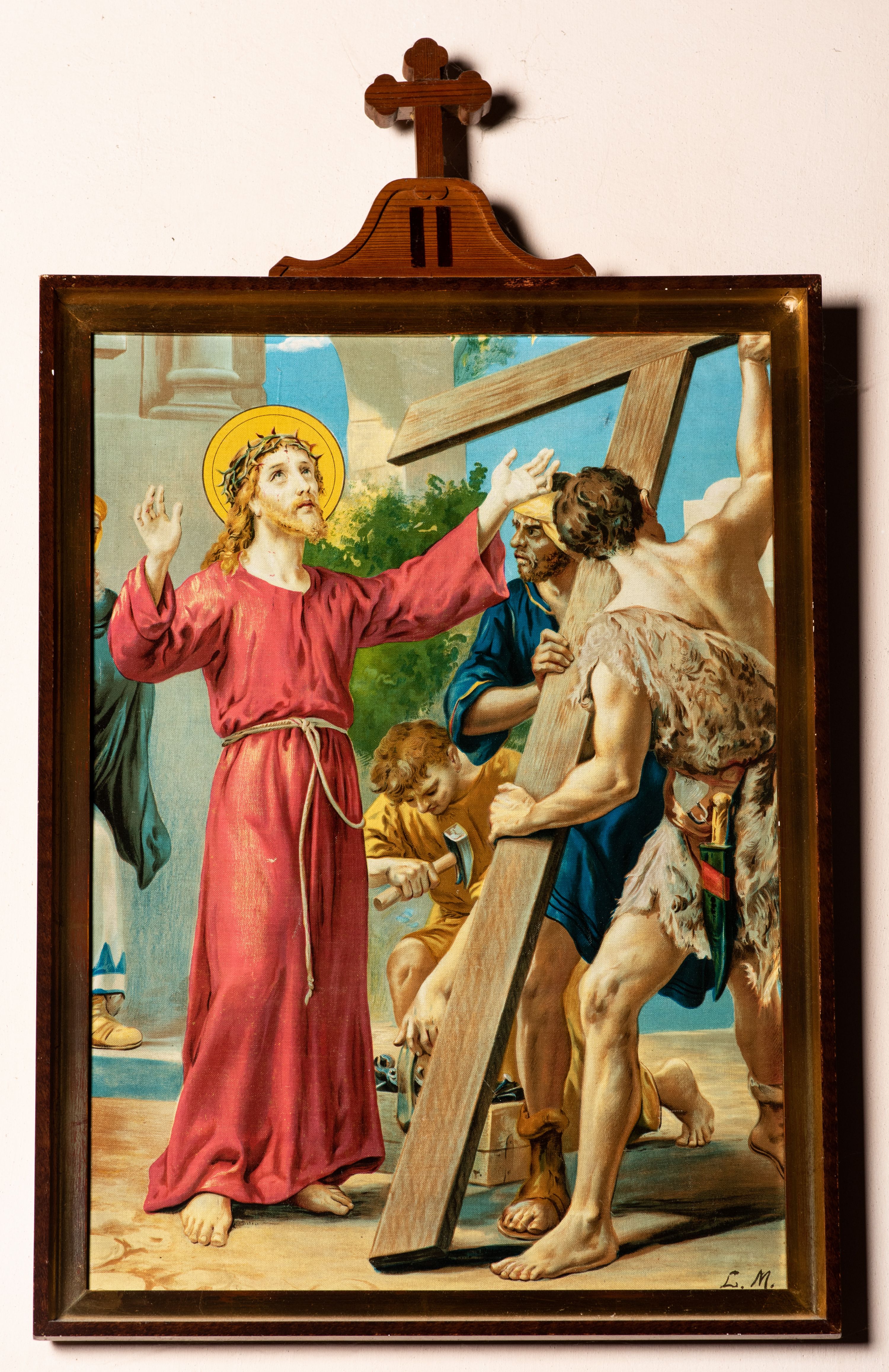 The Stations of the Cross were placed in yhe temple in Bachowice in 1929 from the foundation of parishioners. Compositions based on paintings of the Italian painter and author of religious frescoes - Luigi Morgari were reproduced in chromolithograph technique popular in the 19th and early 20th centuries.