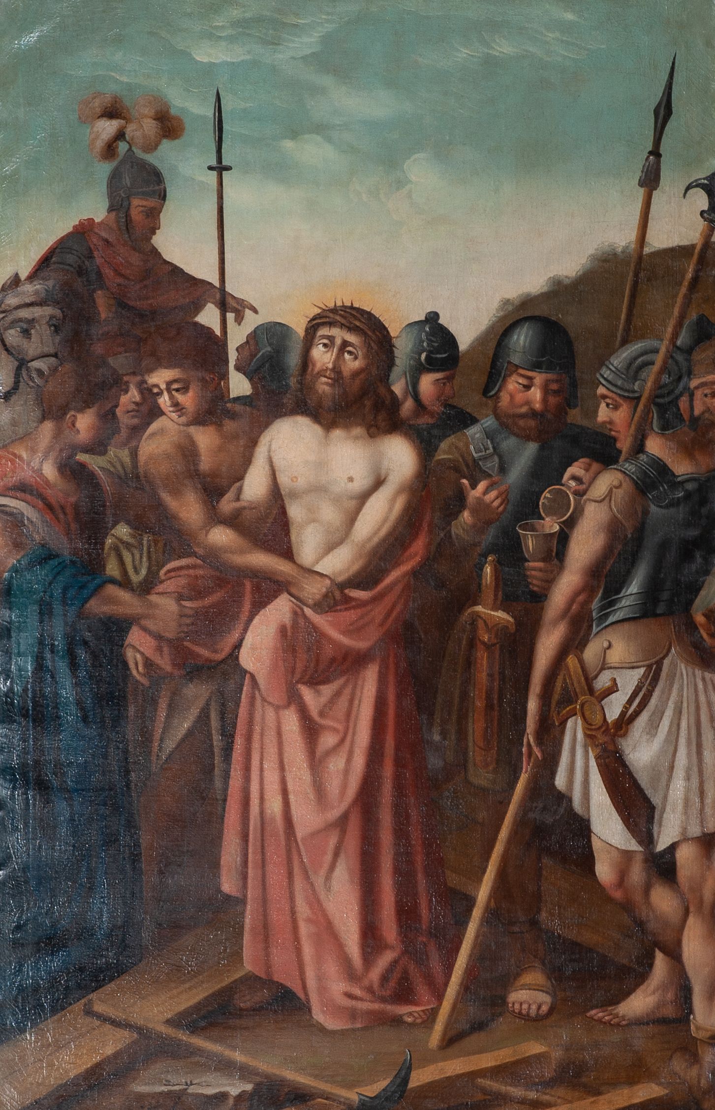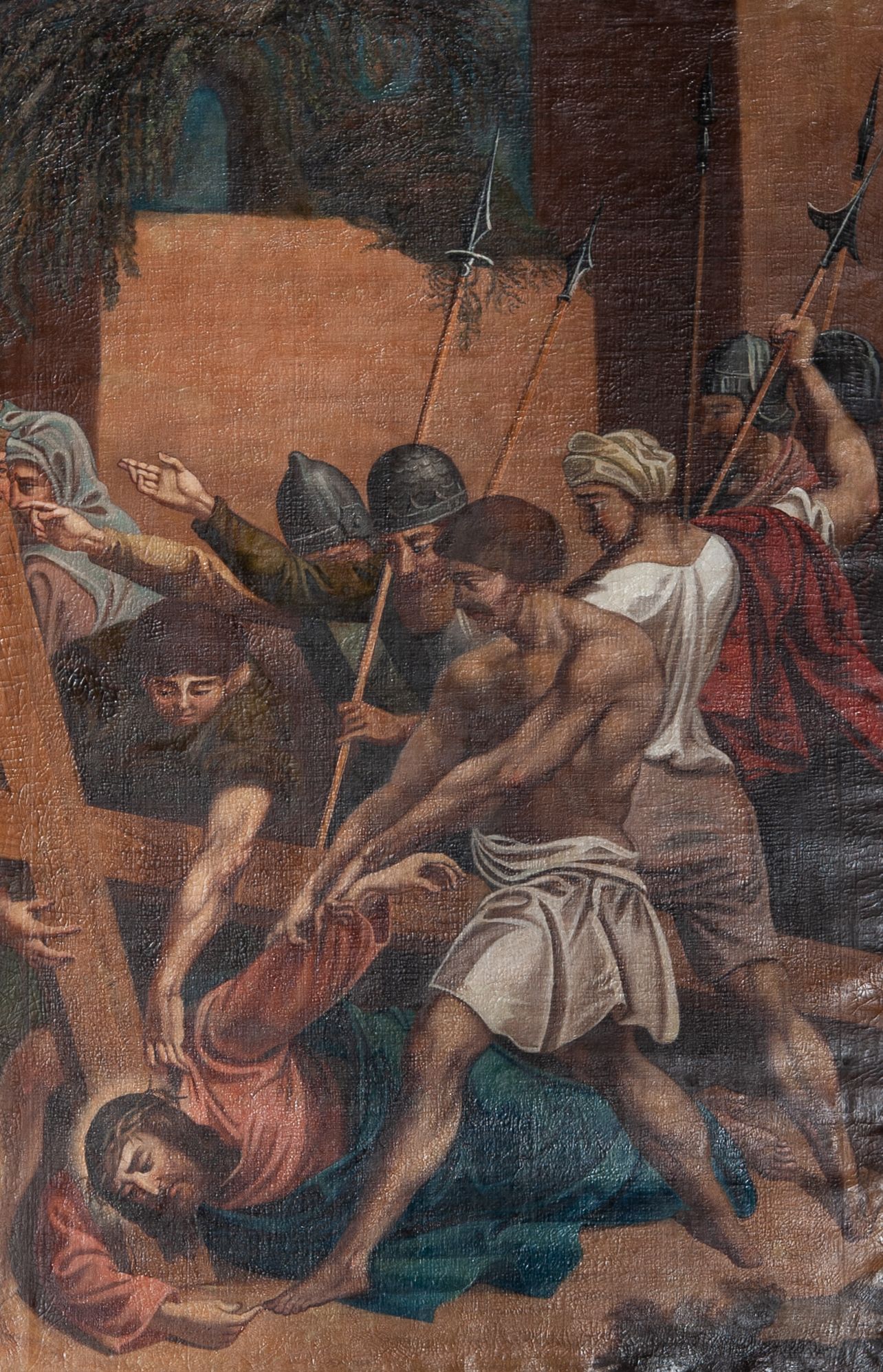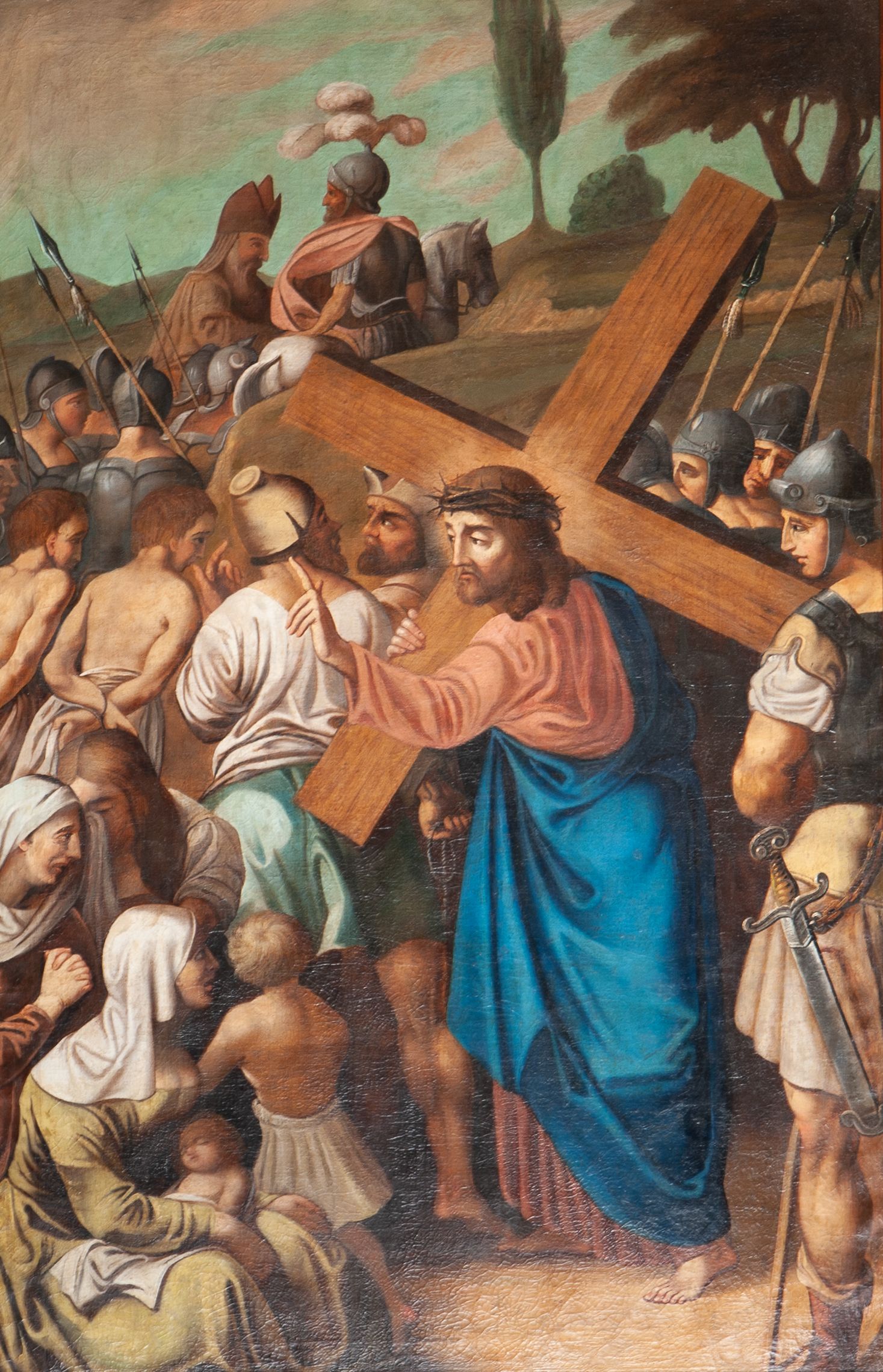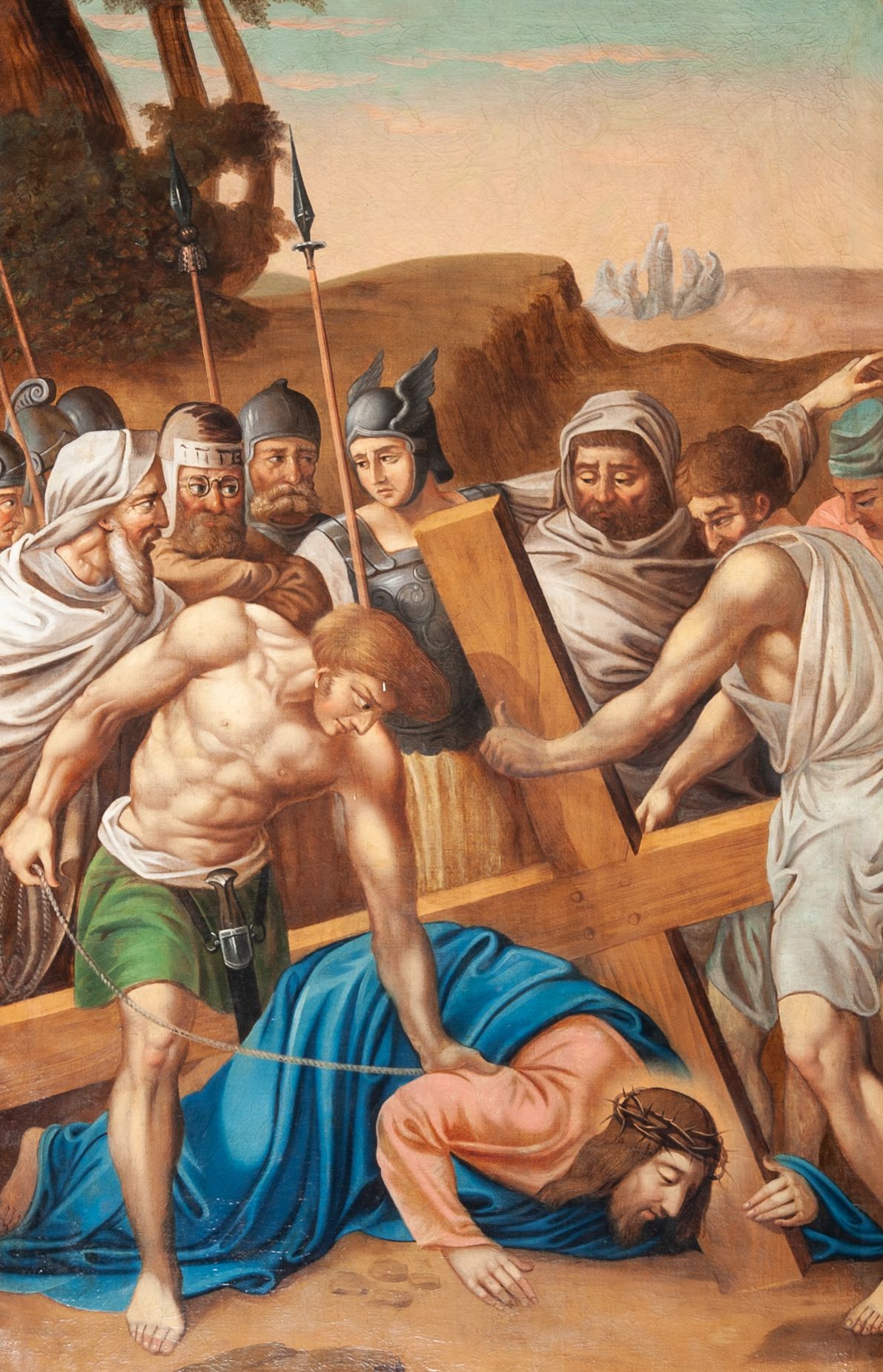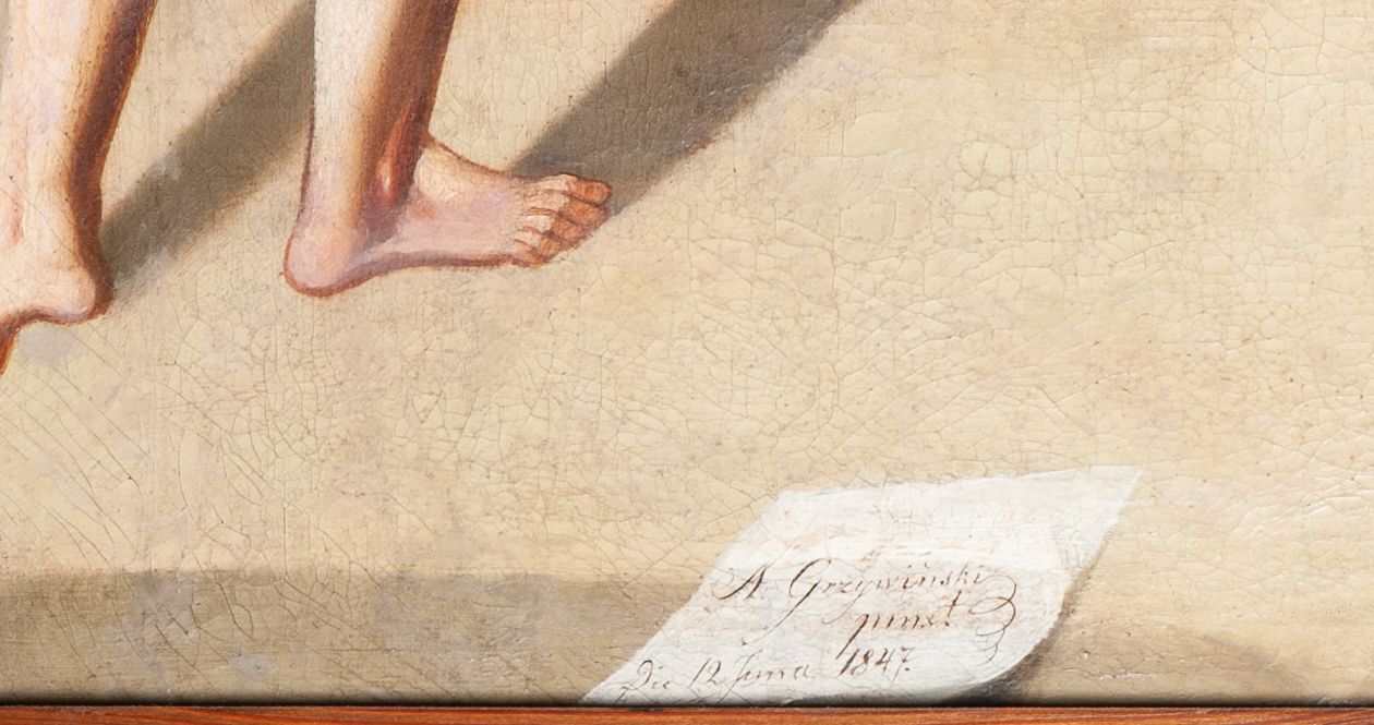 Stations of the Cross constitute a set of representations commemorating the Christ's walk with the cross through the streets of Jerusalem, from Pilate's praetorium through Golgotha, until placing him in the tomb. Stations of the Cross was a regular church liturgy, practiced from the times of the Crusades to reflect 14 stations in Jerusalem. The paintings were created in the oil painting technique in 1847. The paintings were created by Wojciech Grzywiński, a painter whose numerous works are spread all over the region of Lesser Poland.