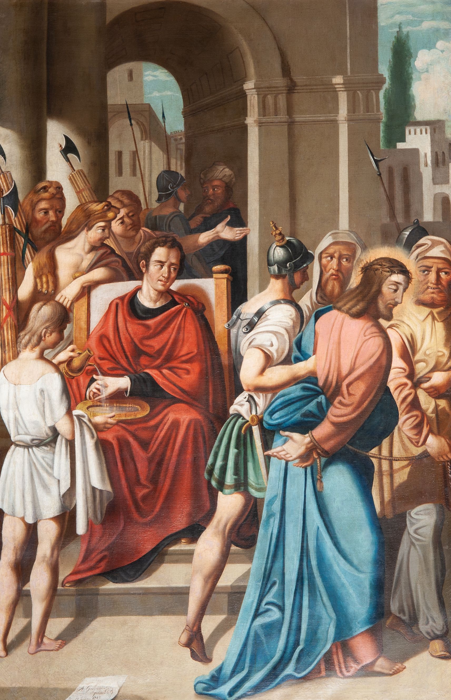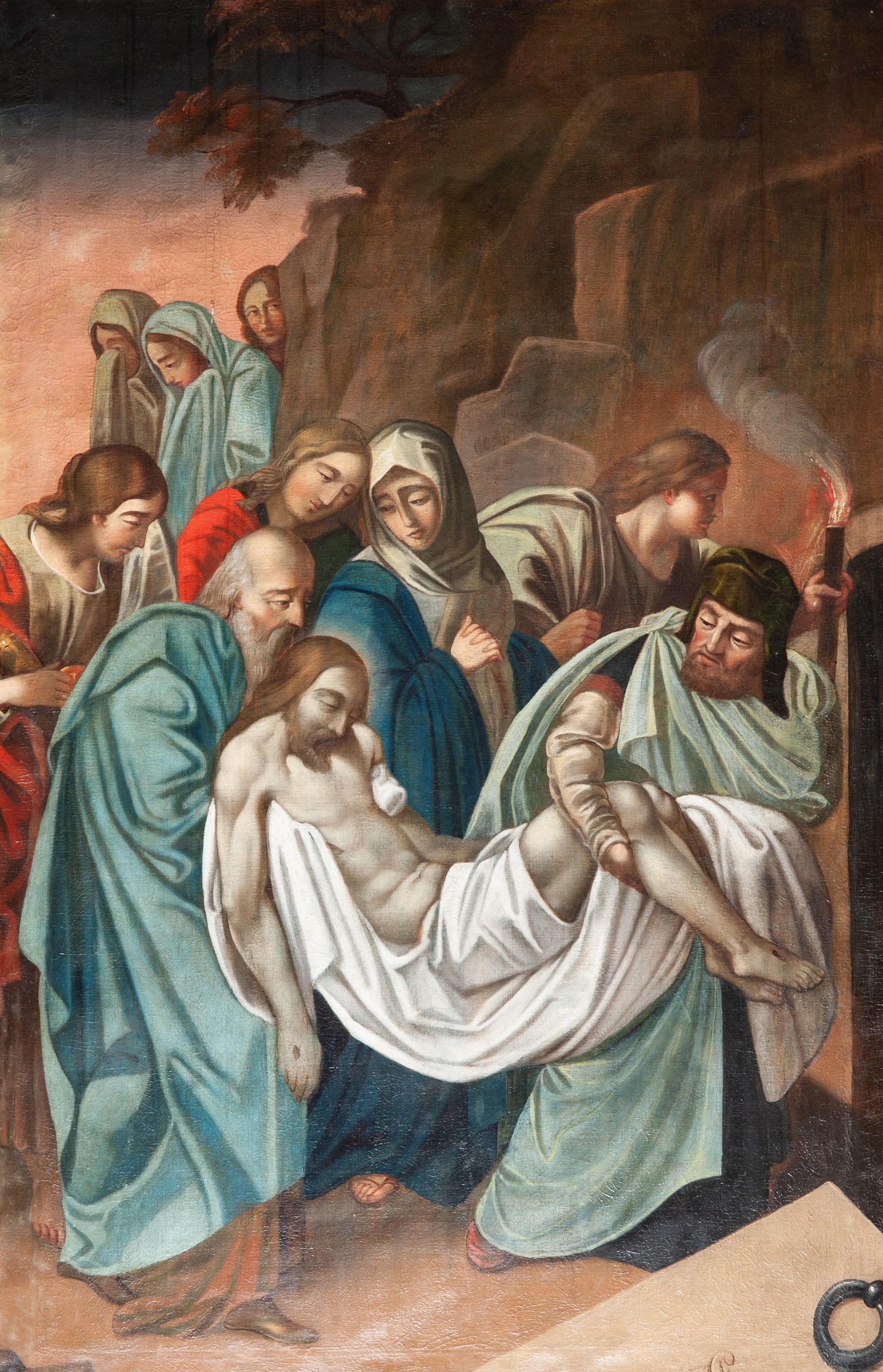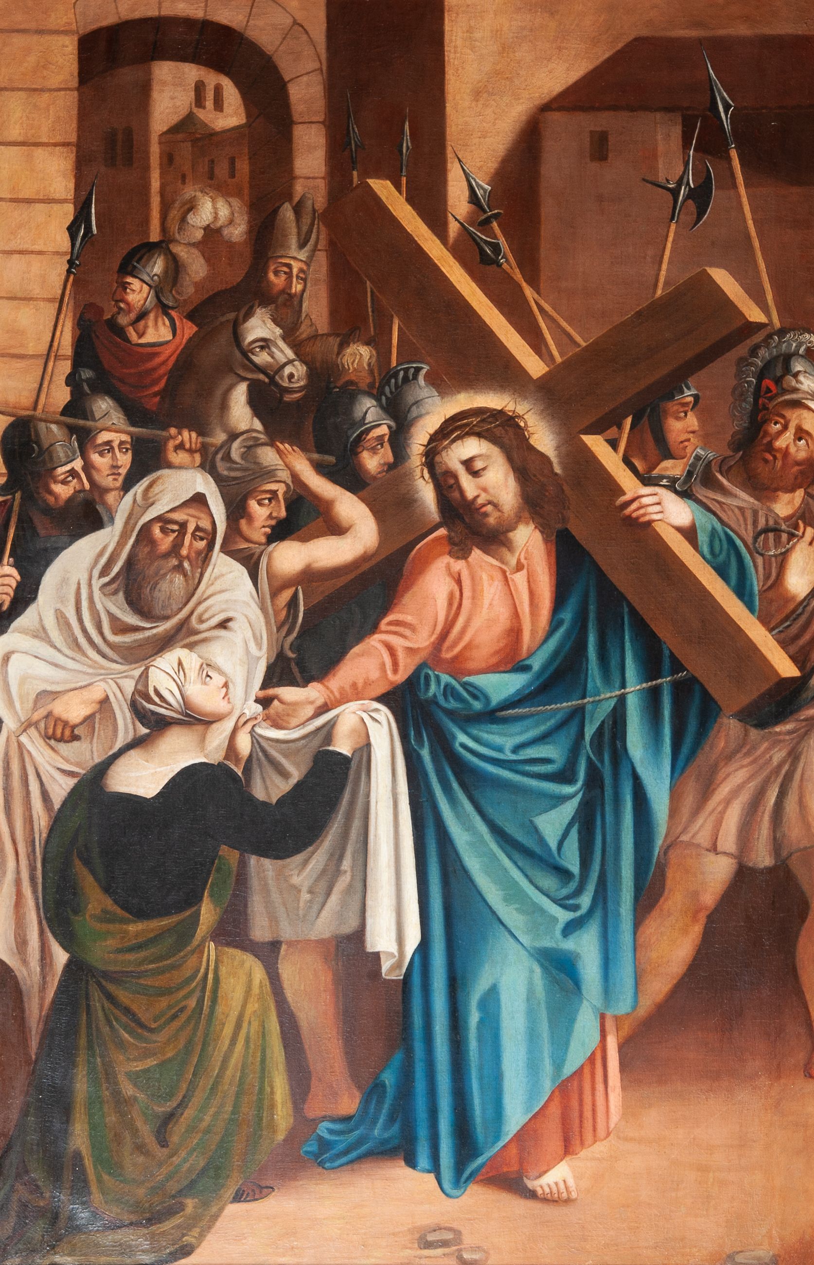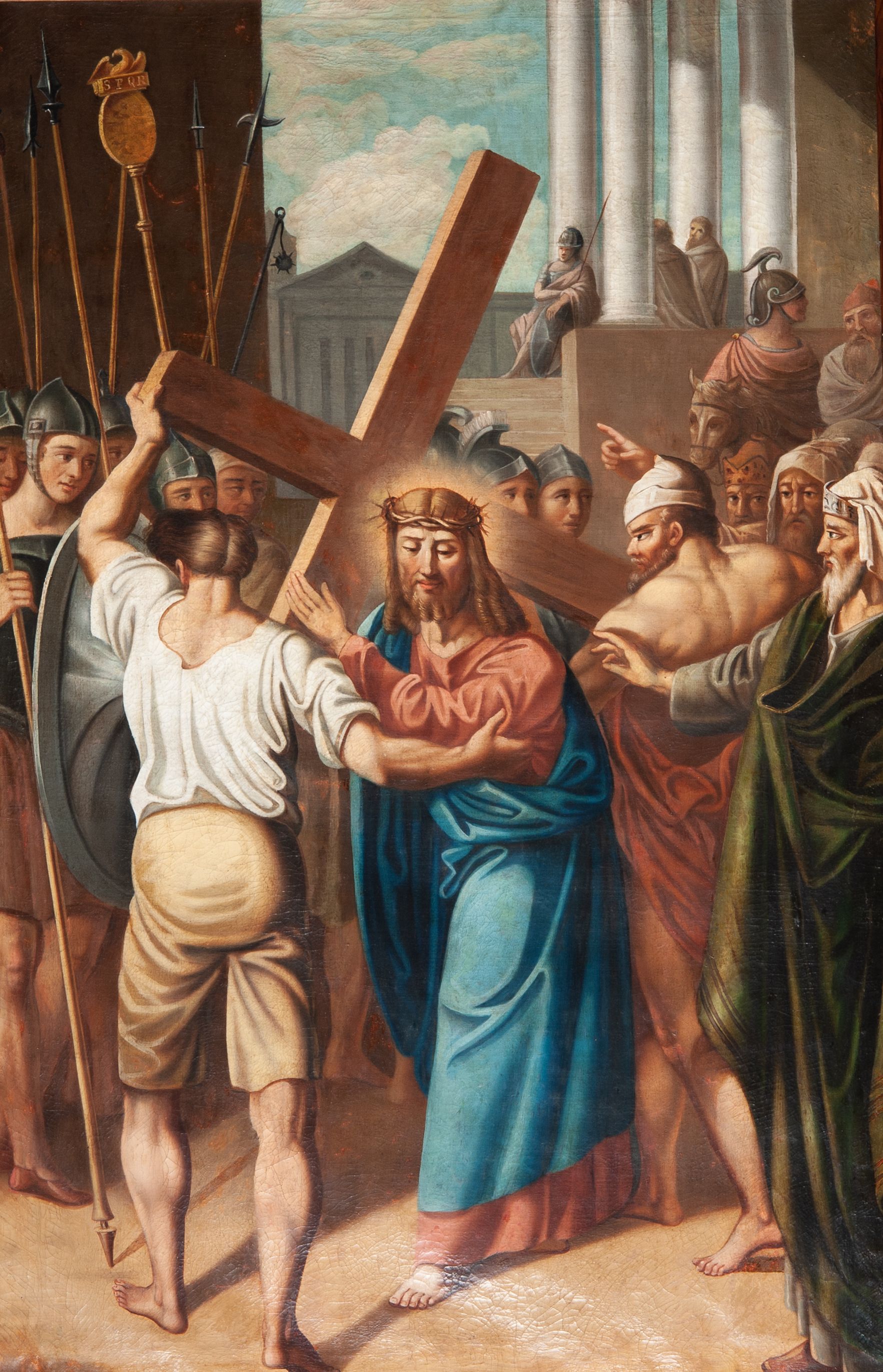 Stations of the Cross constitute a set of representations commemorating the Christ's walk with the cross through the streets of Jerusalem, from Pilate's praetorium through Golgotha, until placing him in the tomb. Stations of the Cross was a regular church liturgy, practiced from the times of the Crusades to reflect 14 stations in Jerusalem. The paintings were created in the oil painting technique in 1847. The paintings were created by Wojciech Grzywiński, a painter whose numerous works are spread all over the region of Lesser Poland.