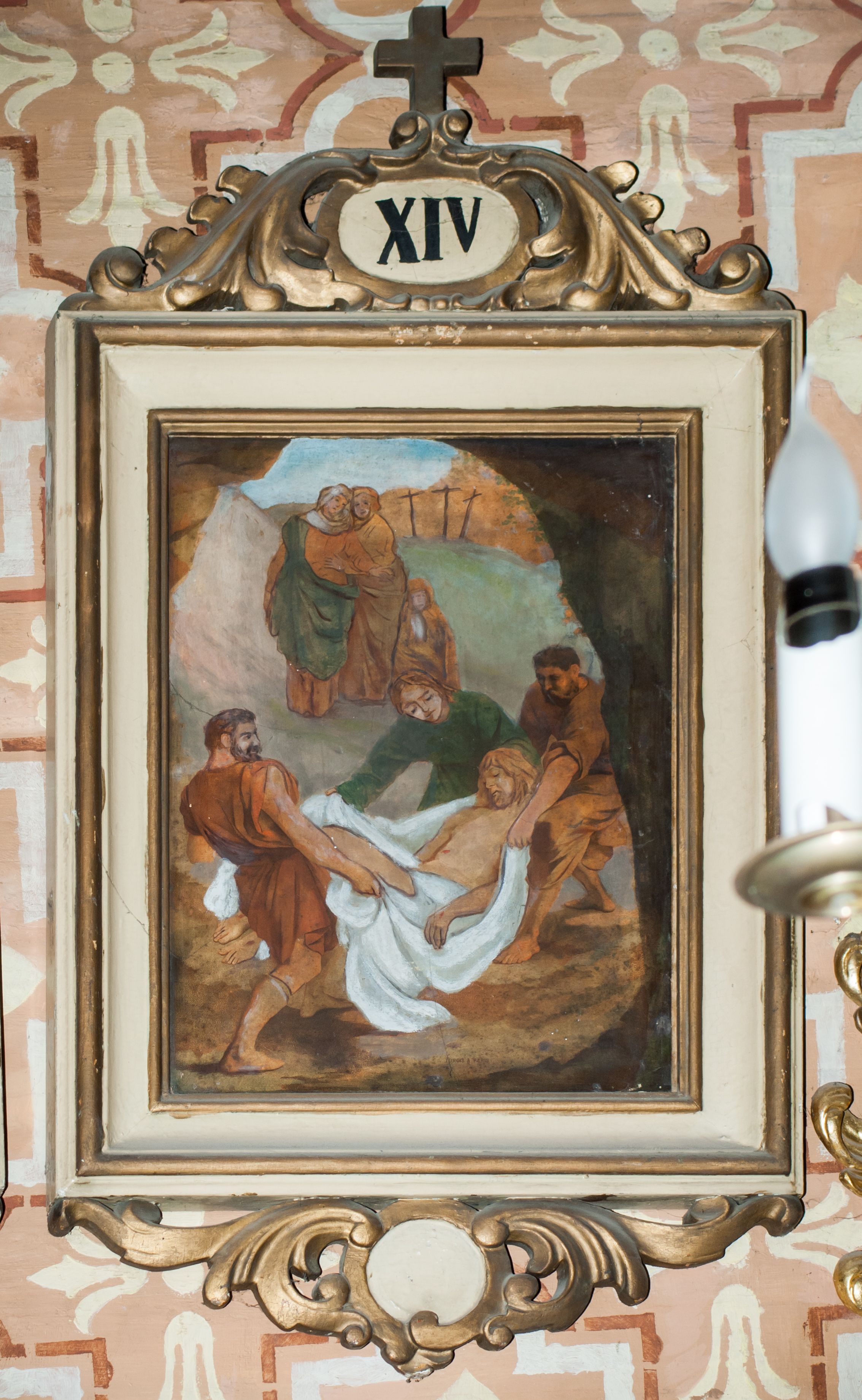The paintings were made in the 19th century by the use of chromolithography technique in the Louis Turgis Le Jeune's workshop in Paris. Turgis was the author of numerous chromolithograph prints, devoted to both secular and religious themes, who began his activity after 1856. Chromolithograph prints are a typical example of mass-produced works of religious art of the second half of the 19th century, devoid of individual features, but impeccably created from the point of view of formal correctness (drawing, composition, colour).