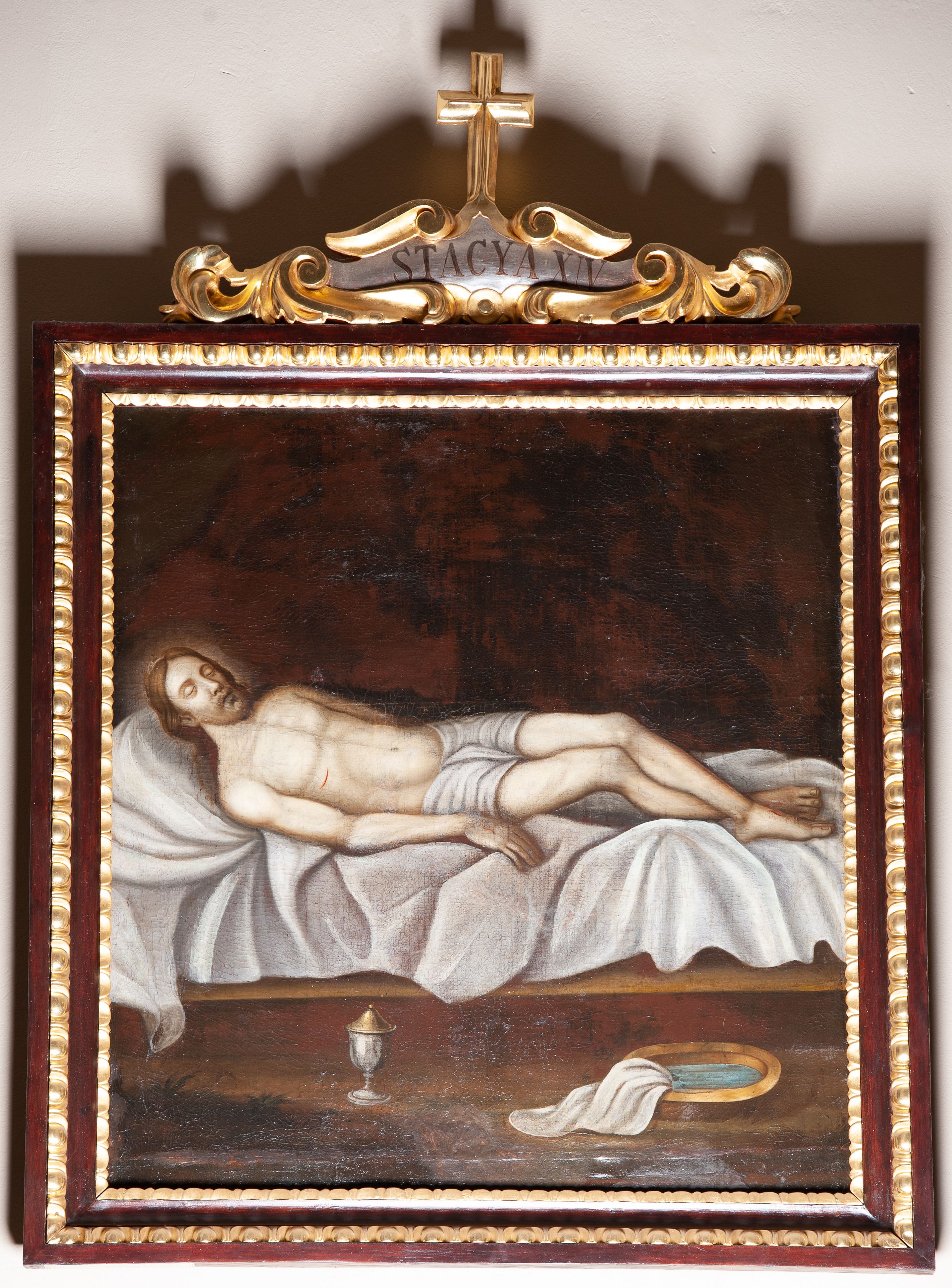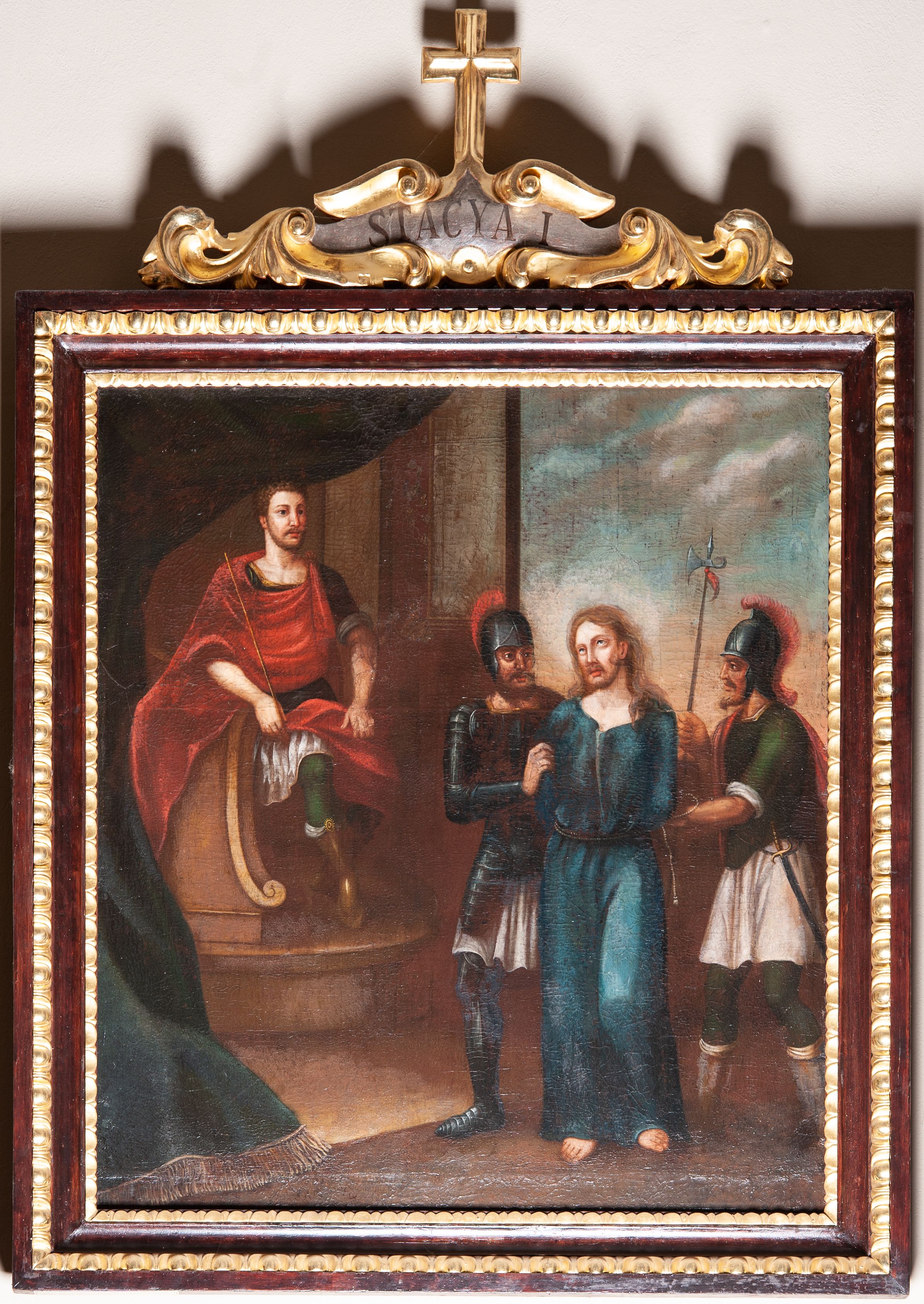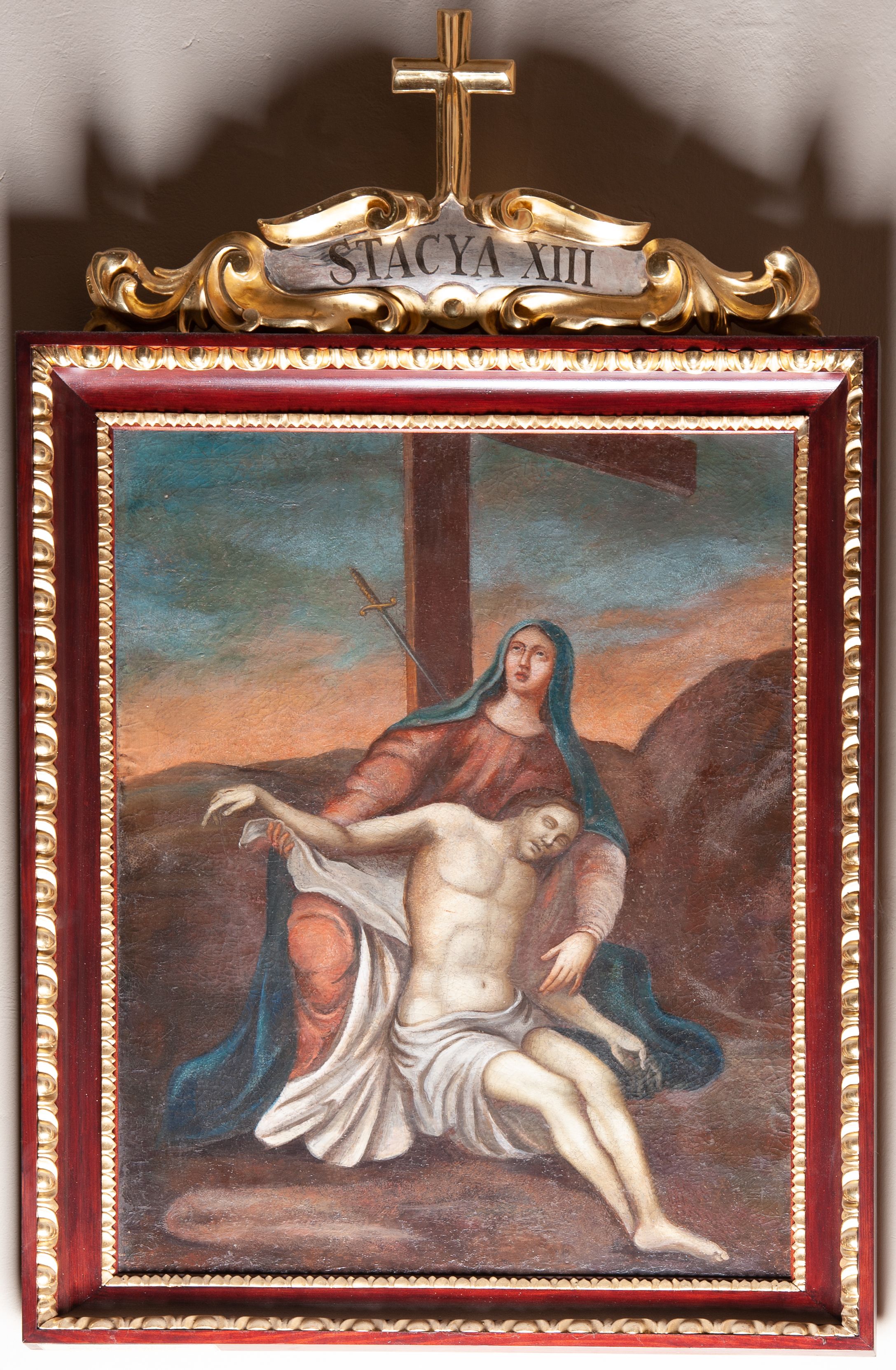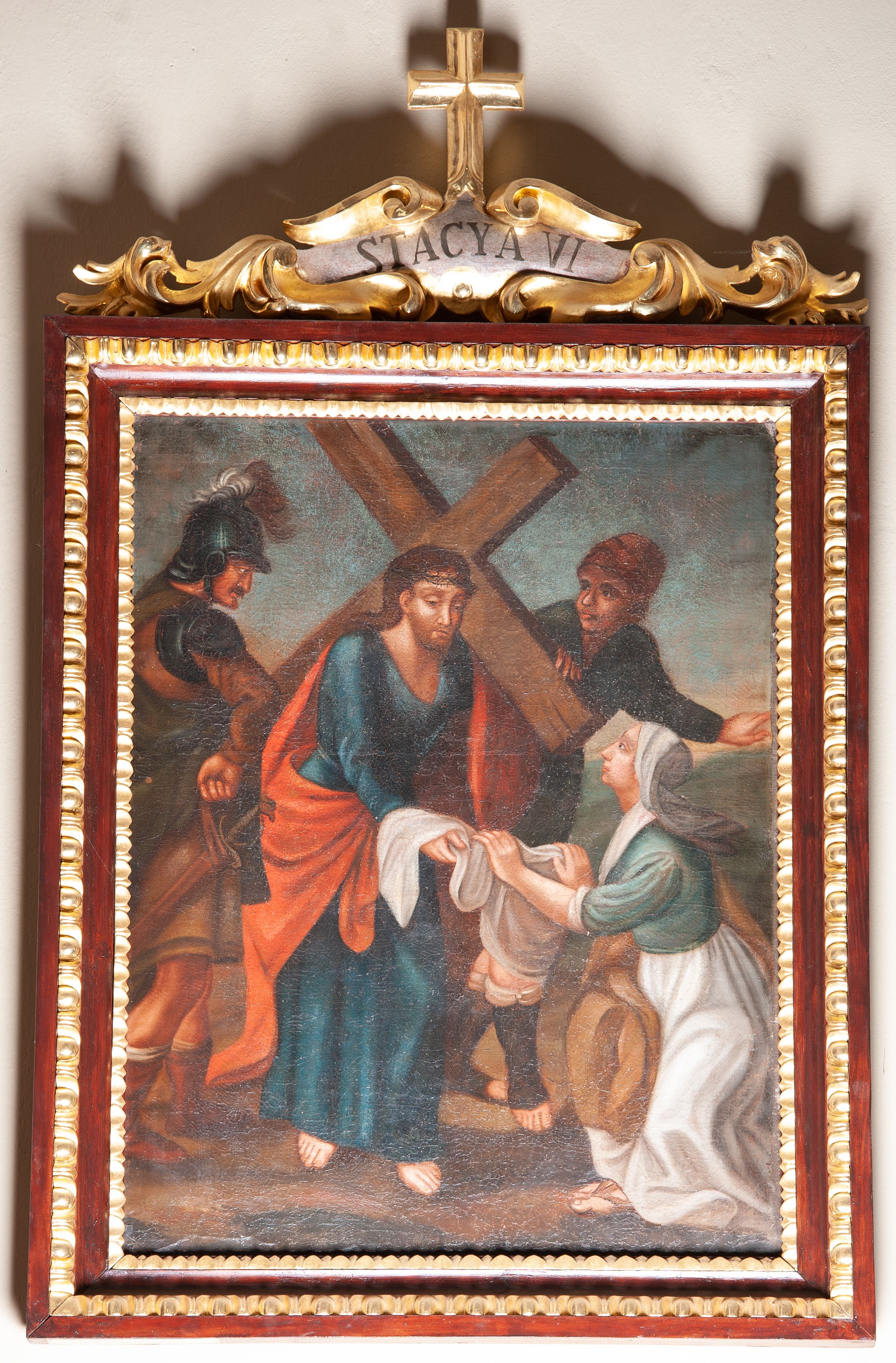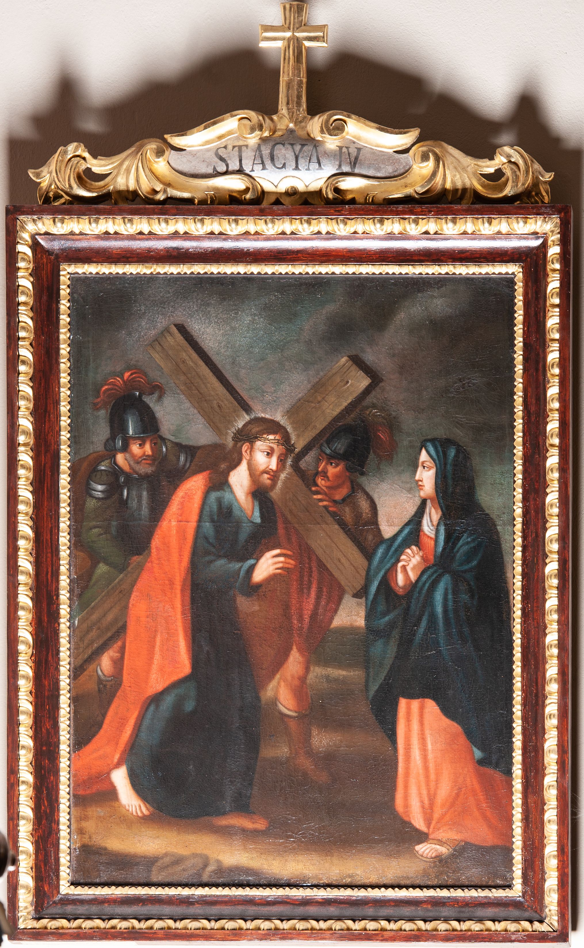 The Stations of the Cross are a set of depictions commemorating Christ's passage down the streets of Jerusalem, from Pilat's praetorium through Calvary, until his laying in the grave. Stations of the Cross was a regular church liturgy, practiced from the times of the Crusades to reflect 14 stations in Jerusalem. The paintings were created in the oil painting technique in the first half of the 19th century. Unfortunately, their authors remains unknown.