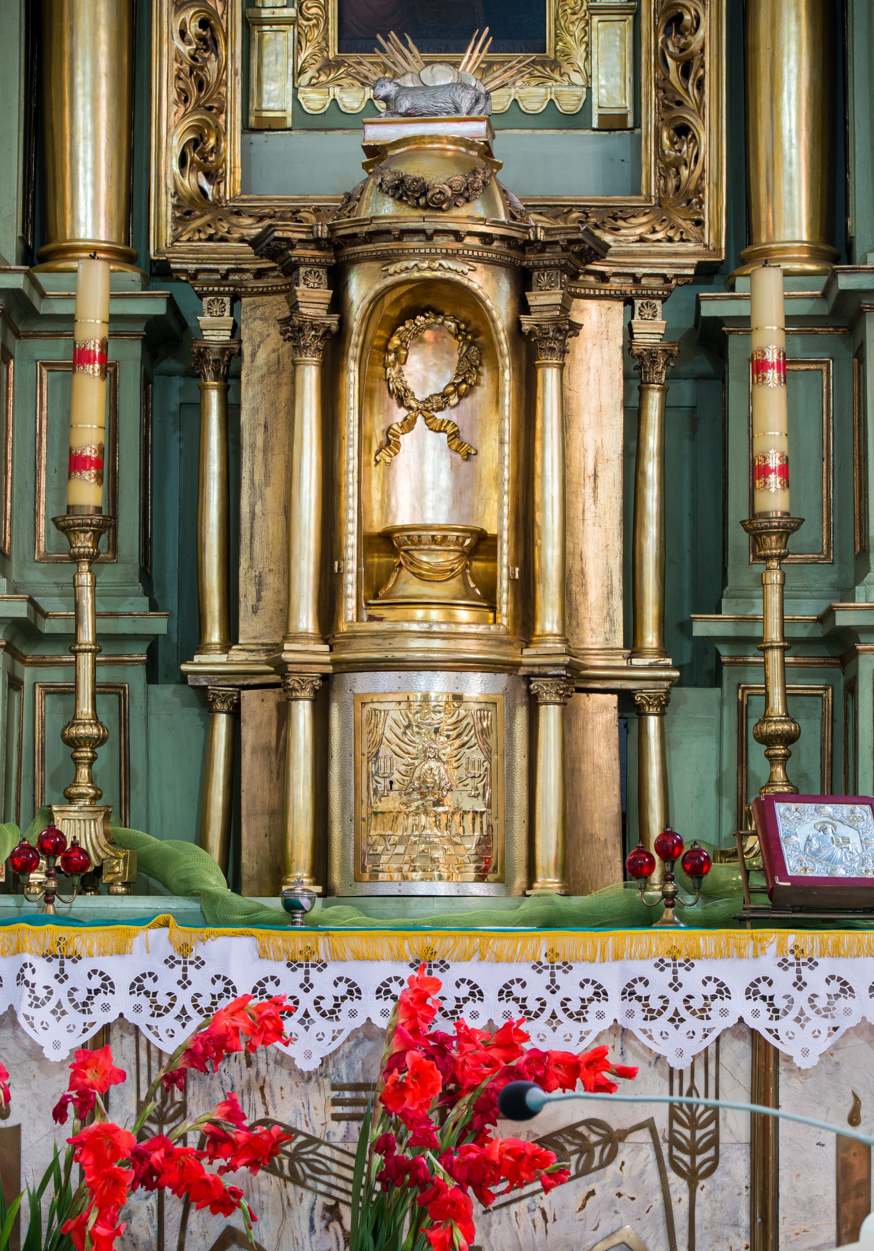 A late baroque tabernacle from the church in Trzebunia was most probably created later than altar itself – in the 18th/19th century – and was complemented by elements typical of Classicism.