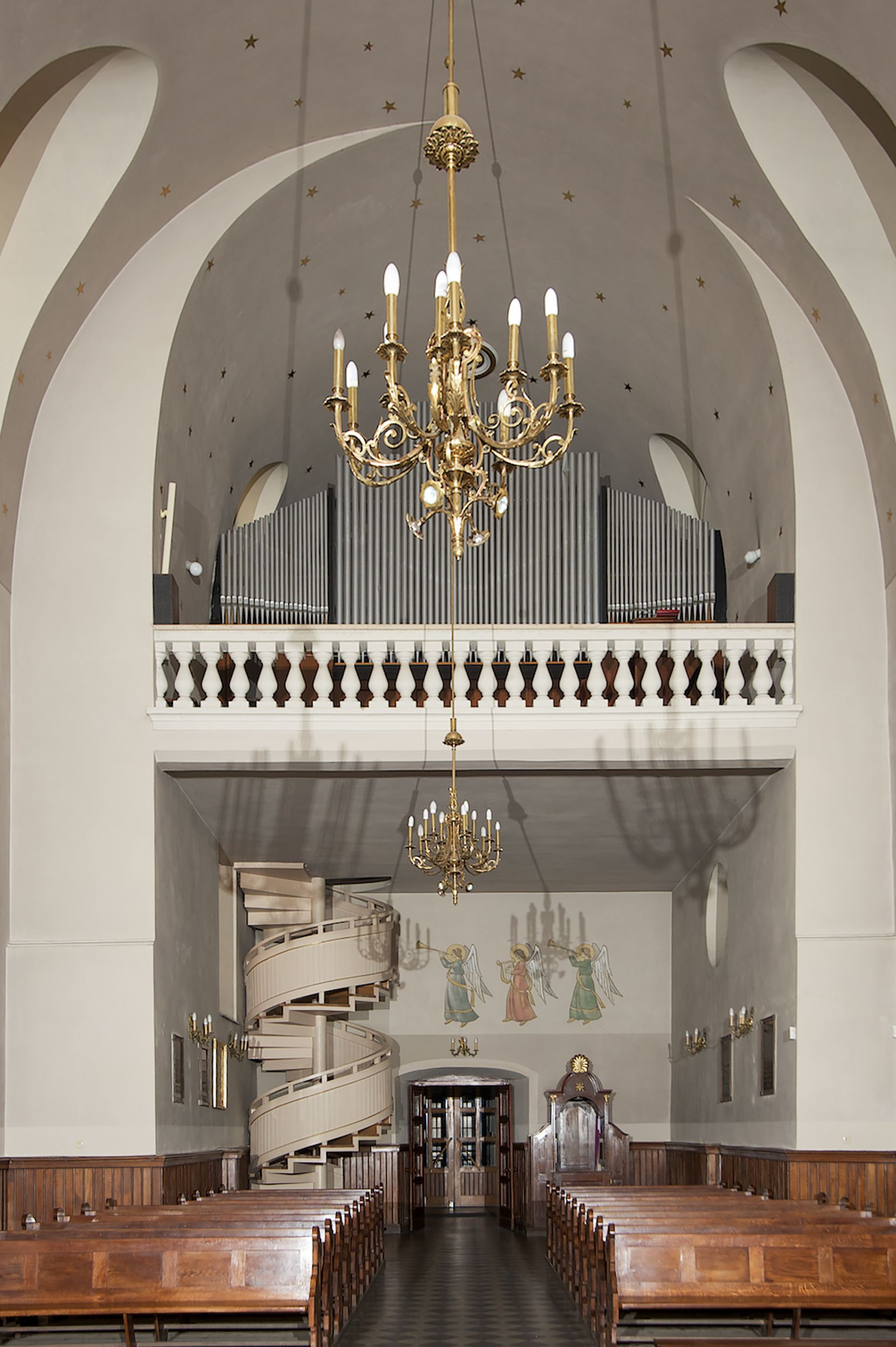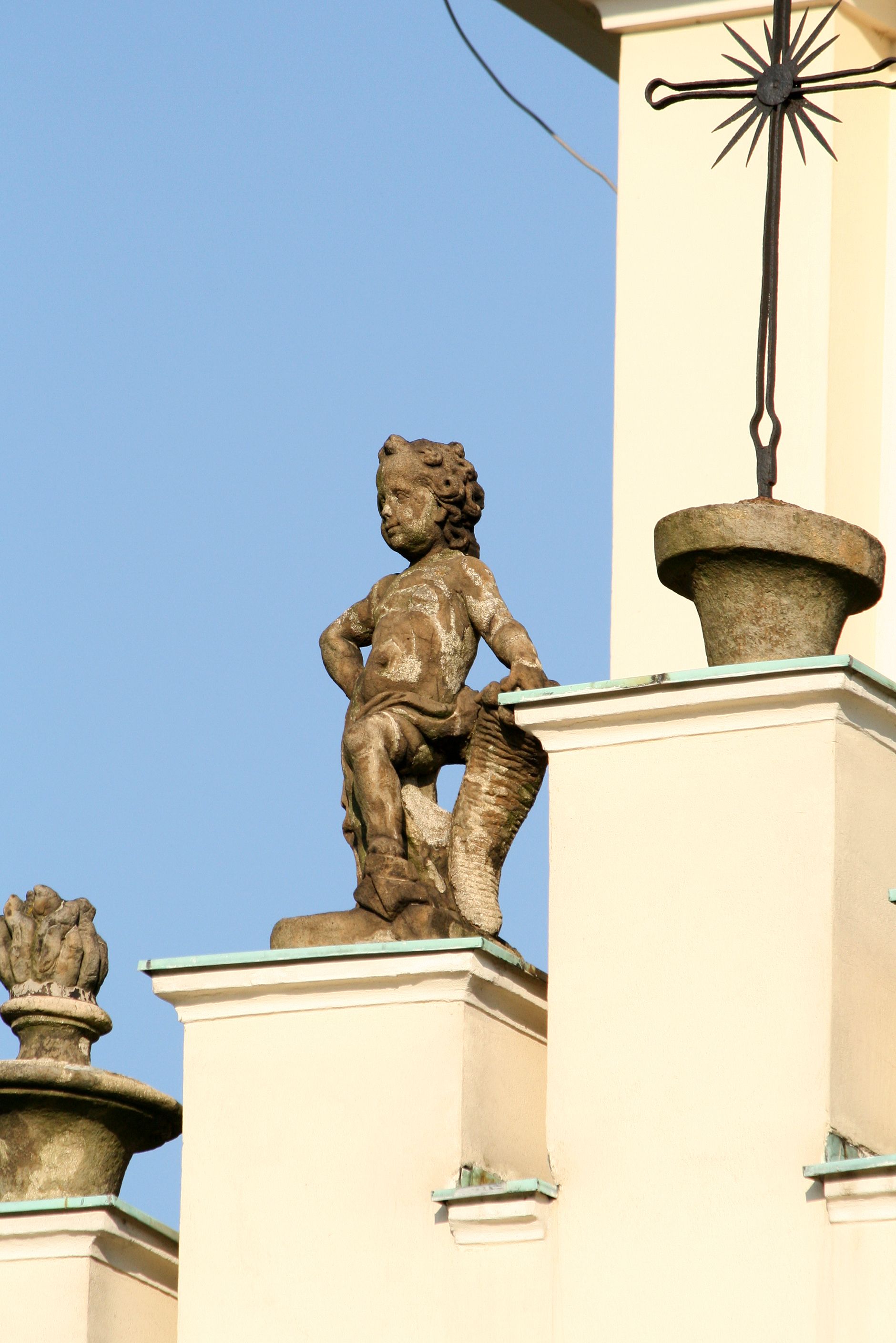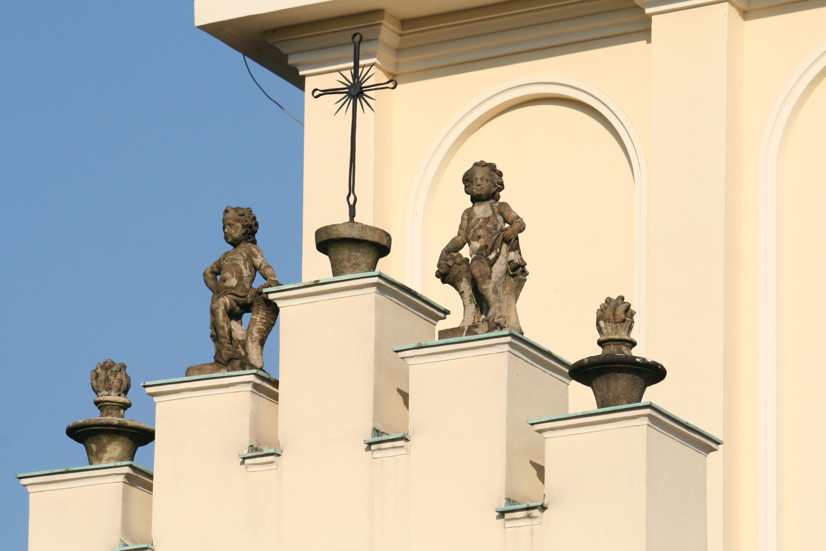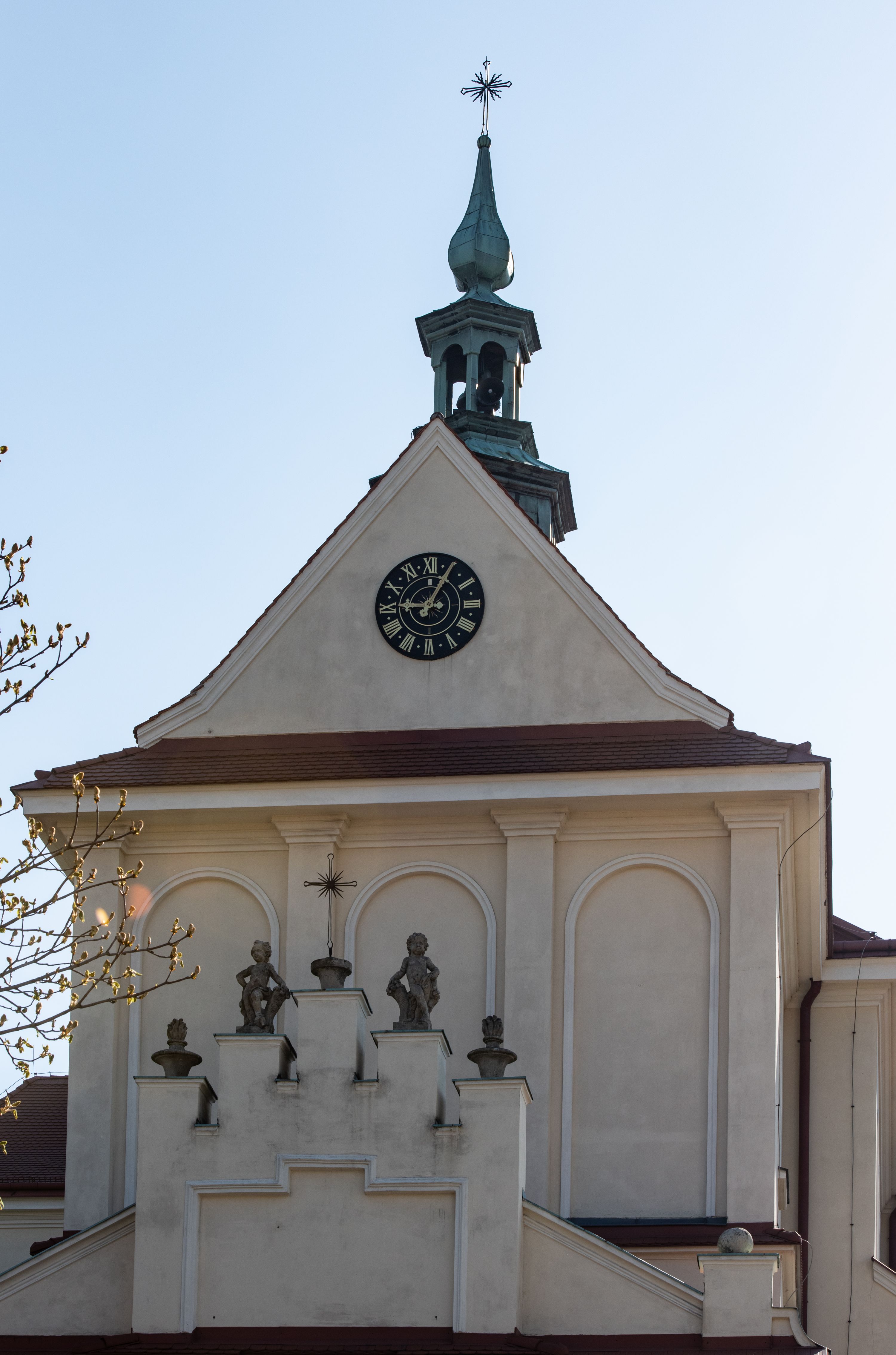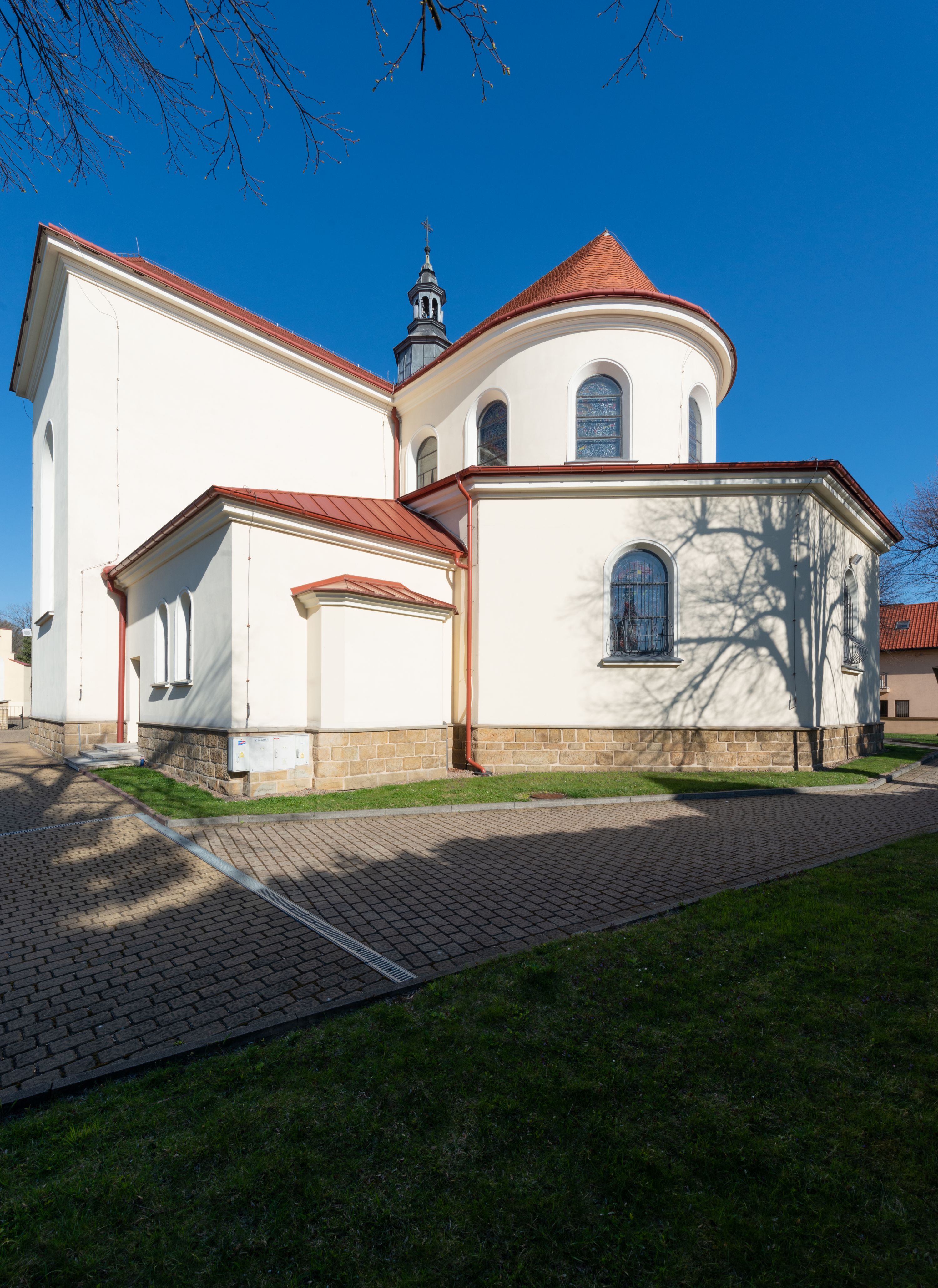 The church along with the chapel of St. Nicolas were made of bricks in 1604 with the funds of Mikołaj Borek from Trzciniec. In the first half of the nineteenth century, the nave was extended and the western porch was annexed, and in 1929 it was rebuilt in accordance with the designs of Franciszek Mączyński and in 1975 according to the designs by Wanda Łopatowa. The high altar from around the year 1700 along with the reredos made from the openwork-covered wine leaves, the Mannerist side altar and the seventeenth-century baptismal font, created in the workshop of Santi Gucci, are the most interesting relics of the church.