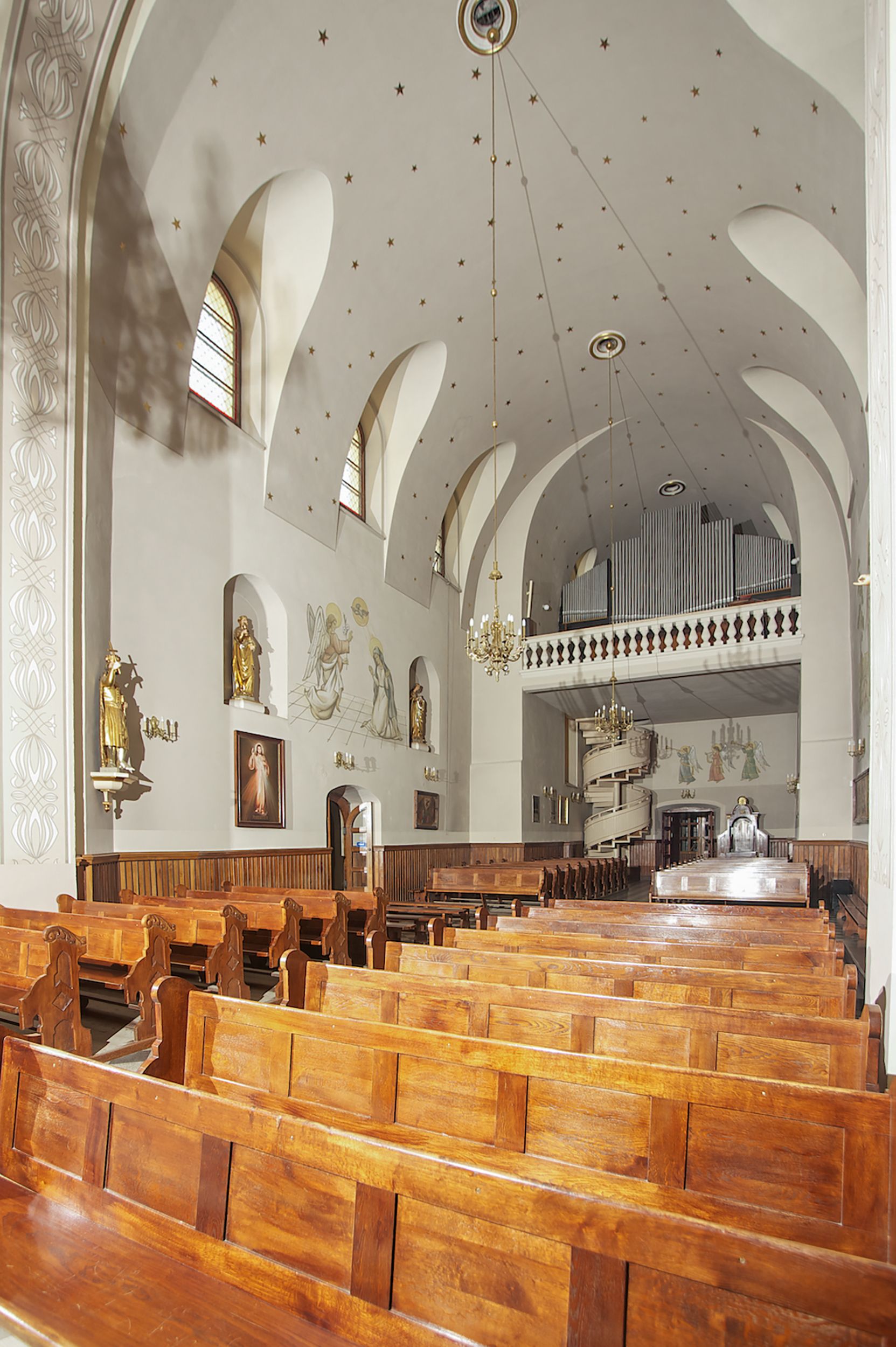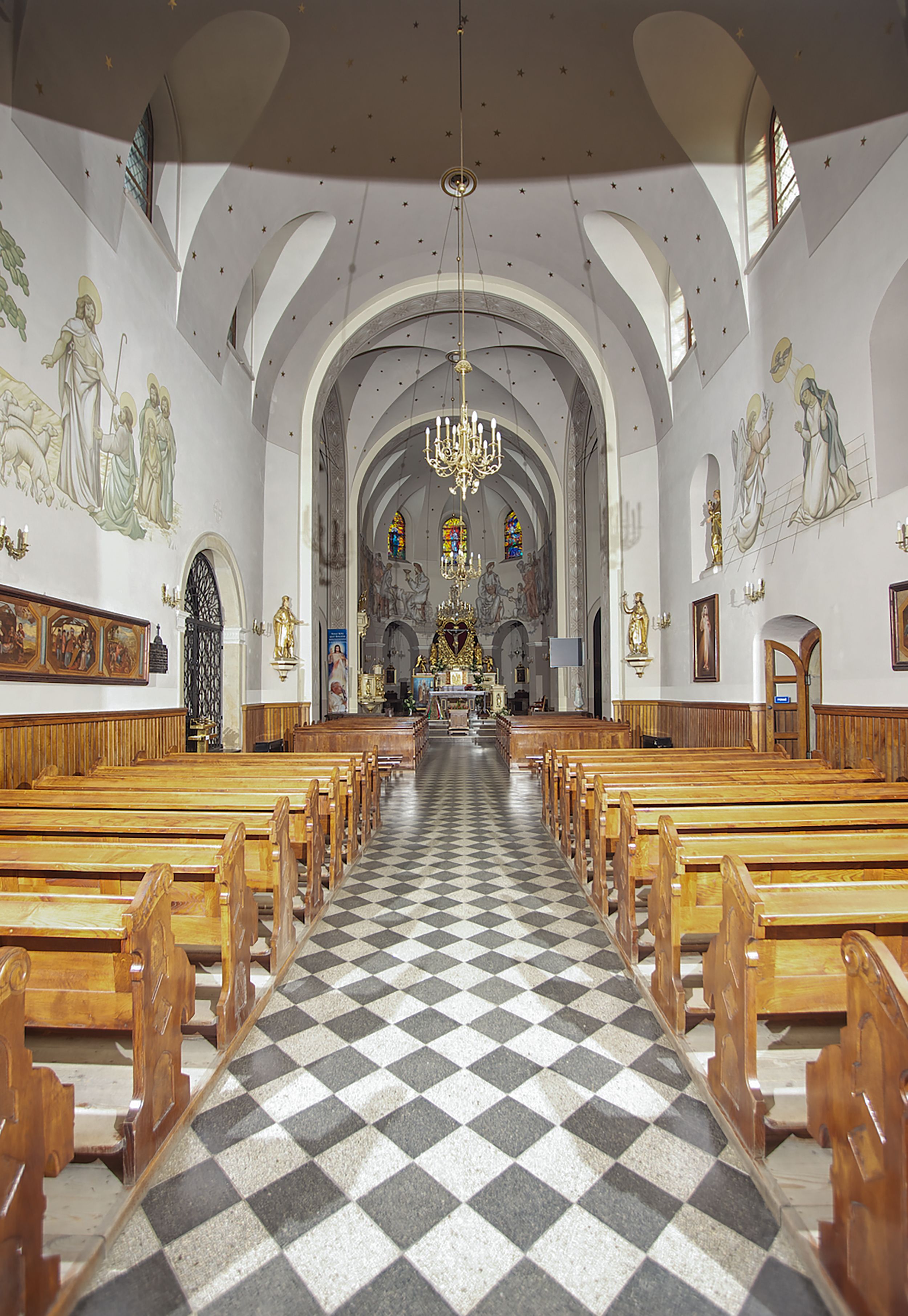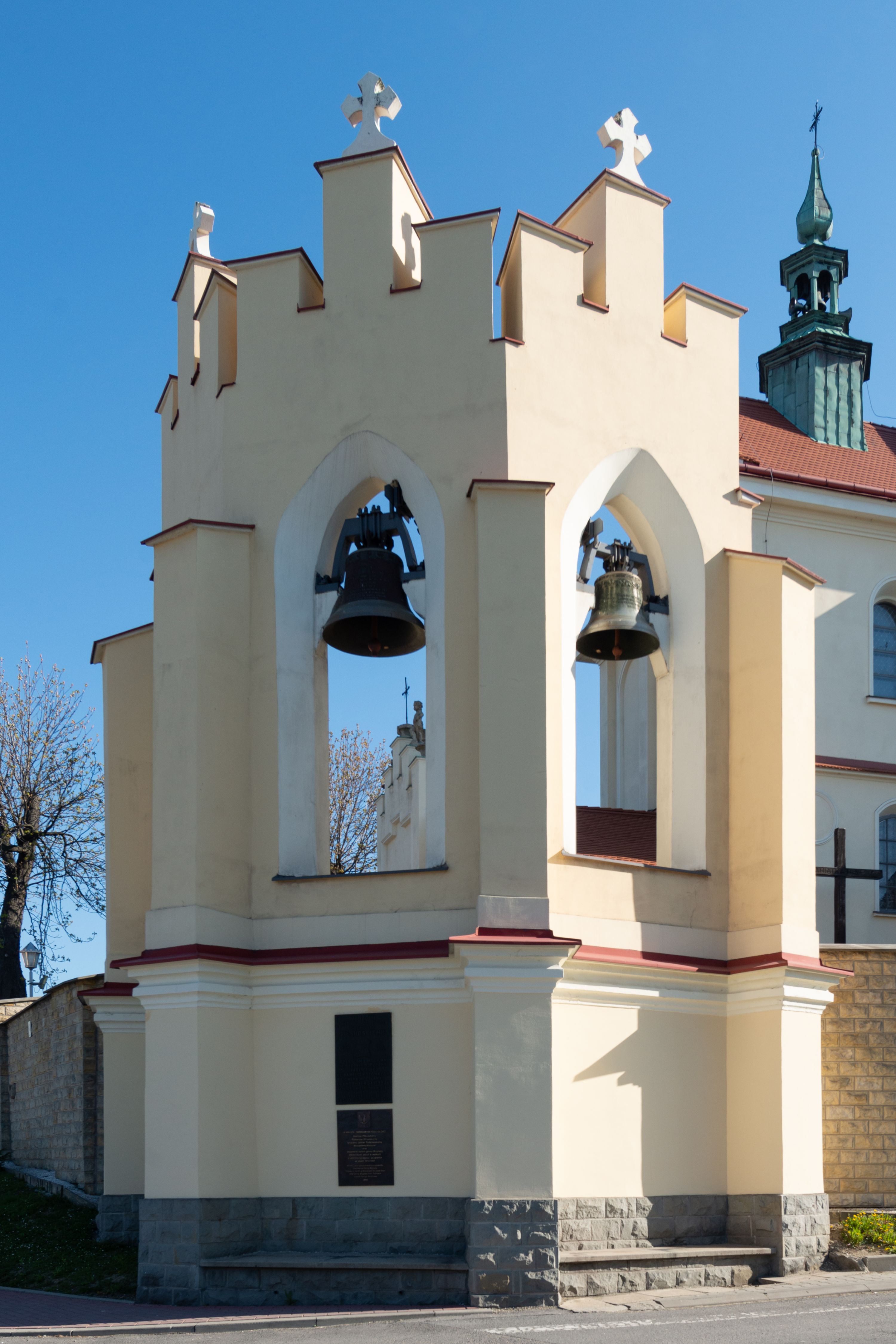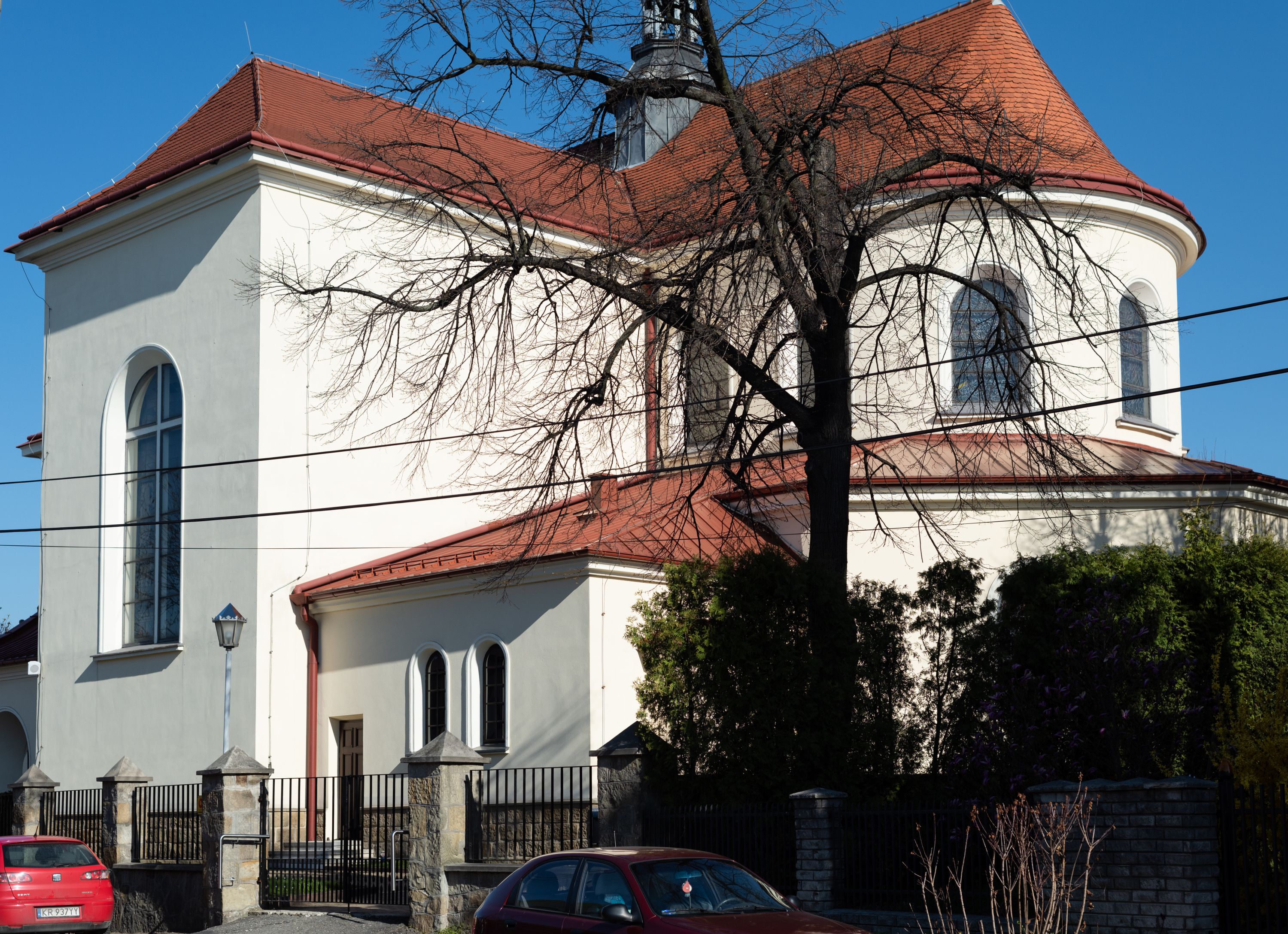The Parish Church of St. Bartholomew was first mentioned in 1325-1327. It was built together with the St. Nicholas Chapel in 1604 and consecrated in 1608 by the Cracovian suffragan, Paweł Dąbski. In the first half of the 19th century, a nave was extended and a western porch was added. In 1929, a new chancel was built in place of the demolished one and a transept nave was created on the basis of Franciszek Mączyński's plans. In 1954-1955, Tadeusz Brzozowski created a tempera figural polychrome. In 1975, another reconstruction according to the plans of the architect Wanda Łopatowa took place. In 1979, the church was electrified, heating was installed, altars were painted and renovated, new sacristy furnishings were added. In 1993, the interior was painted and a polychrome of the chancel was renovated. In 2001-2007, external elevations were renovated and a roof was repaired.