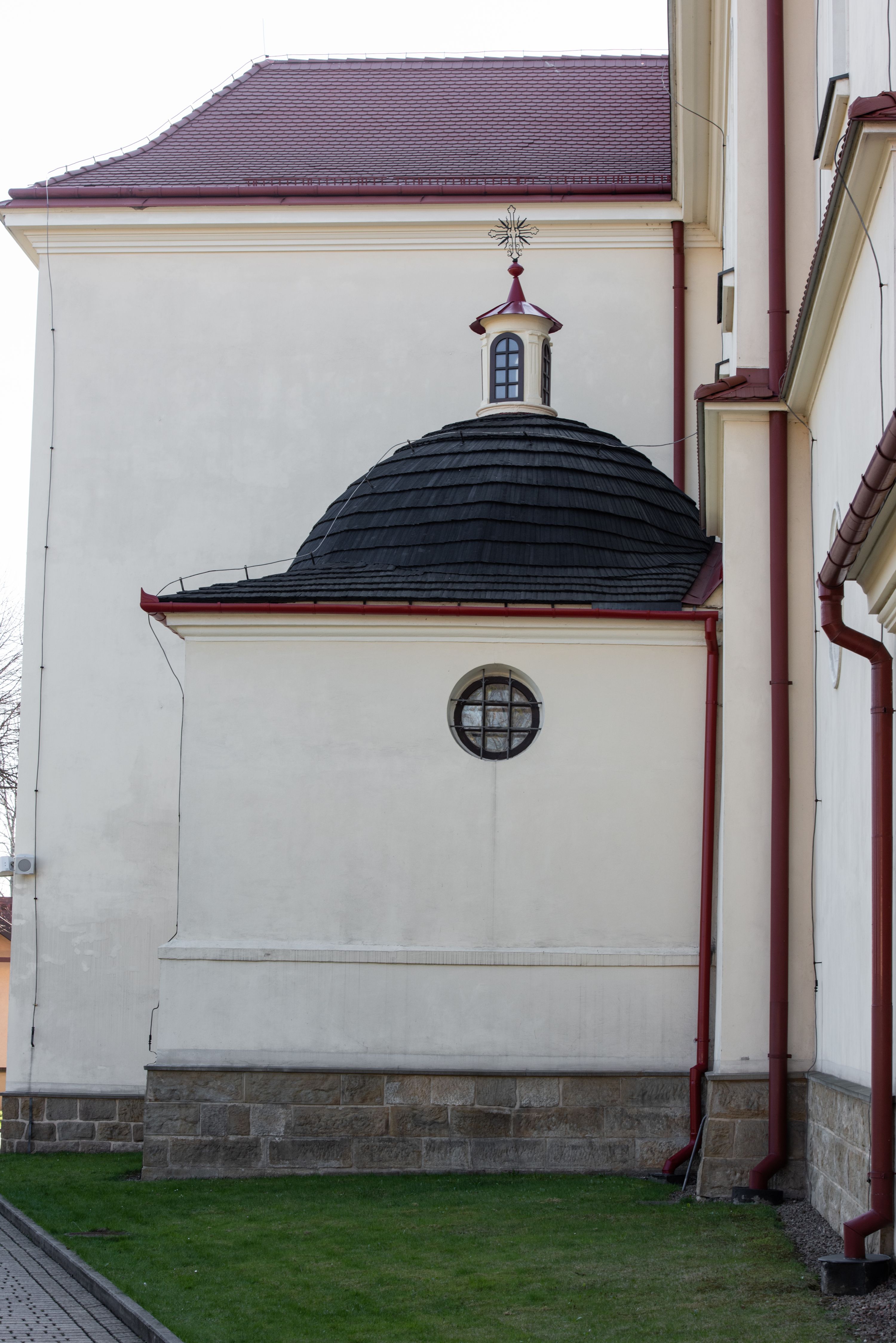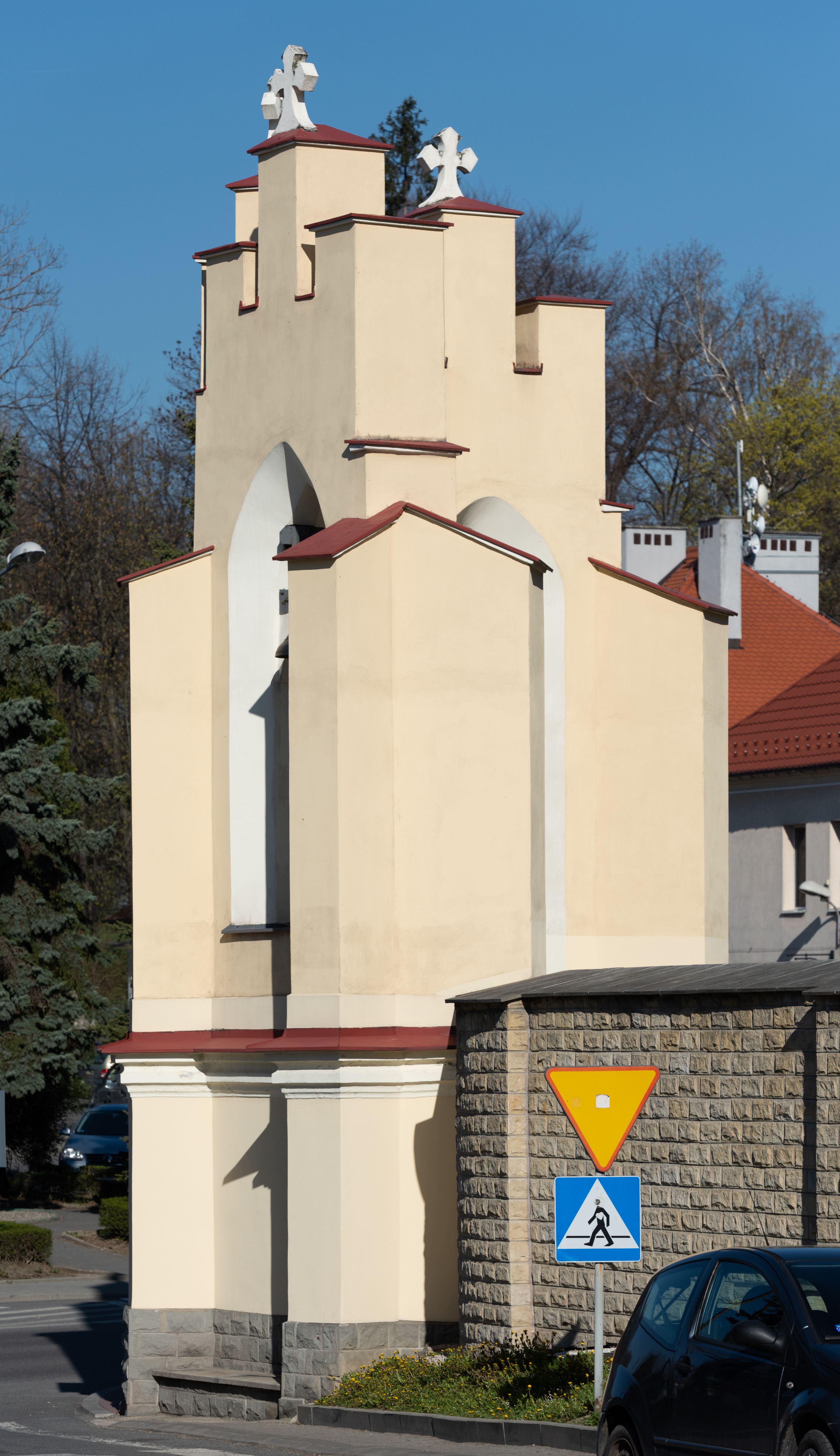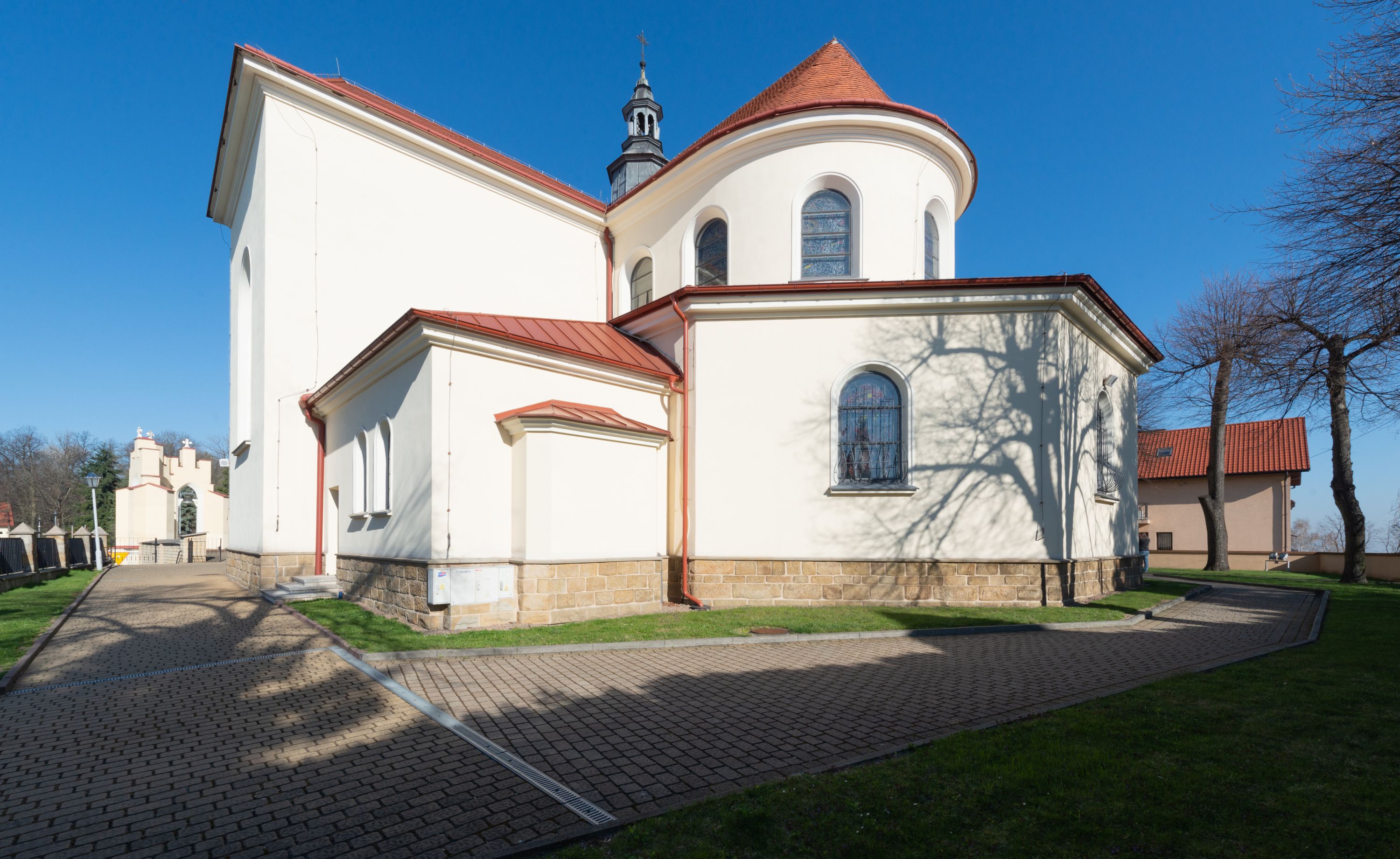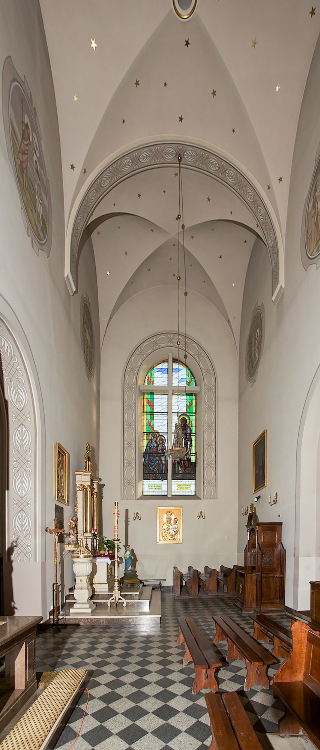 The Parish Church of St. Bartholomew was first mentioned in 1325-1327. It was built together with the St. Nicholas Chapel in 1604 and consecrated in 1608 by the Cracovian suffragan, Paweł Dąbski. In the first half of the 19th century, a nave was extended and a western porch was added. In 1929, a new chancel was built in place of the demolished one and a transept nave was created on the basis of Franciszek Mączyński's plans. In 1954-1955, Tadeusz Brzozowski created a tempera figural polychrome. In 1975, another reconstruction according to the plans of the architect Wanda Łopatowa took place. In 1979, the church was electrified, heating was installed, altars were painted and renovated, new sacristy furnishings were added. In 1993, the interior was painted and a polychrome of the chancel was renovated. In 2001-2007, external elevations were renovated and a roof was repaired.
