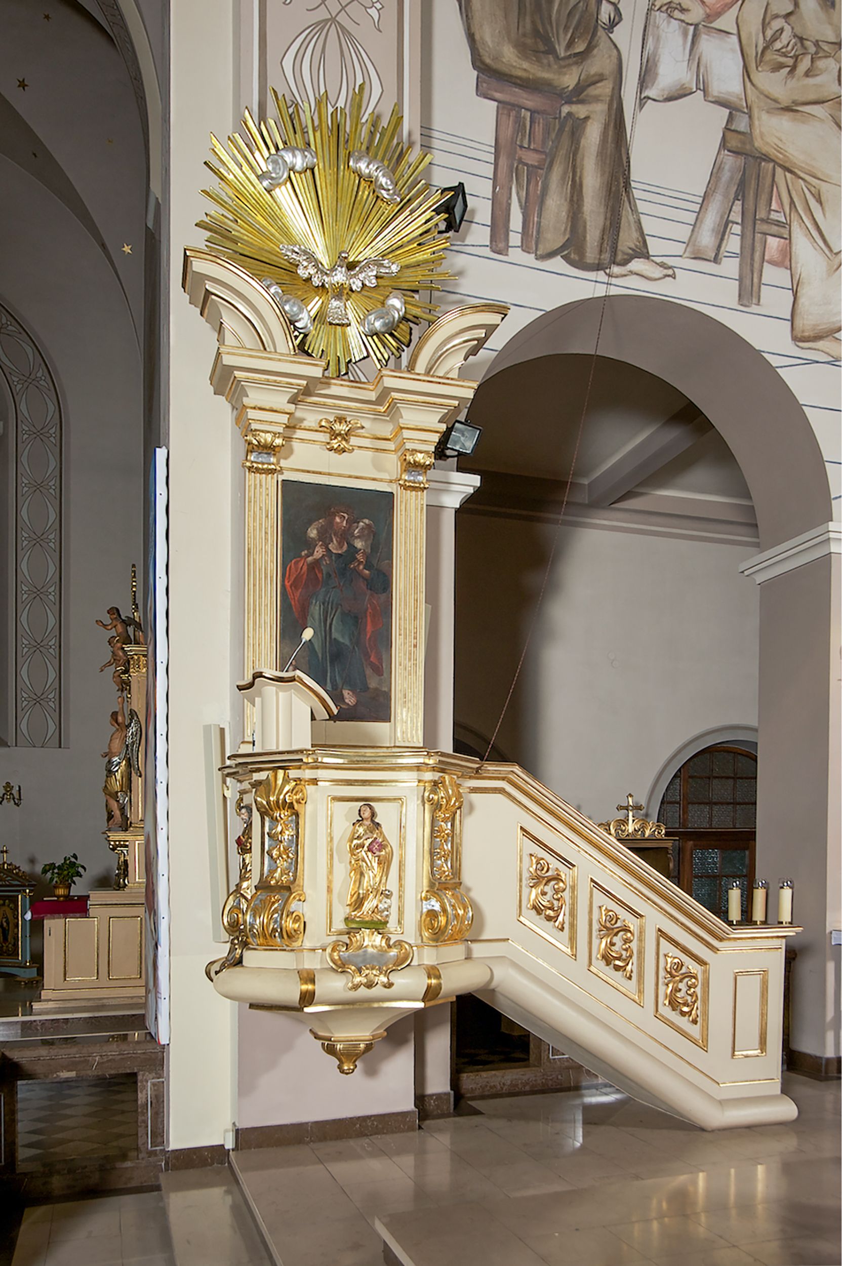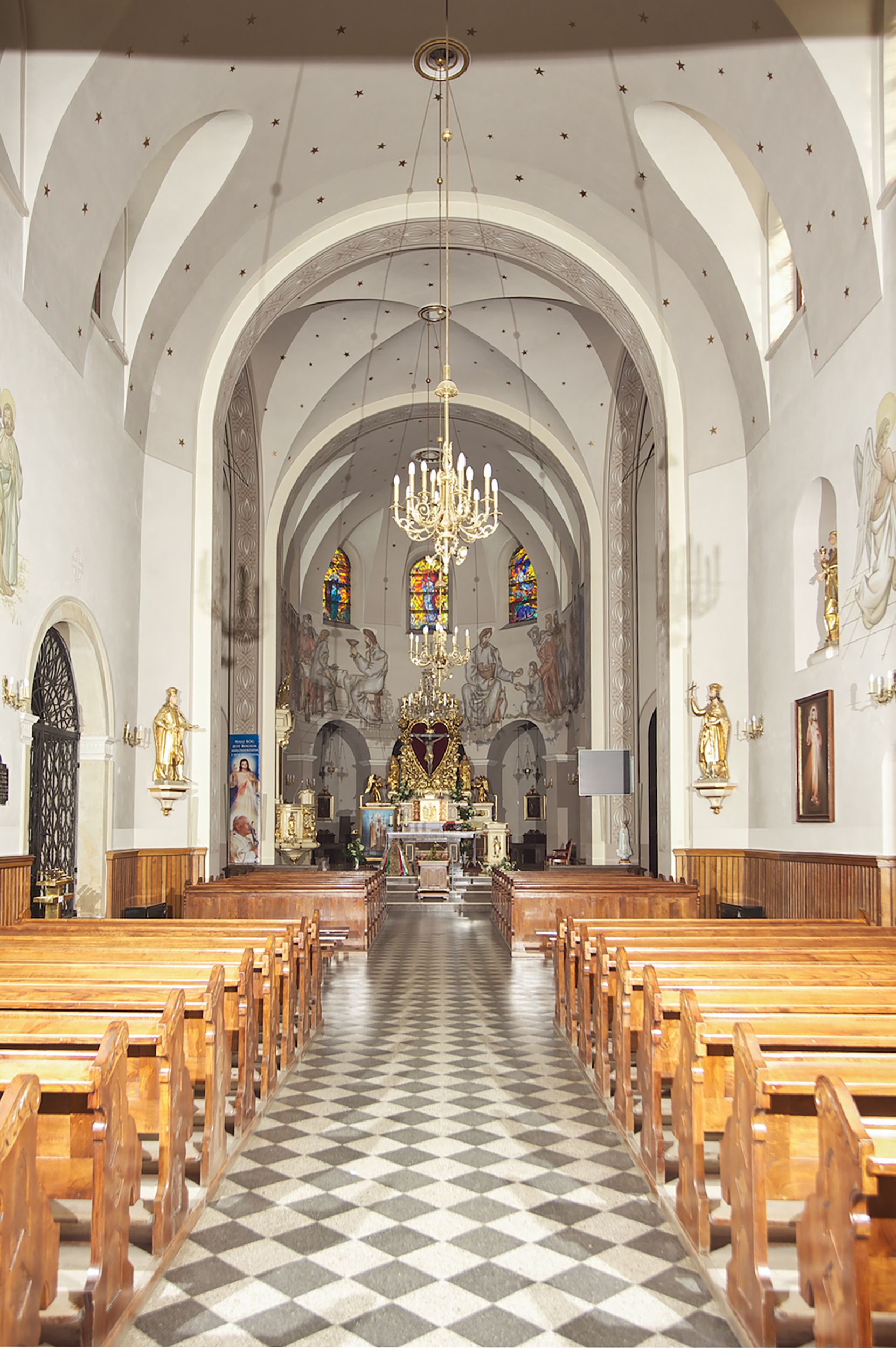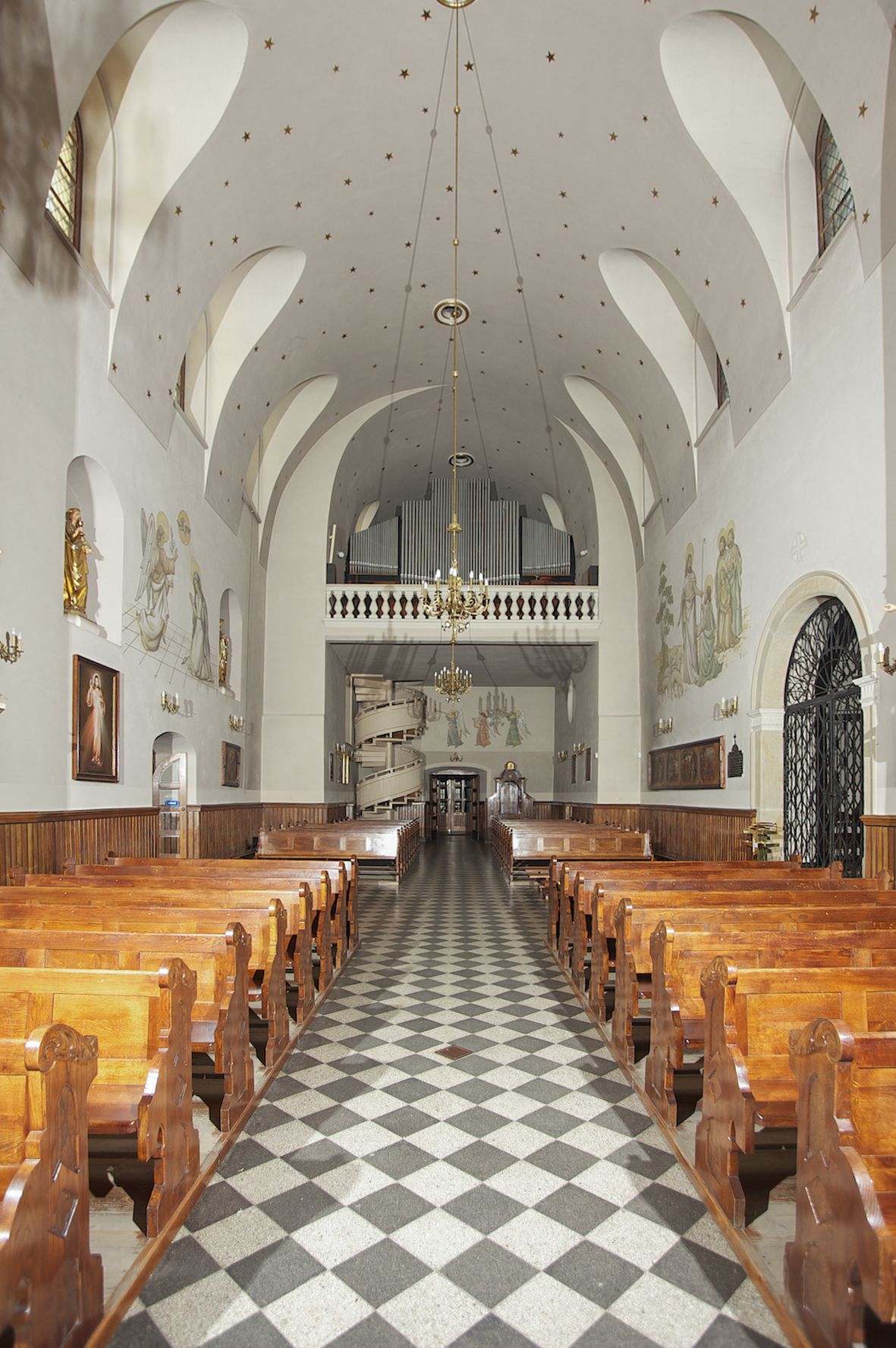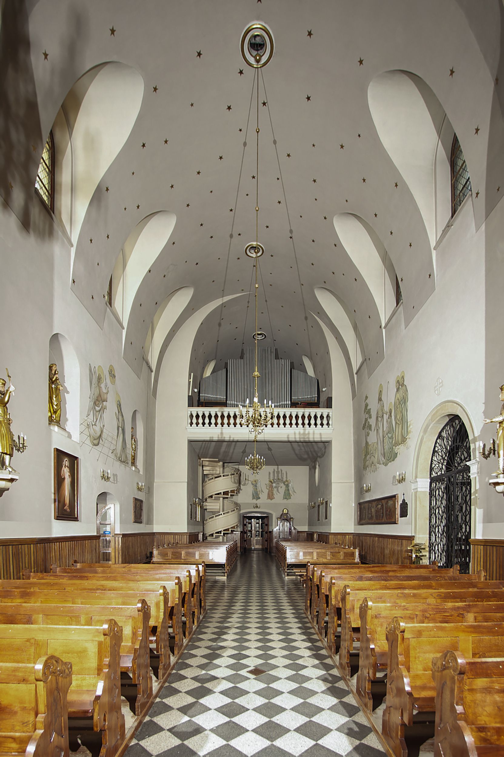 The Parish Church of St. Bartholomew was first mentioned in 1325-1327. It was built together with the St. Nicholas Chapel in 1604 and consecrated in 1608 by the Cracovian suffragan, Paweł Dąbski. In the first half of the 19th century, a nave was extended and a western porch was added. In 1929, a new chancel was built in place of the demolished one and a transept nave was created on the basis of Franciszek Mączyński's plans. In 1954-1955, Tadeusz Brzozowski created a tempera figural polychrome. In 1975, another reconstruction according to the plans of the architect Wanda Łopatowa took place. In 1979, the church was electrified, heating was installed, altars were painted and renovated, new sacristy furnishings were added. In 1993, the interior was painted and a polychrome of the chancel was renovated. In 2001-2007, external elevations were renovated and a roof was repaired.