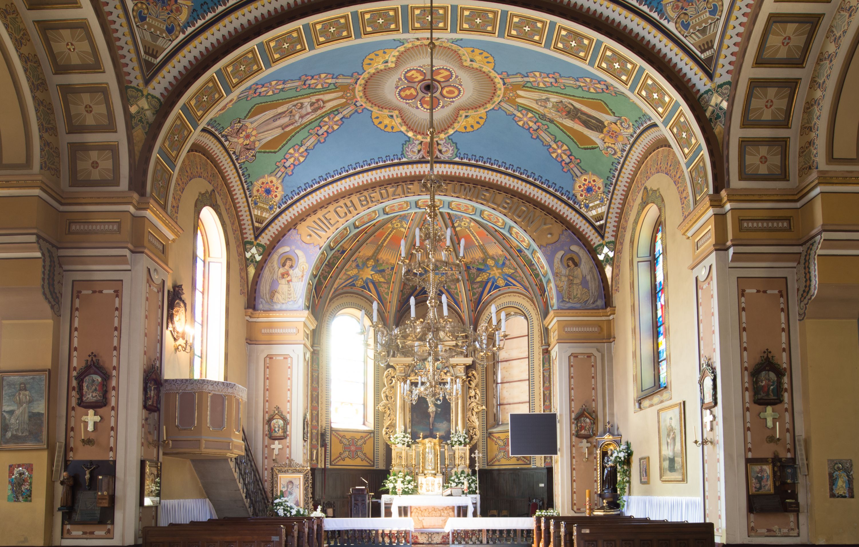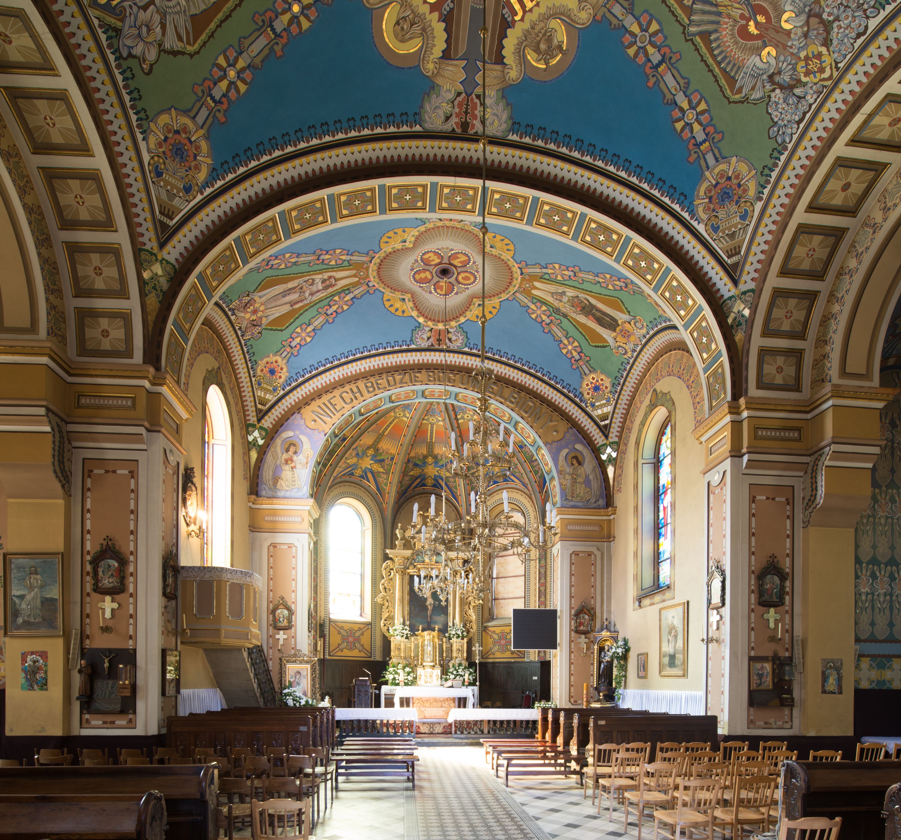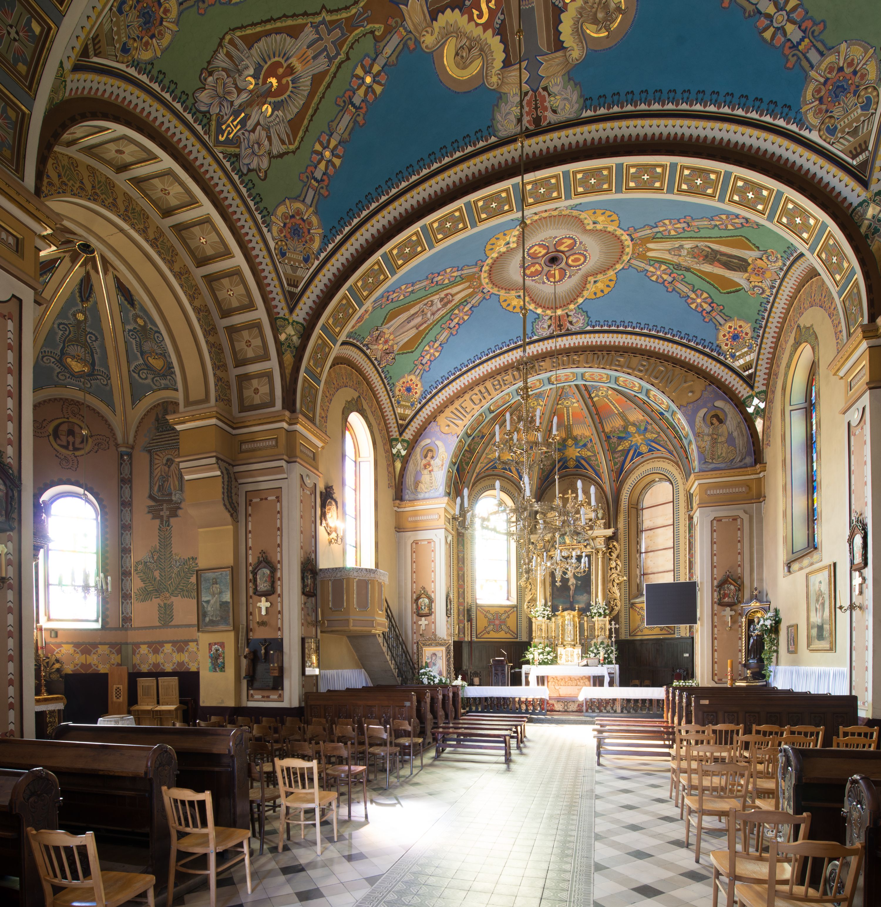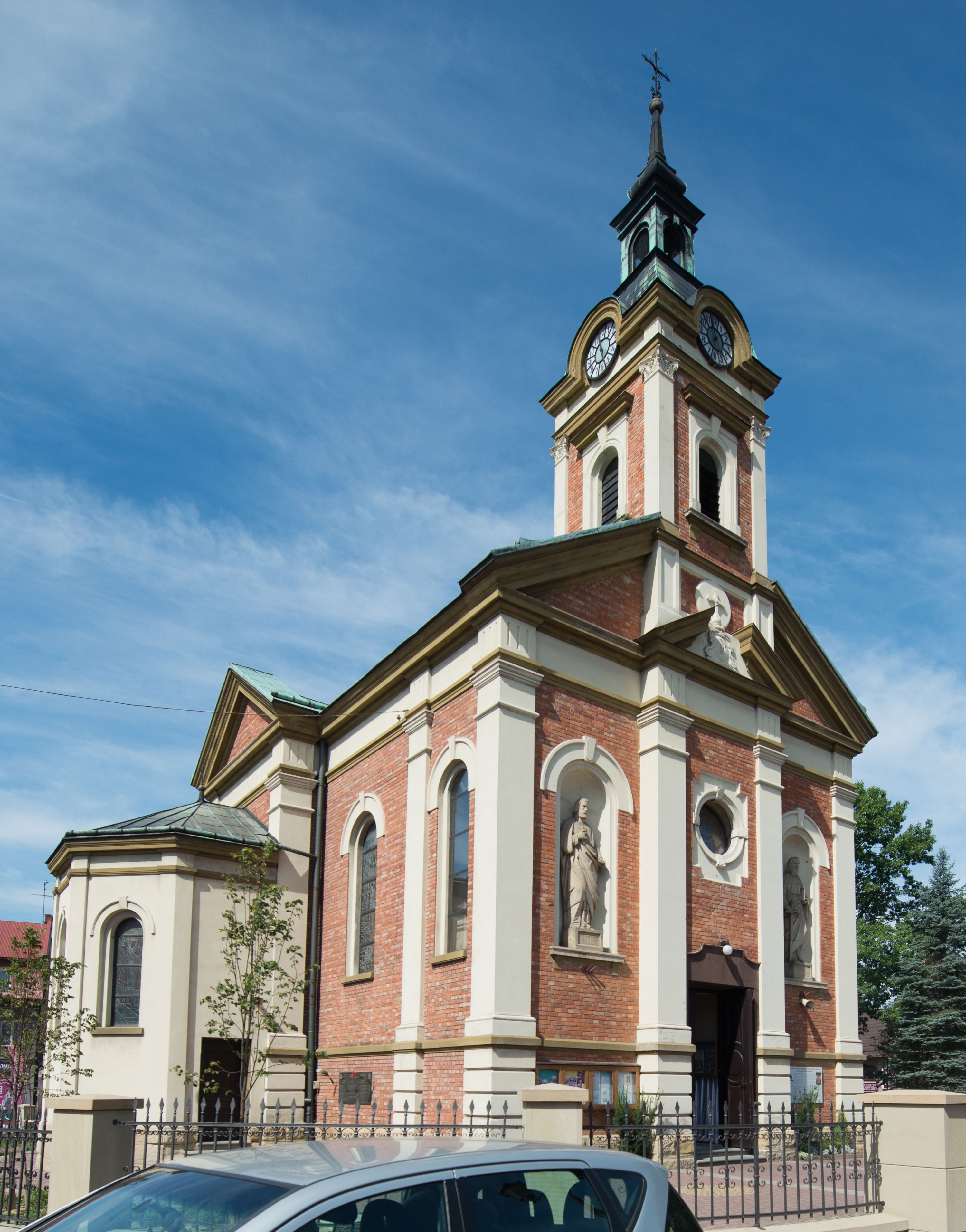 The church designs were prepared in 1887 but the church was being built over the period of 1902-1908. The one-nave design of the temple was extended in the twenties of the twentieth century with the side chapels, in accordance with the designs of Józef Merenda. The church is a construction in an eclectic style. The high altar from around the year 1700, transferred to the present location from the church in Limanowa, is the most precious relic of the temple and the polychrome of the Art Nouveau inspirations with the Art decó elements also deserves to be valued.