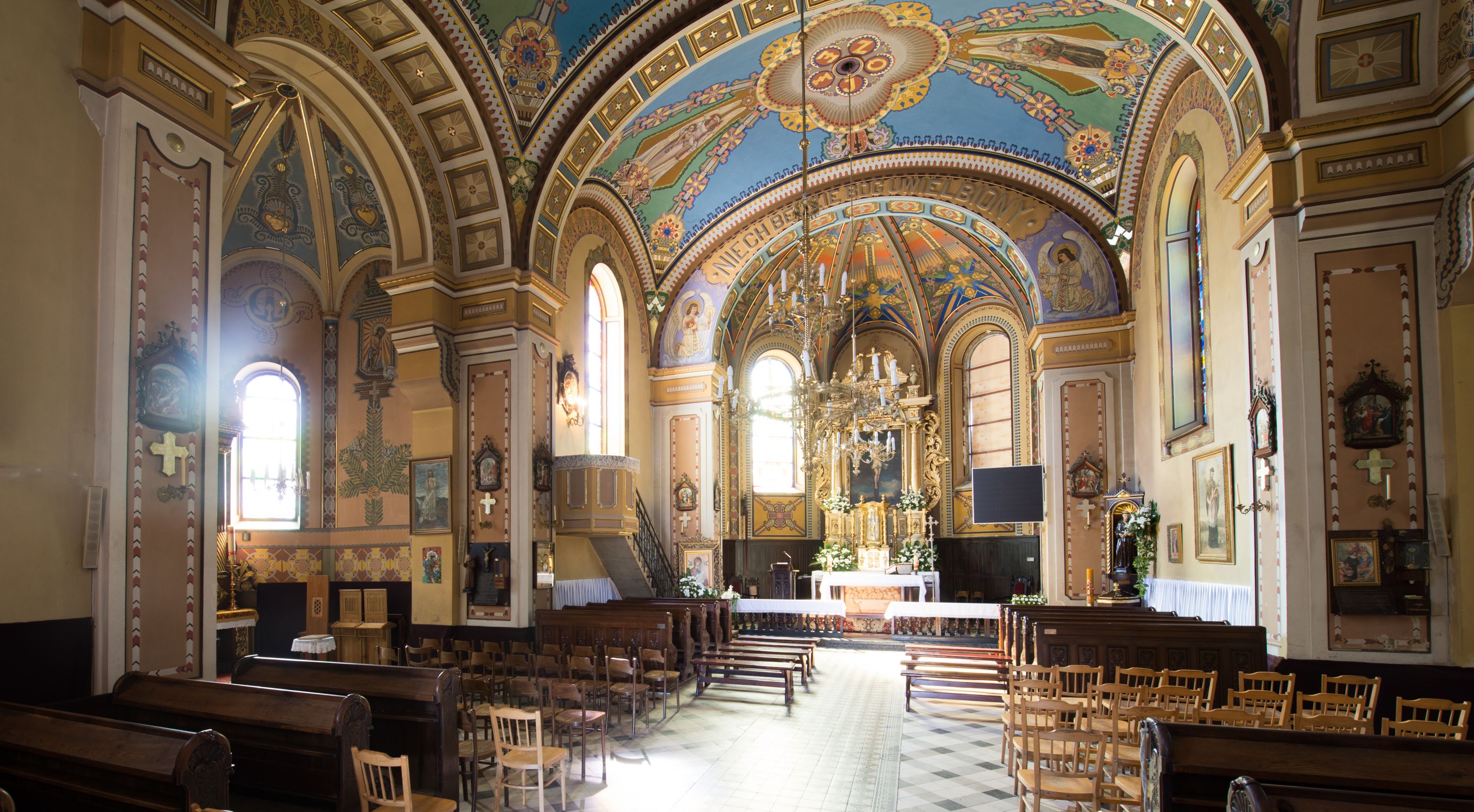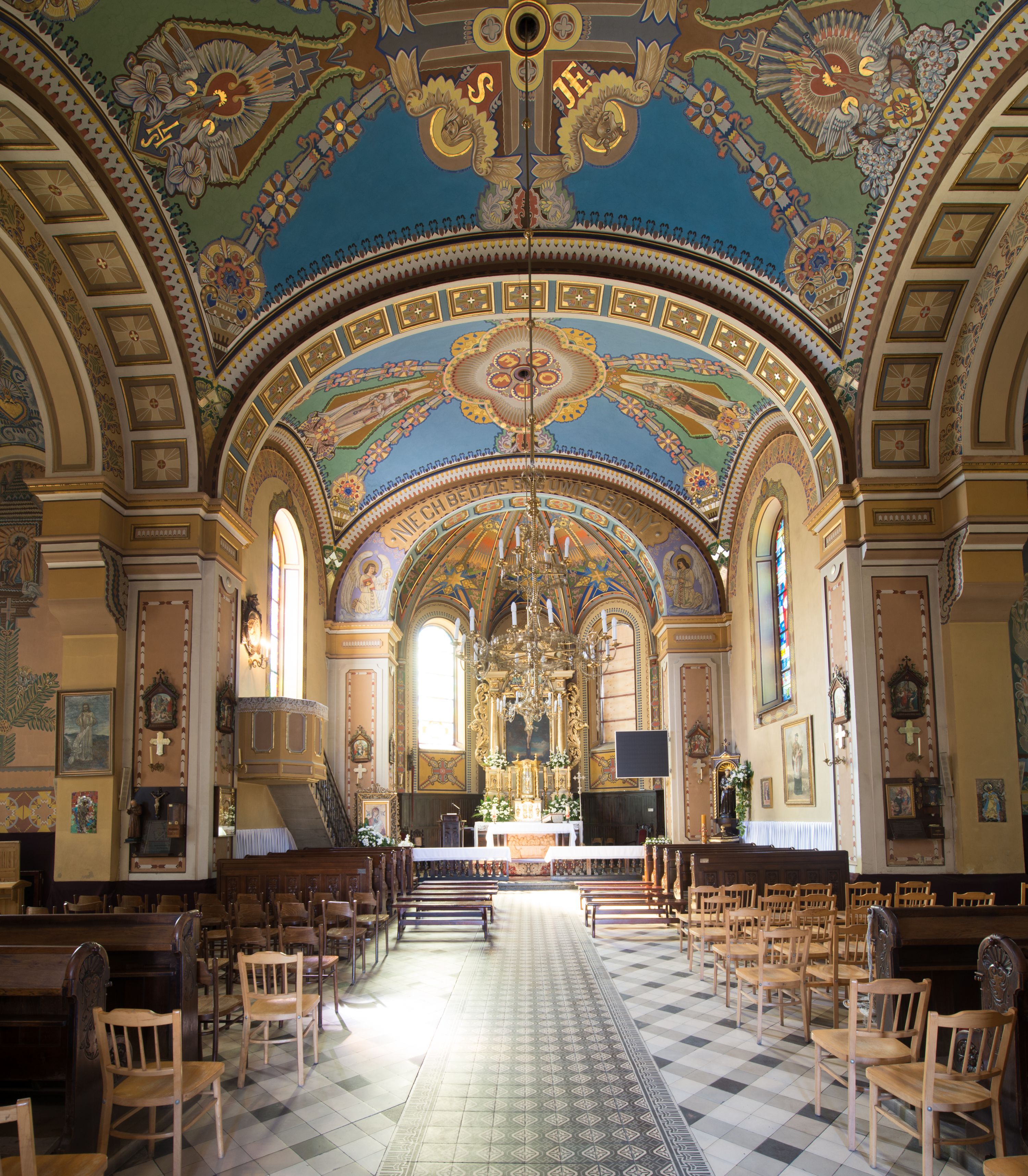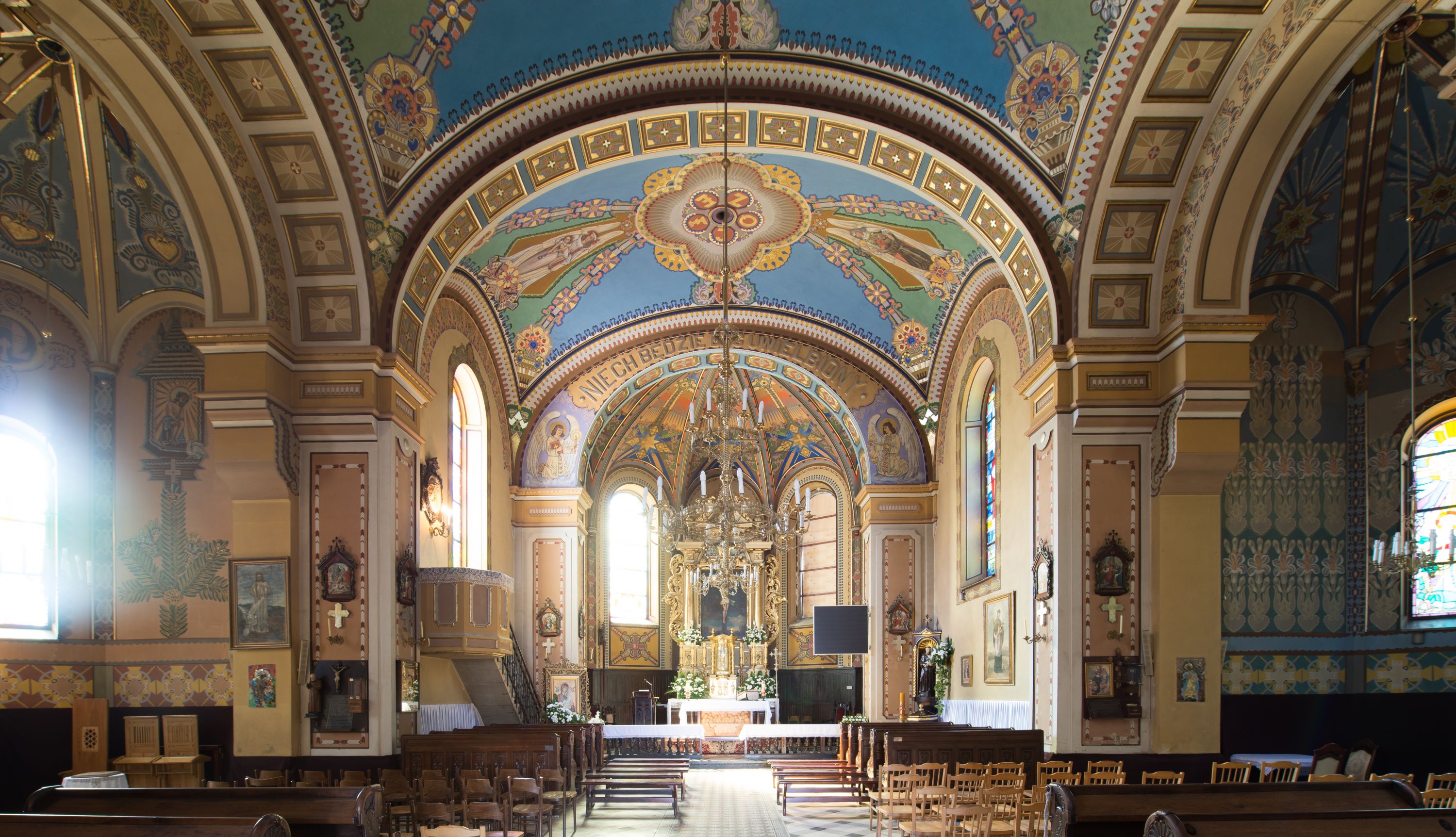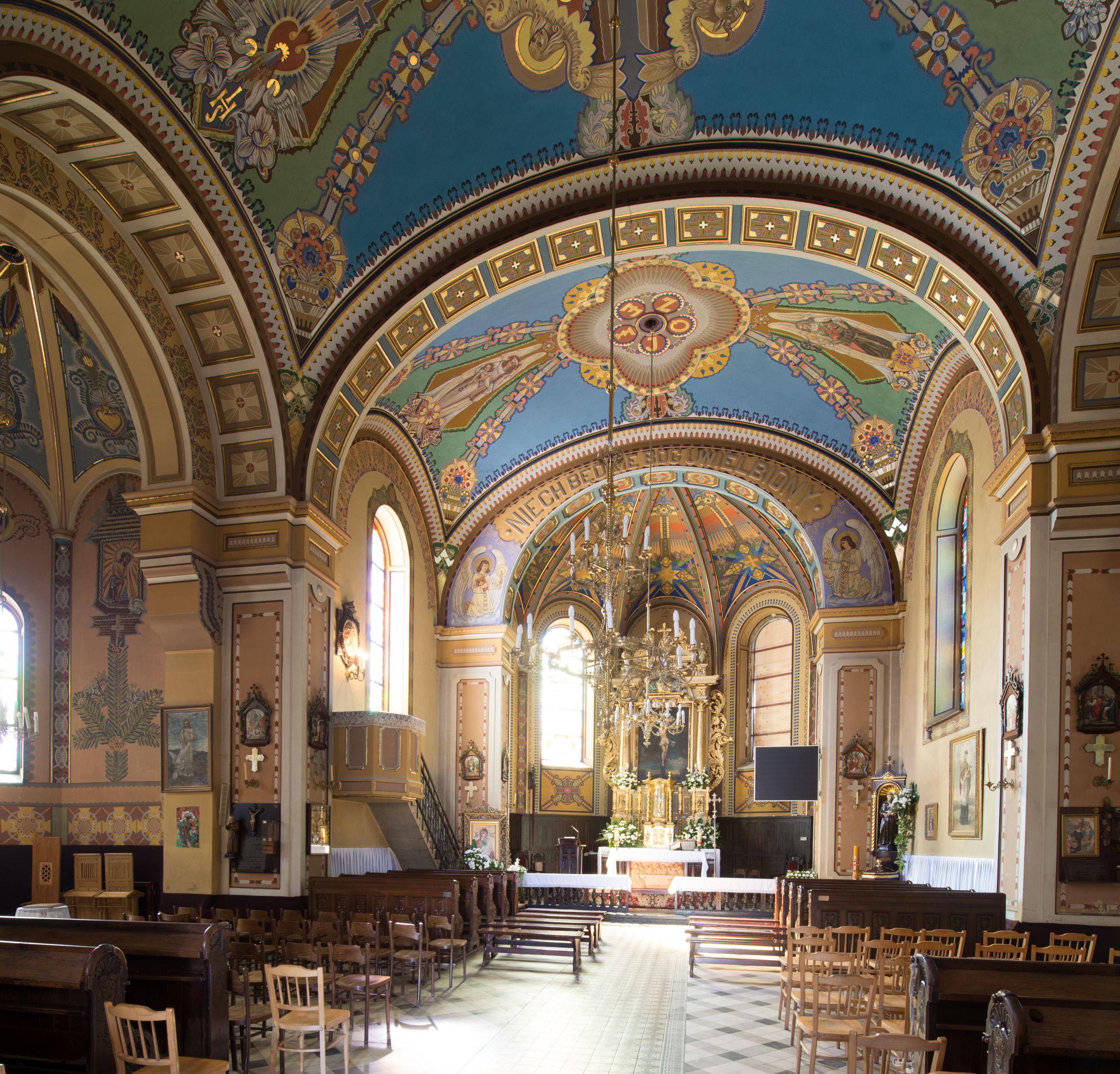 The church designs were prepared in 1887 but the church was being built over the period of 1902-1908. The one-nave design of the temple was extended in the twenties of the twentieth century with the side chapels, in accordance with the designs of Józef Merenda. The church is a construction in an eclectic style. The high altar from around the year 1700, transferred to the present location from the church in Limanowa, is the most precious relic of the temple and the polychrome of the Art Nouveau inspirations with the Art decó elements also deserves to be valued.