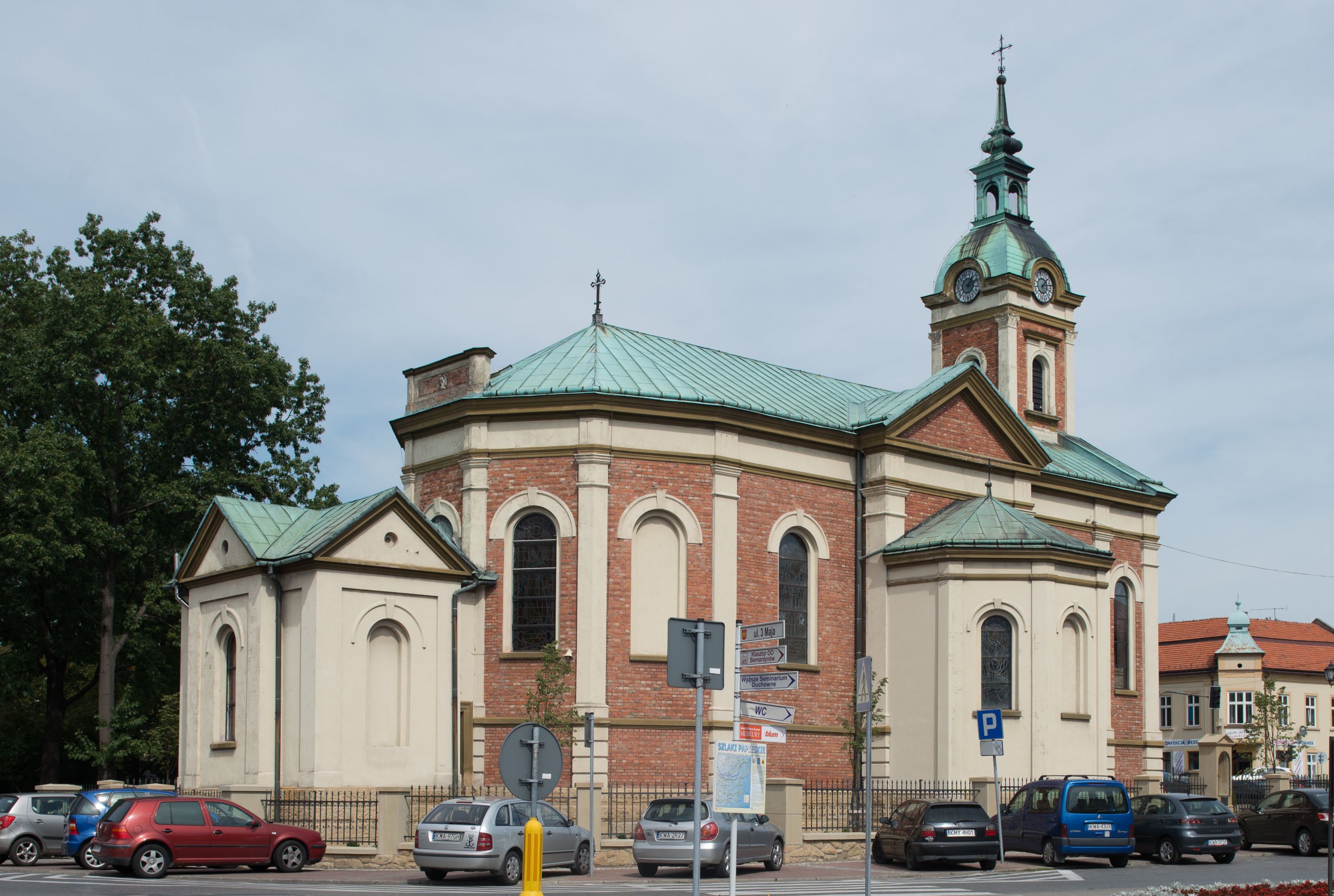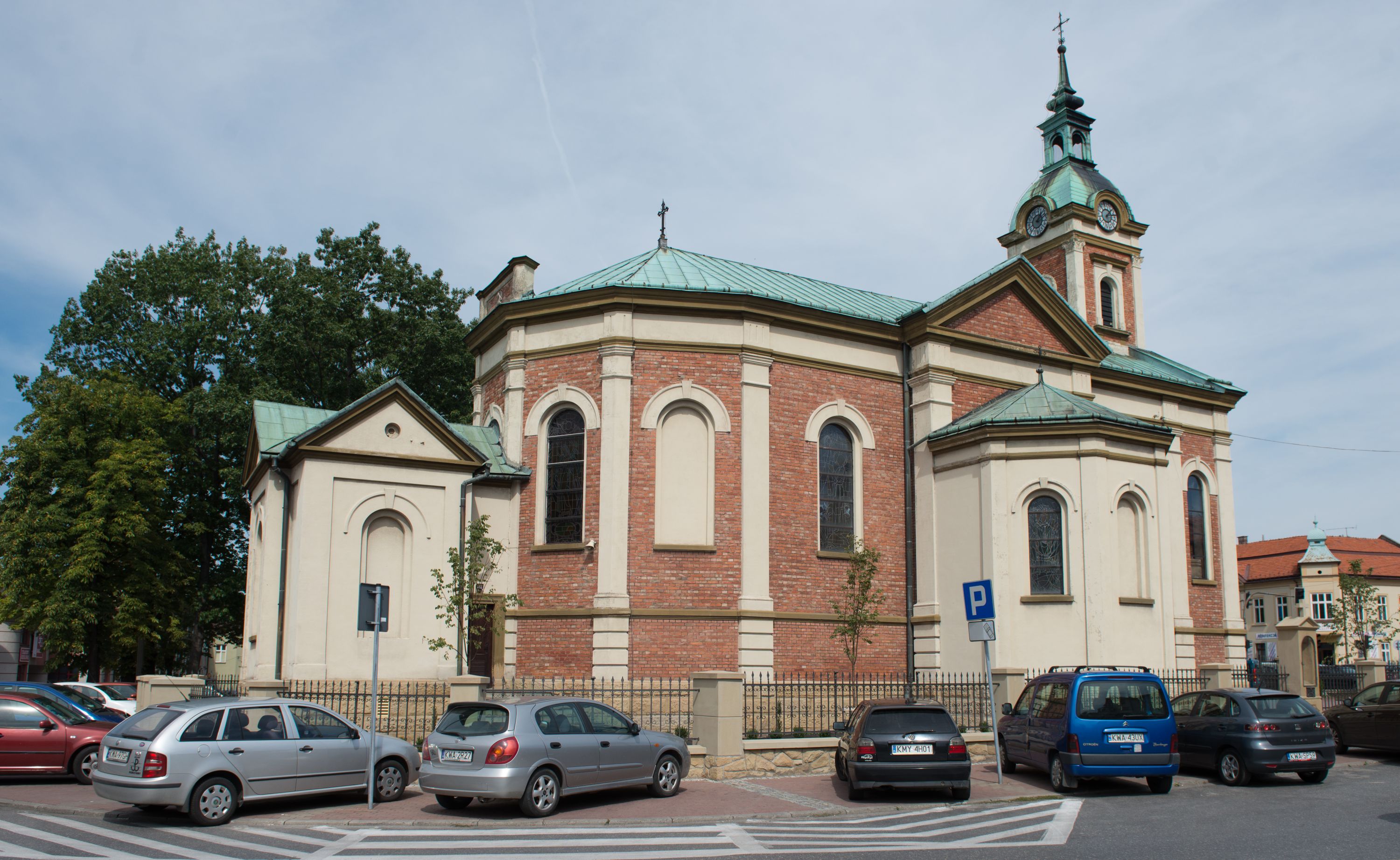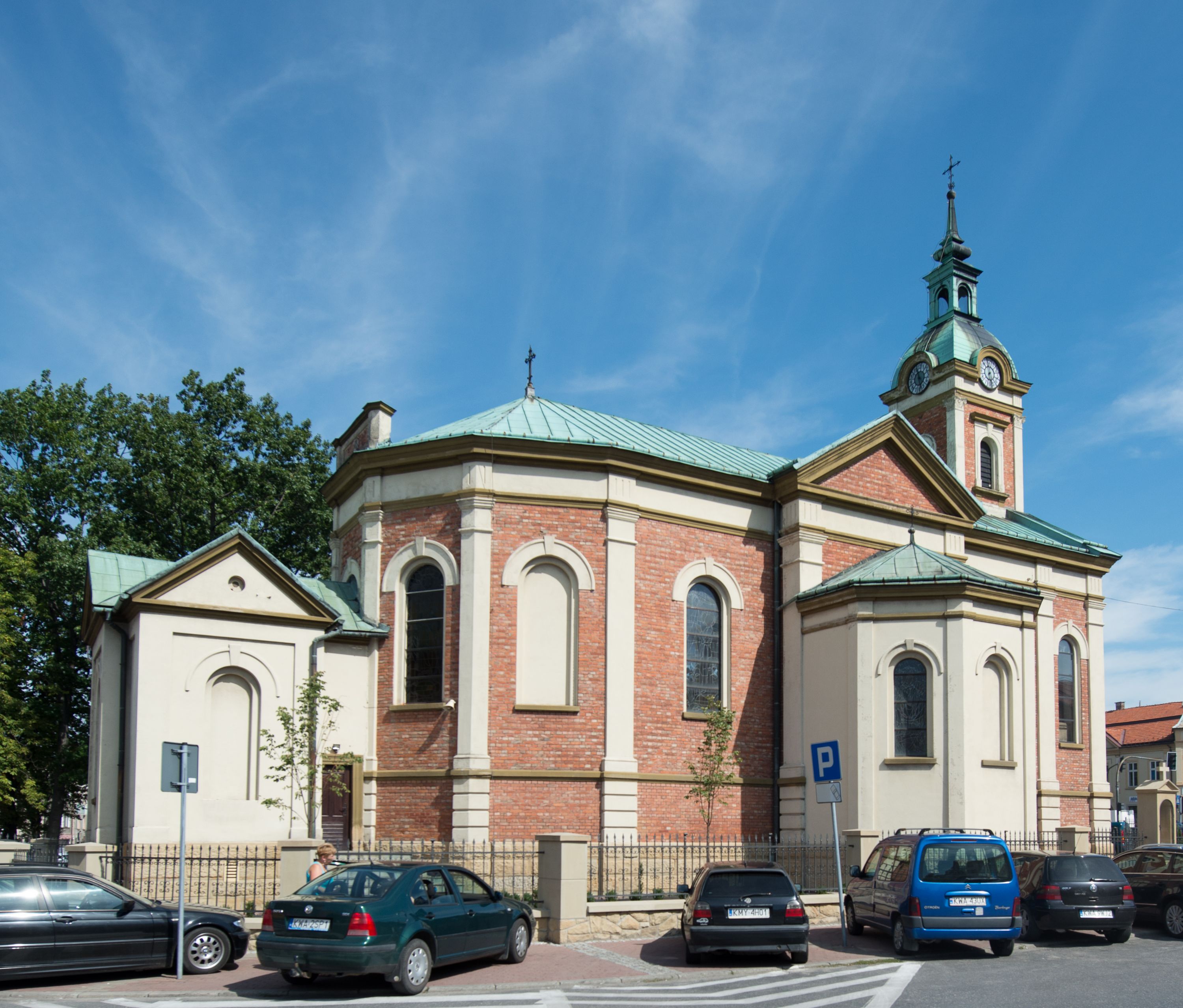 In 1887 the plans for the church were prepared, but its construction didn't start until 1902 – the 300th anniversary of the founding of the monastery and church in Kalwaria Zebrzydowska – and was completed in 1908. Most of the work was done in 1906 - the walls were built and painted, the church and cellars were arched, a concrete floor was made and then the floor was laid, windows were glazed, the loft was arranged and the pulpit was erected. Bells were purchased in 1908, and then in 1911, the pews and confessionals were bought, and the sacristy, which was furnished in the following year, was built. In 1923 an oak balustrade was purchased and placed in front of the high altar, and, a year later, finishing of the façade started. At that time Józef Merenda, a builder from Podgórze, prepared a plan to extend the church with side chapels - the right one was built in the same year, the left one in the following year.