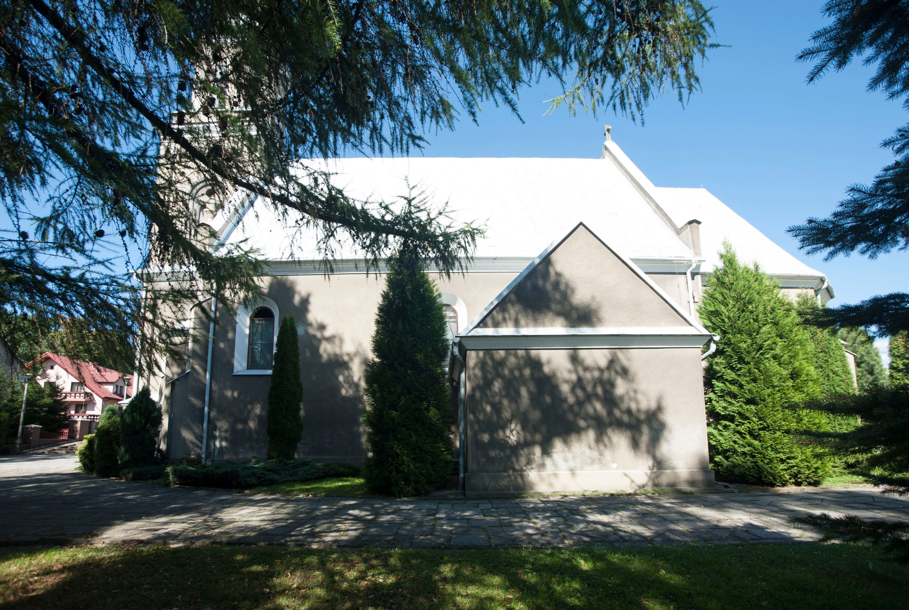 As father Wincenty Florczyk - the parish priest in the years 1889-1901 - described in 1890, the church had "uneven walls and curve-lined arch, broken in three places, separating the nave from the chancel. It has a simple ceiling made of non plastered boards, covered with a shingle roof. A modest, Romanesque ridge turret on the roof faces the sky. A wooden bell tower built without any taste touches the front of the temple while the sacristy - the northern wall of the chancel. The women's gallery built in 1866 leans against the southern side of the nave".