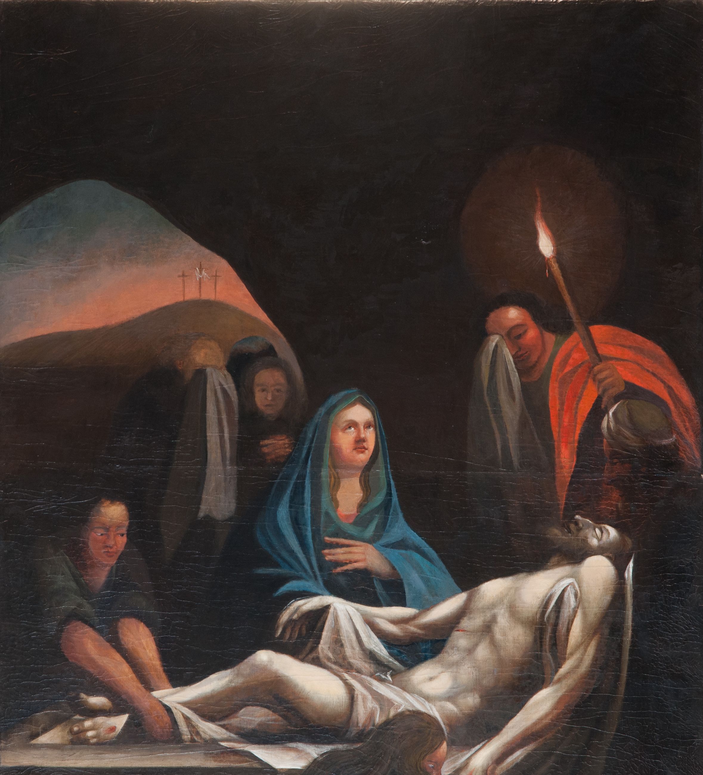 The painting, which is characterised by strong chiaroscuro, was created in the 18th century. It shows the moment of placing of the Jesus' dead body in a stone sarcophagus. Around the grave there is Mary, Mary Magdalene, and Saint John the Evangelist.