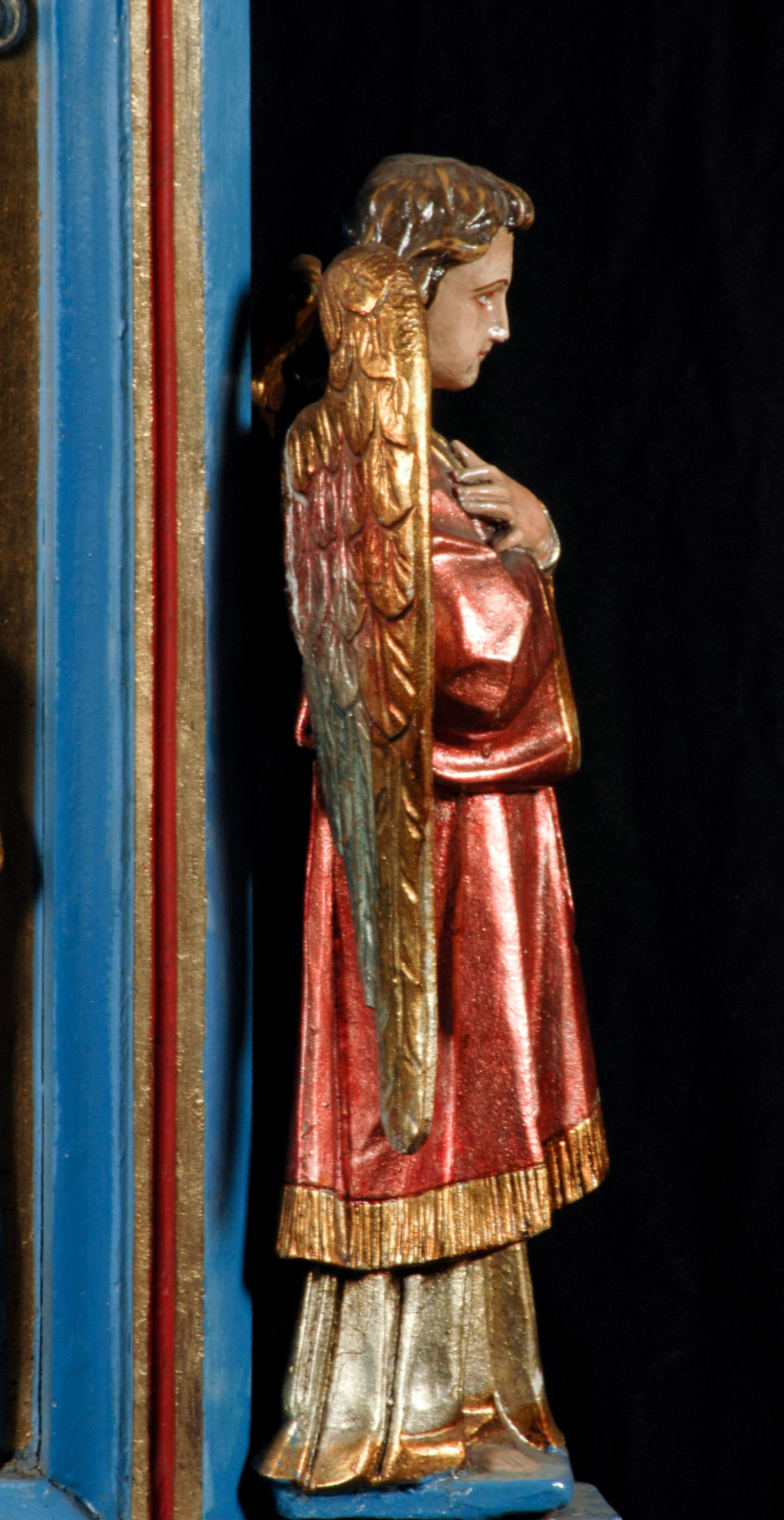 The Neo-Gothic procession float with an image of Our Lady of Perpetual Help constitutes an example of mobile church furnishings used during processions.