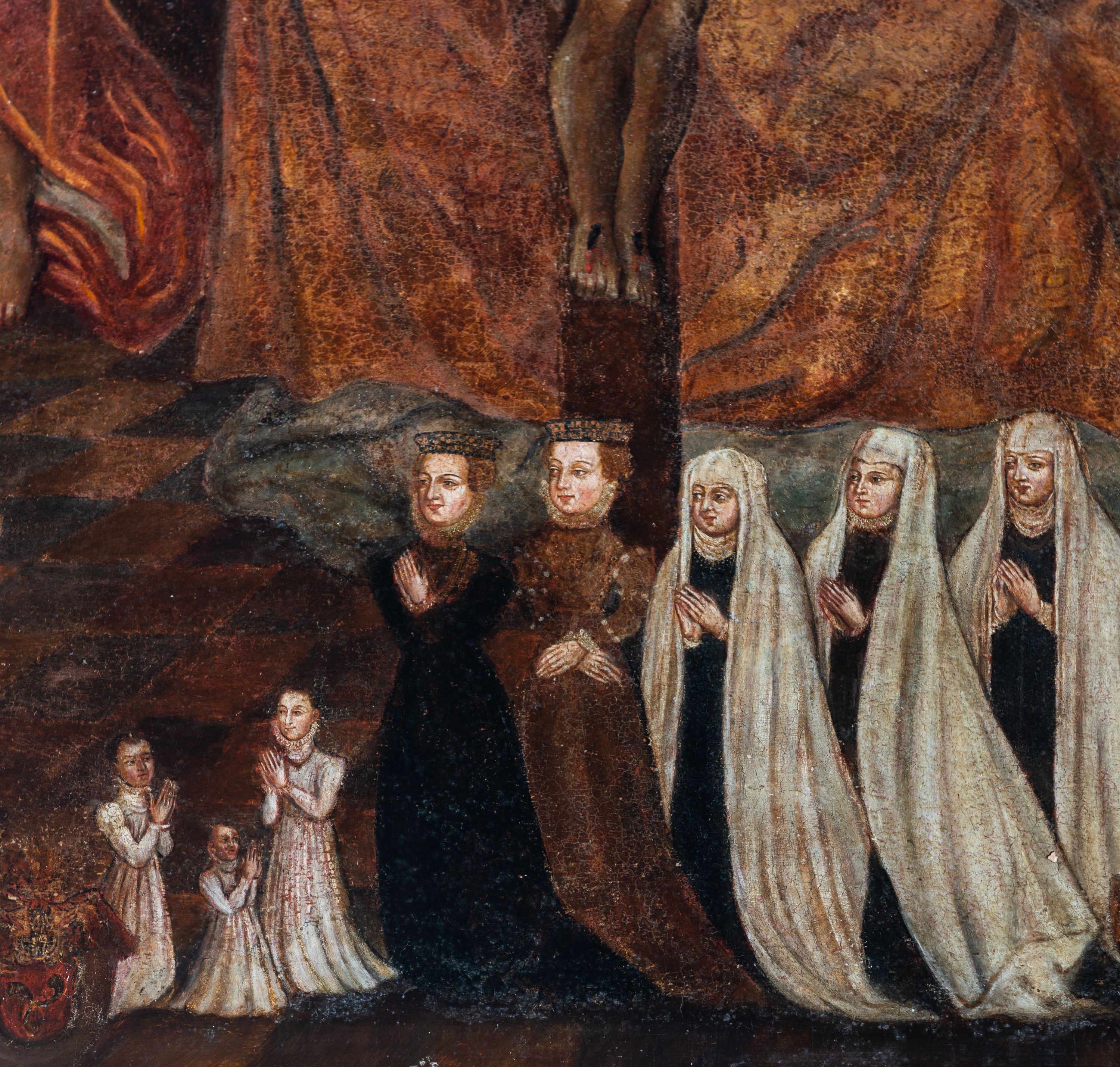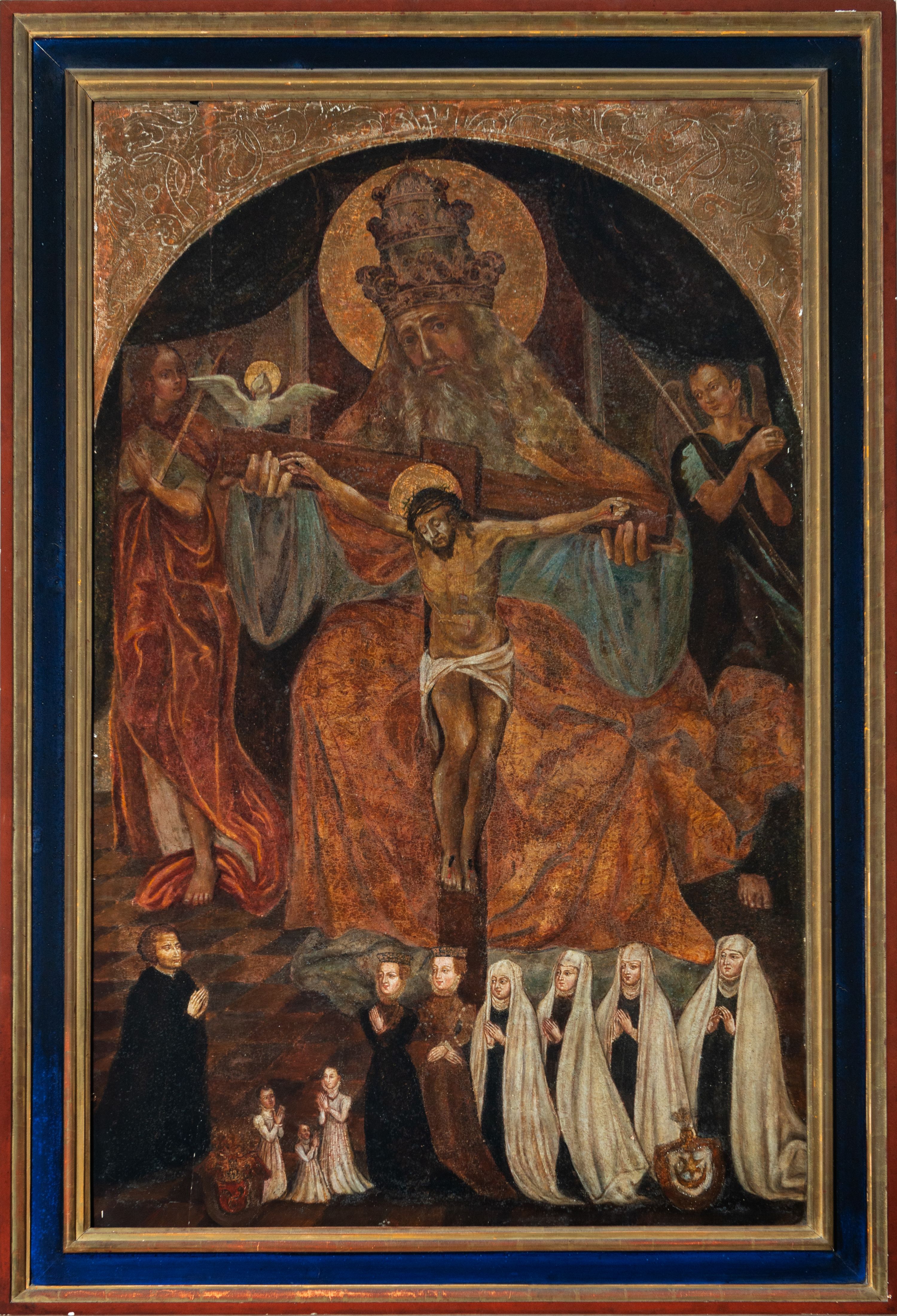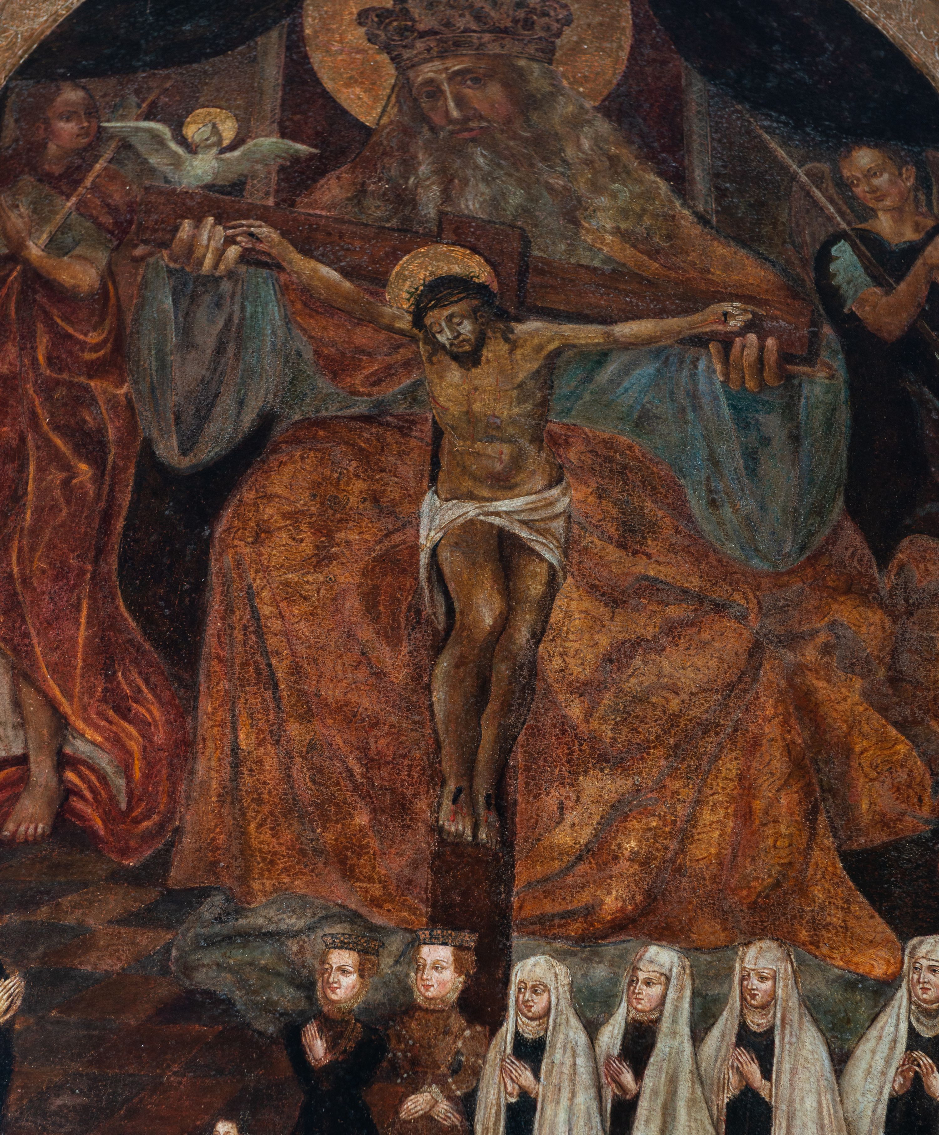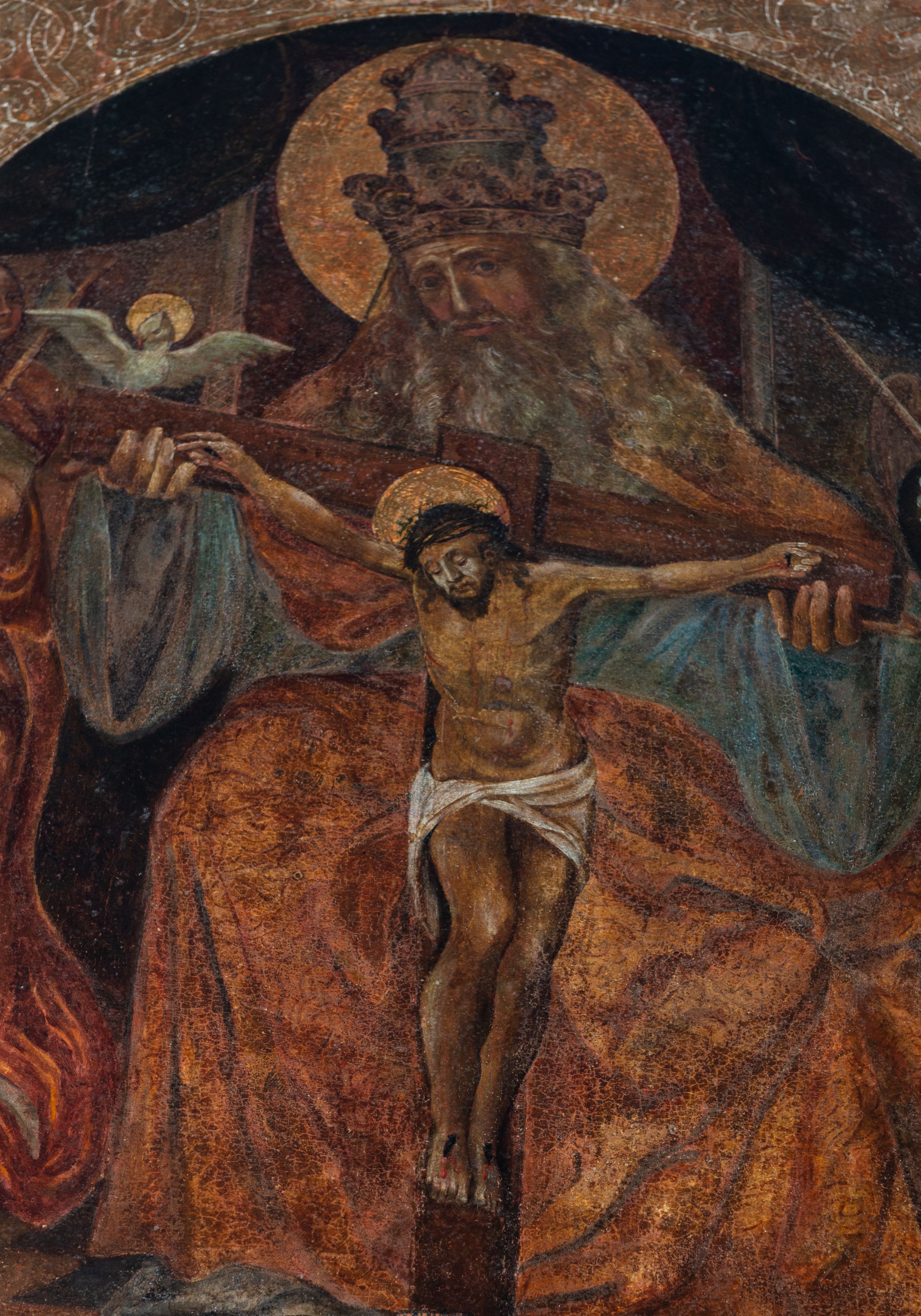 The painting of the Holy Trinity was funded after 1550 by Anna Jordanowa of the Sieniawscy family. Before 1569 the funder's family was painted at the bottom of the painting. The painting depicts the Holy Trinity in the iconographic style, called the Throne of Grace (thronus gratiae). This depiction indicates the salvific nature of Christ's sacrifice through which God reconciled the world in the Holy Spirit. At the bottom of the painting, the funder's family is shown; she is depicted with her husband, Spytek Wawrzyniec Jordan, their five daughters and their three grandchildren.