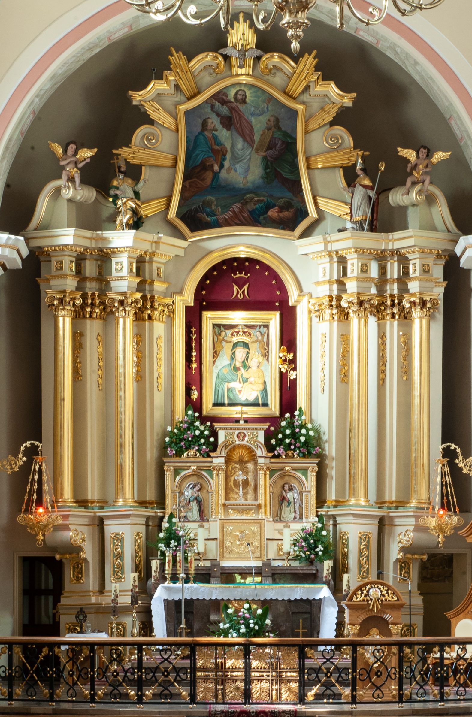 The third church was erected around 1700, right next to the old temple. At that time, the parish priest was father Andrzej Ziebrowski (the parish priest of Maków and Sidzina in 1683-1719). Father Ziebrowski did not order to have the old church of Saint Clement of Rome from the 16th century demolished, as it housed the painting of Virgin Mary. Instead, he built another one which invoked the Transfiguration of Jesus. The new church consisted of a masonry chancel, to which a masonry, Baroque chapel and a spacious, wooden nave were subsequently added. The temple was consecrated by bishop Kazimierz Łubieński in 1705. The painting was created in the old temple. It was not until 1745 that father Michał Karliński wrote a letter to the Cracovian ordinary to ask for permission to transfer the painting of Virgin Mary from the church of Saint Clement of Rome to the new temple. In response, the Cracow curia sent a decree, in which the painting was referred to as being "famous for its graces" and recommended that it be transferred in a celebratory manner. After the painting was moved, the unused church was demolished. In 1819-1836, father Jerzy Majerski was the parish priest in the churches in Maków and Sidzina. During his ministry in 1826-1828, the wooden temple nave was demolished, leaving only the masonry chancel with a chapel from 1697-1701. A new nave and a new front wall were built in its place. Thus reconstructed, the church was consecrated on 28 May 1833 by bishop Franciszek Pisztek. In the same year, Father Wojciech Blaszyński came to Maków as a vicar. Father Majerski died in Maków on 6 October 1842 and was buried at the cemetery near the church. At present, the temple houses the high altar made by Jan Obrochta in 1877 (in 1965 the altar was modified according to the design of Maciej Makarewicz). The door for the tabernacle, decorated with neo-Gothic ornaments, was built by Piotr Seip from Cracow. The main area of the altar features a painting depicting Madonna of Maków, a renowned object of worship. In addition, the temple has side altars from the second half of the 19th century, the pulpit from 1830/1831, Stations of the Cross from the first half of the 19th century, as well as numerous sculptures and paintings that were moved from previous temples in Maków Podhalański.