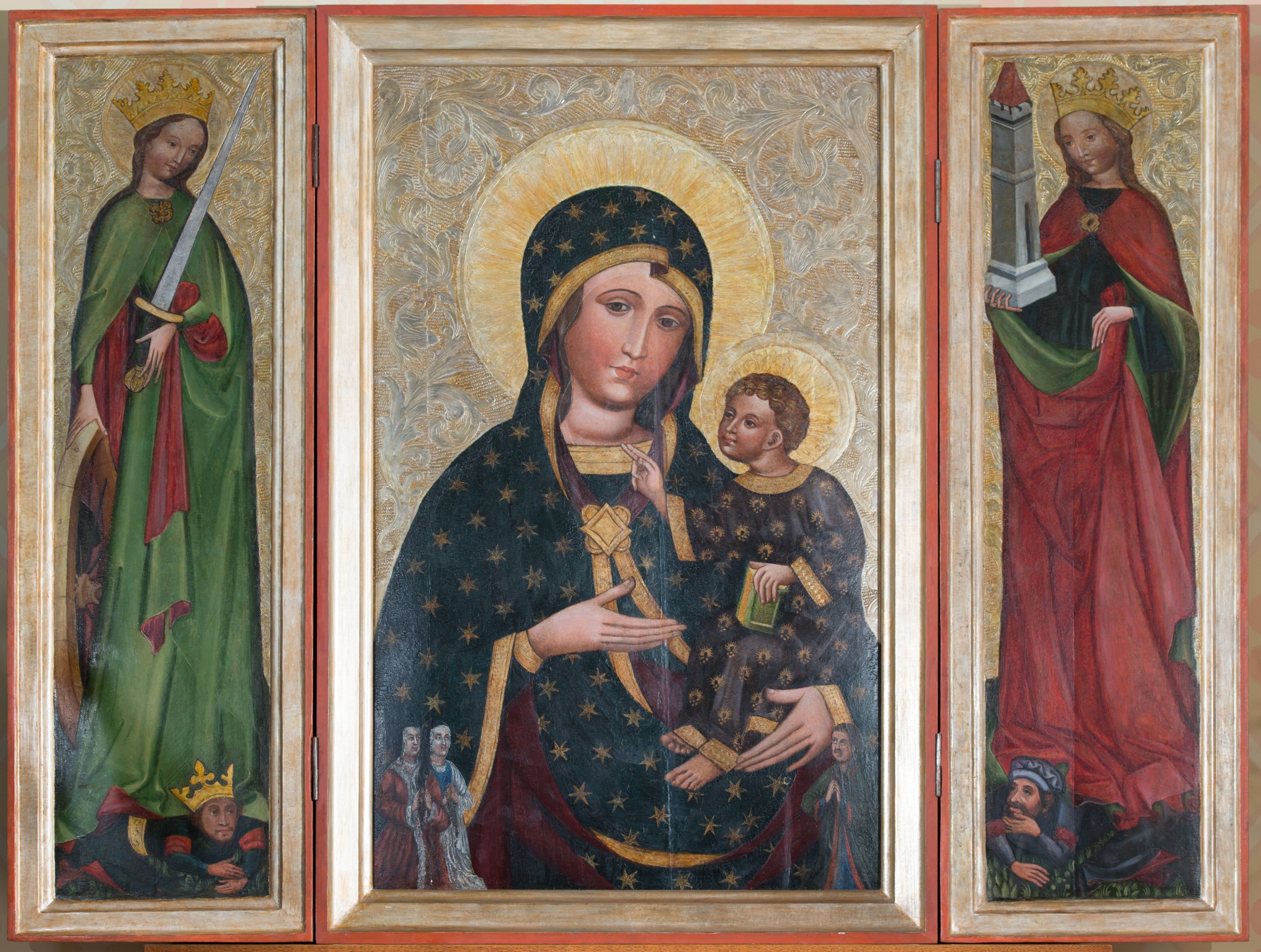 Paulina Kluz, "Triptych with paintings of the Madonna with the Child and St. Catherine and St Barbara (obverse), St. Nicholas and St. Stanislaus (reverse)", [in:] "The Sacred Lesser Poland Heritage", 2026, source: https://sdm.upjp2.edu.pl/en/works/triptych-with-paintings-of-the-madonna-with-the-child-and-st-catherine-and-st-barbara-obverse-st-nicholas-and-st-stanislaus-reverse